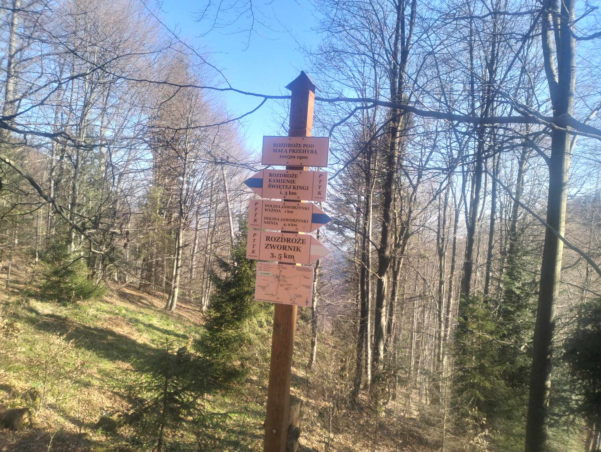 Jak co roku początek sezonu to marsz przez Przehybę, czyli początek w Gaboniu przy szlabanie. Godzina 6:30 śpiew ptaków, poranek wyjątkowo ciepły jak na kwiecień, prognozy też były optymistyczne. Po ostatnich opadach potok Jaworzynka tworzy na początkowym etapie wyprawy fajny wodospad.