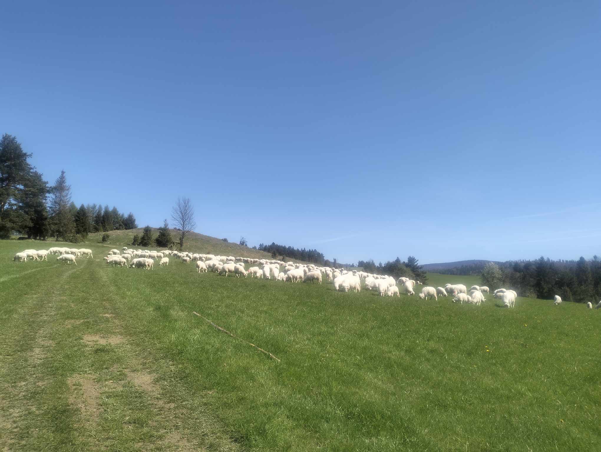 Taki widok na szlaku na następny dzień odbywał się wiosenny redyk. Najlepsze psy! pod drzewem w cieniu :)