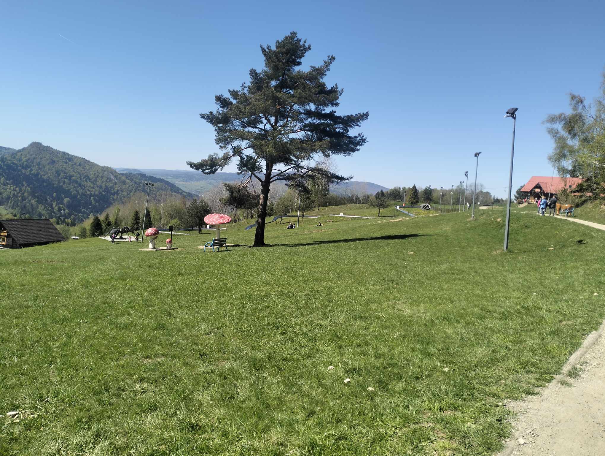 Szafranówka gdzie dochodzimy niebieskim szlakiem. Tutaj moc atrakcji, można napić się także kawy i coś zjeść. Miejsce podobne do Góry Parkowej w Krynicy.