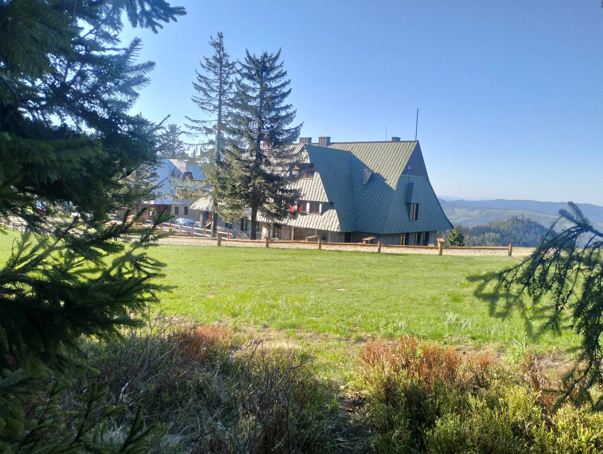 Trasa narciarska z Przehyby to najlepsza trasa widokowa, oczywiście ze schroniska. Cudowne widoki - zwłaszcza wiosną, bardzo dużo zieleni! Dziwne, że tak mało osób z Przehyby schodzi tą ścieżką, w sumie nawet na mapie turystycznej nie jest ona oznaczona...ale polecamy !!! Ze Szlachtowej jest możliwość podjechania busem do Szczawnicy.