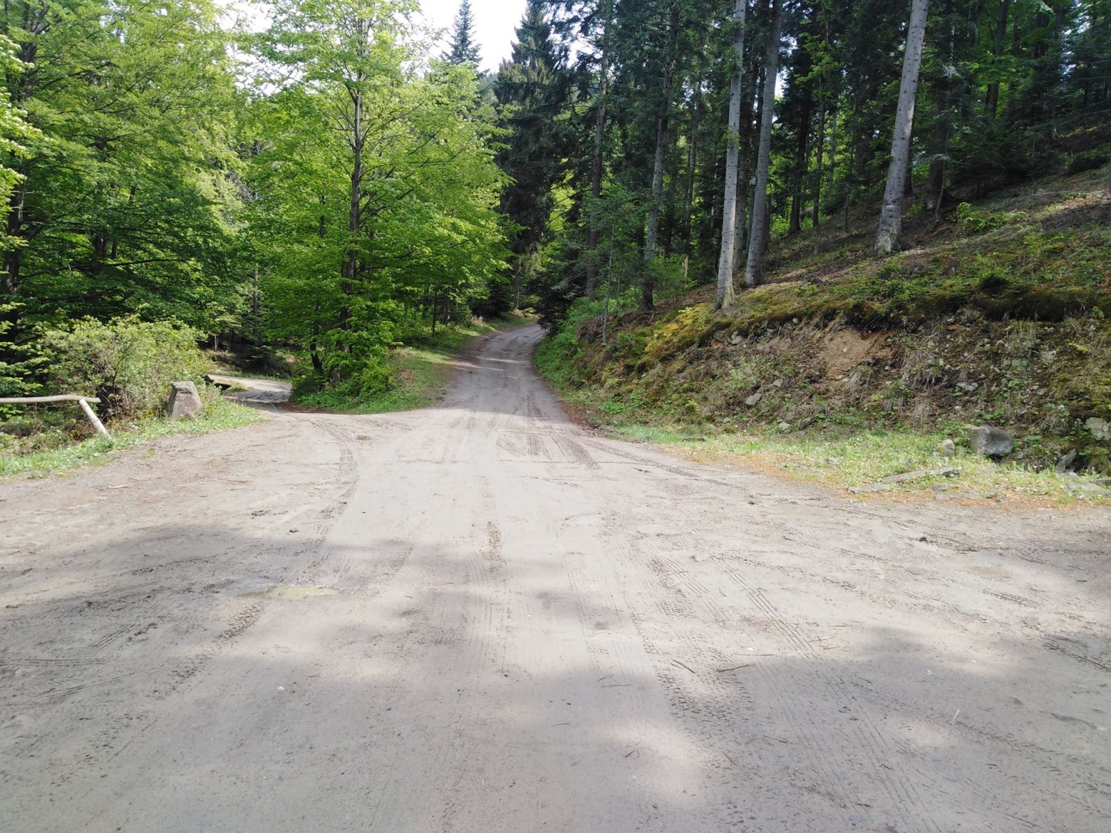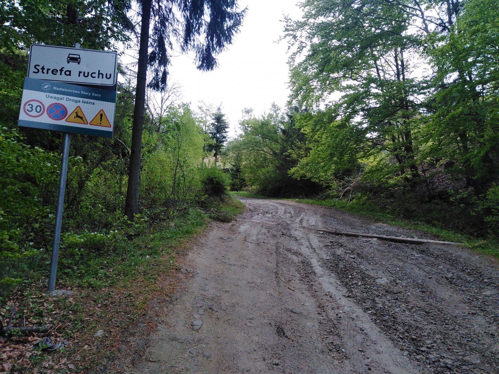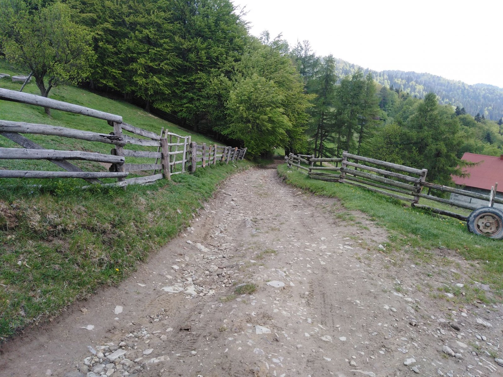 Od tego drogowskazu czeka nas około kilometr marszu, czyli około 30 minut. Droga nie jest wymagająca, choć idziemy cały czas pod górę. Trzymamy się głównej szerokiej drogi, ponieważ są "odbicia" do pobliskich domów. Trasa jest na tyle przyzwoita, że bez większych problemów na samą górę dojedziemy rowerem.