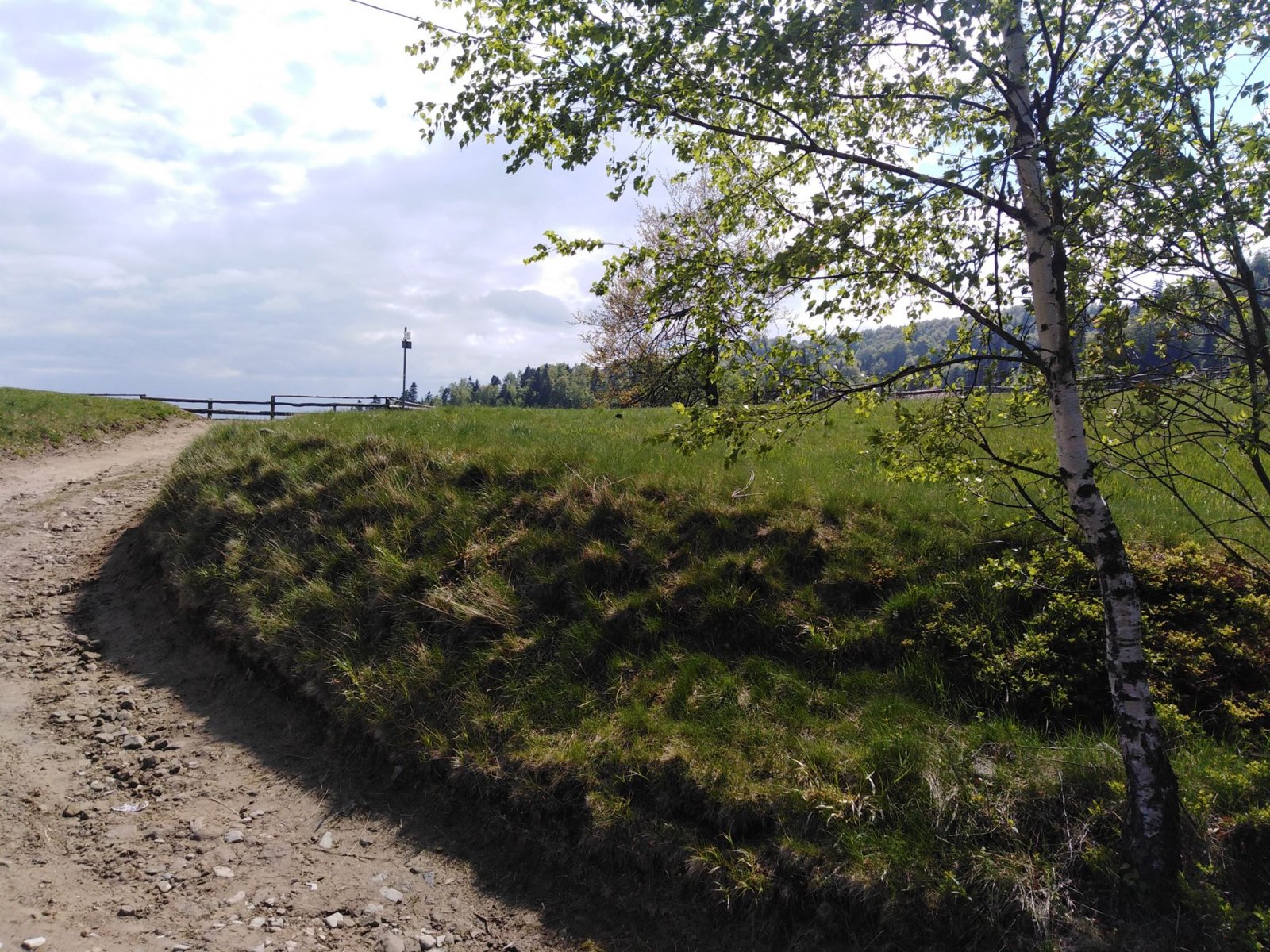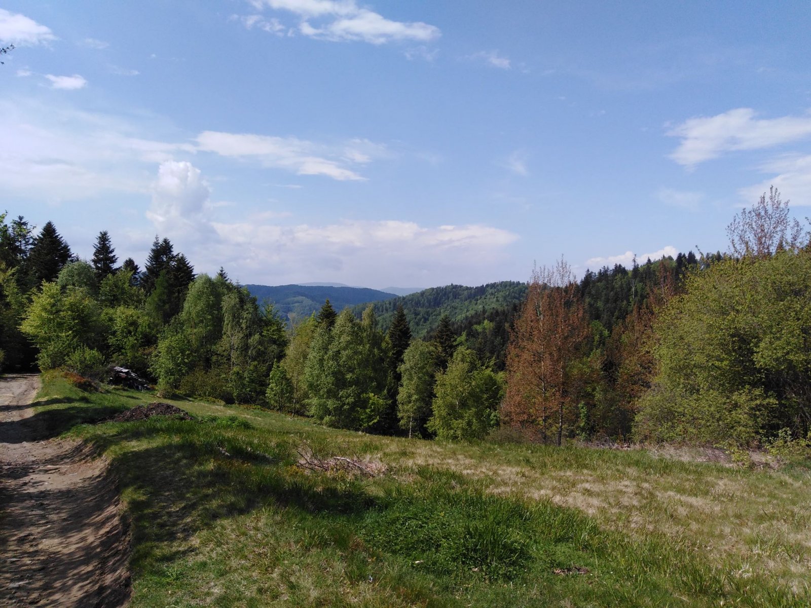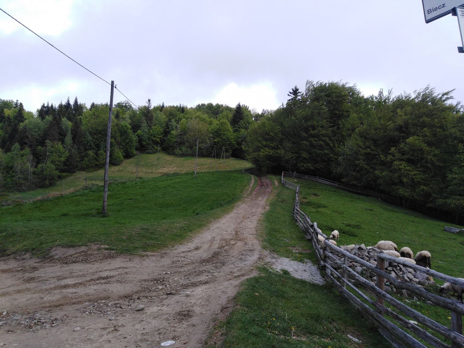 Od tego drogowskazu czeka nas około kilometr marszu, czyli około 30 minut. Droga nie jest wymagająca, choć idziemy cały czas pod górę. Trzymamy się głównej szerokiej drogi, ponieważ są "odbicia" do pobliskich domów. Trasa jest na tyle przyzwoita, że bez większych problemów na samą górę dojedziemy rowerem.