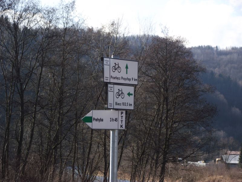 Przełęcz Przysłop może być tylko przystankiem w dalszej wędrówce. Na Przysłopie krzyżują się szlaki turystyczne. Stąd dojdziemy czerwonym szlakiem do Krościenka, żółtym do Szczawnicy lub na Koziarz i dalej do Łącka. W drugą stronę na Przehybę, lub niebieskim do Obidzy Zarębki. W tym miejscu krzyżują się także szlaki rowerowe! m.in. Na Przehybę 5,5km (zdjęcie nr.3) a z Przehyby możemy zjechać drogą asfaltową na Gaboń, zatoczyć koło i jesteśmy ponownie w Obidzy. Poniżej zdjęcia ze szlaku.