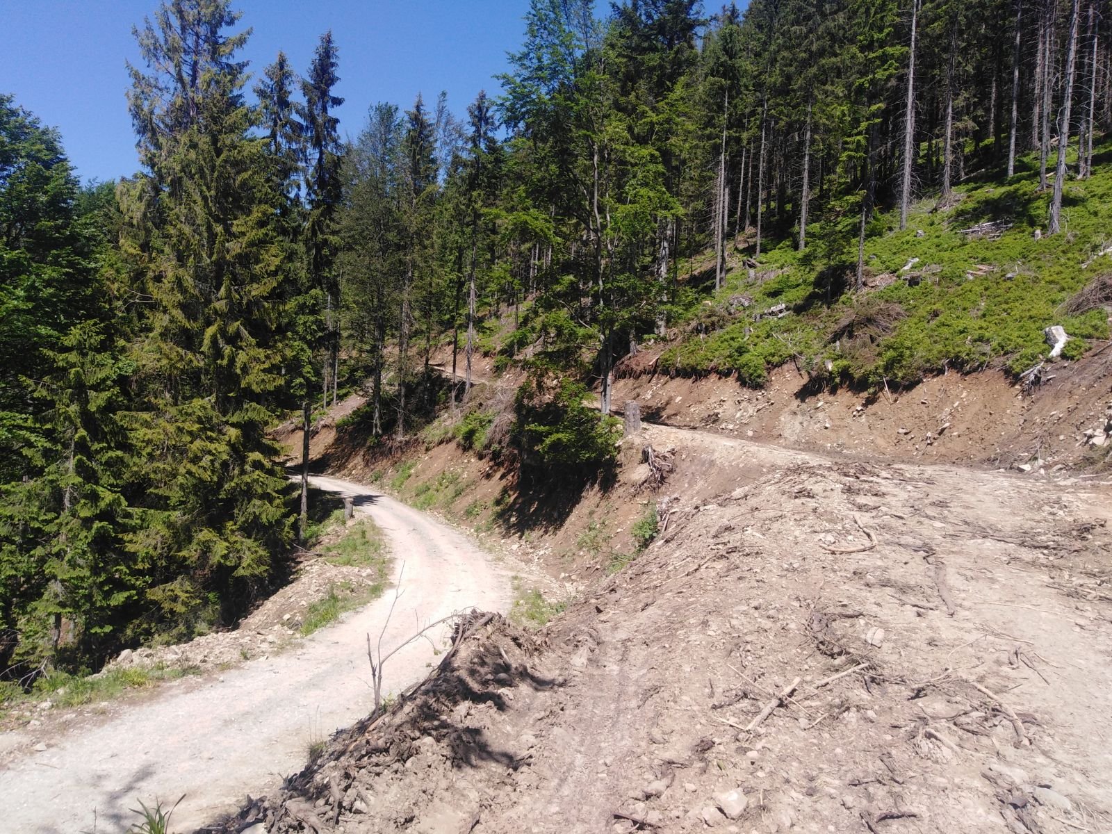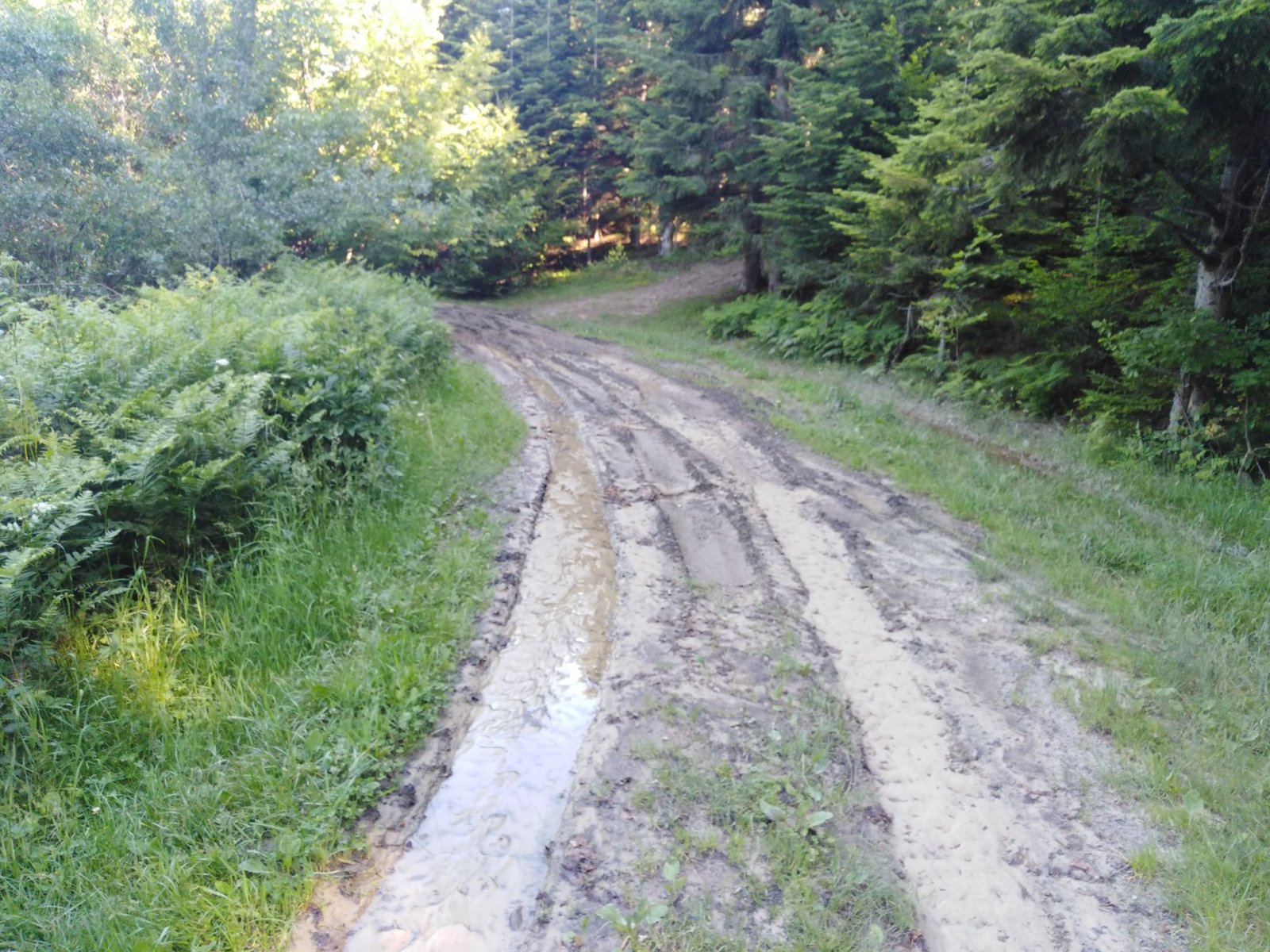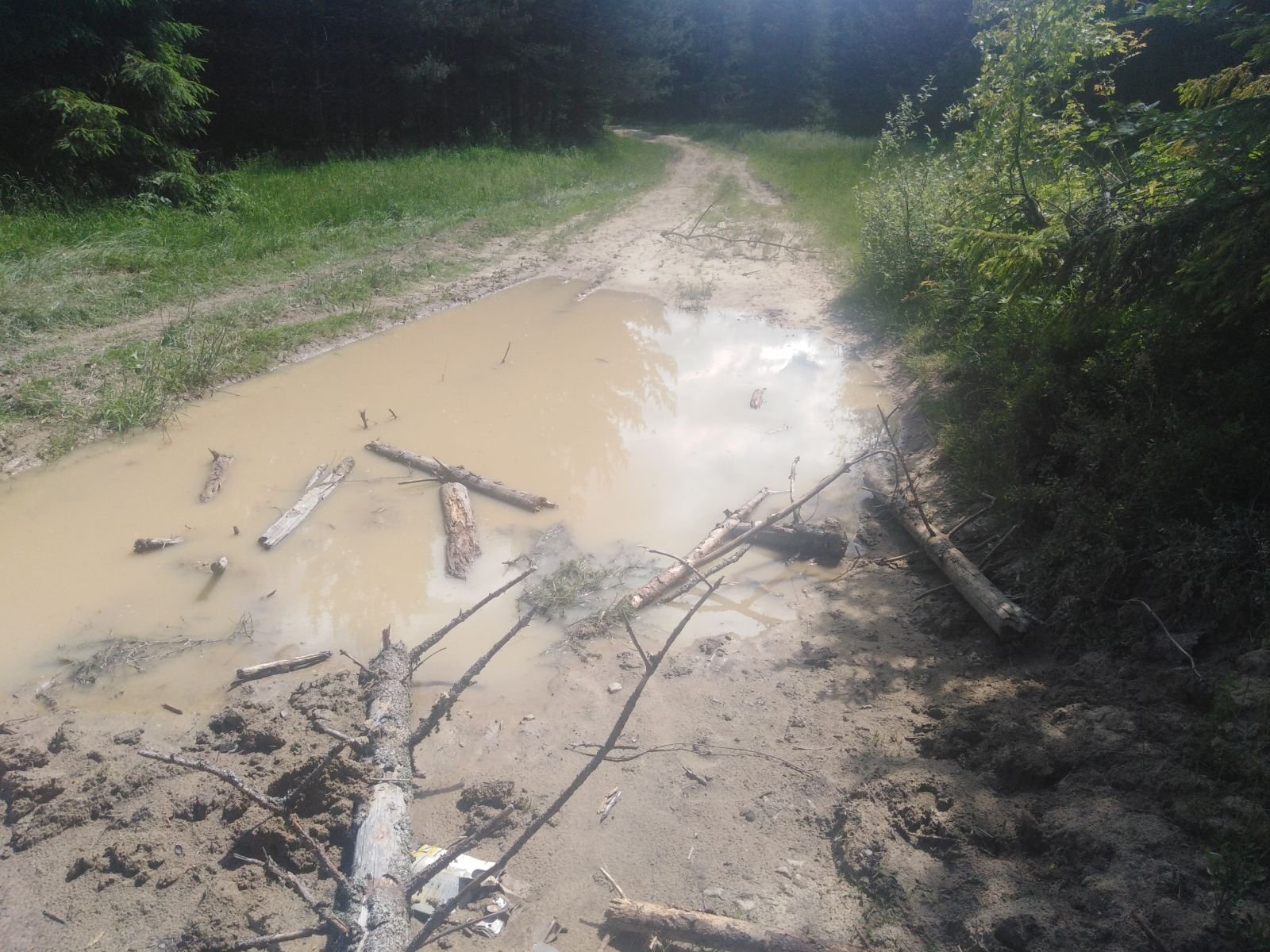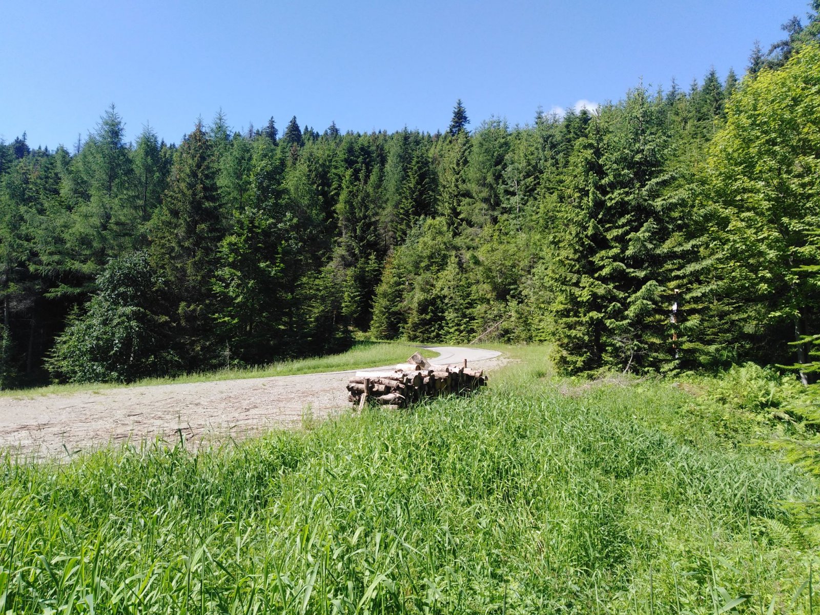 Zejście na skrzyżowanie na Jaworki czyli na Litawcową 967 m n.p.m. dość strome, na drodze sporo kamyków po ostatnich opadach (zdjęcie poniżej). Spotykamy też coraz więcej turystów co ciekawe prawie każdy ze Śląska wypoczywający w naszych rejonach.