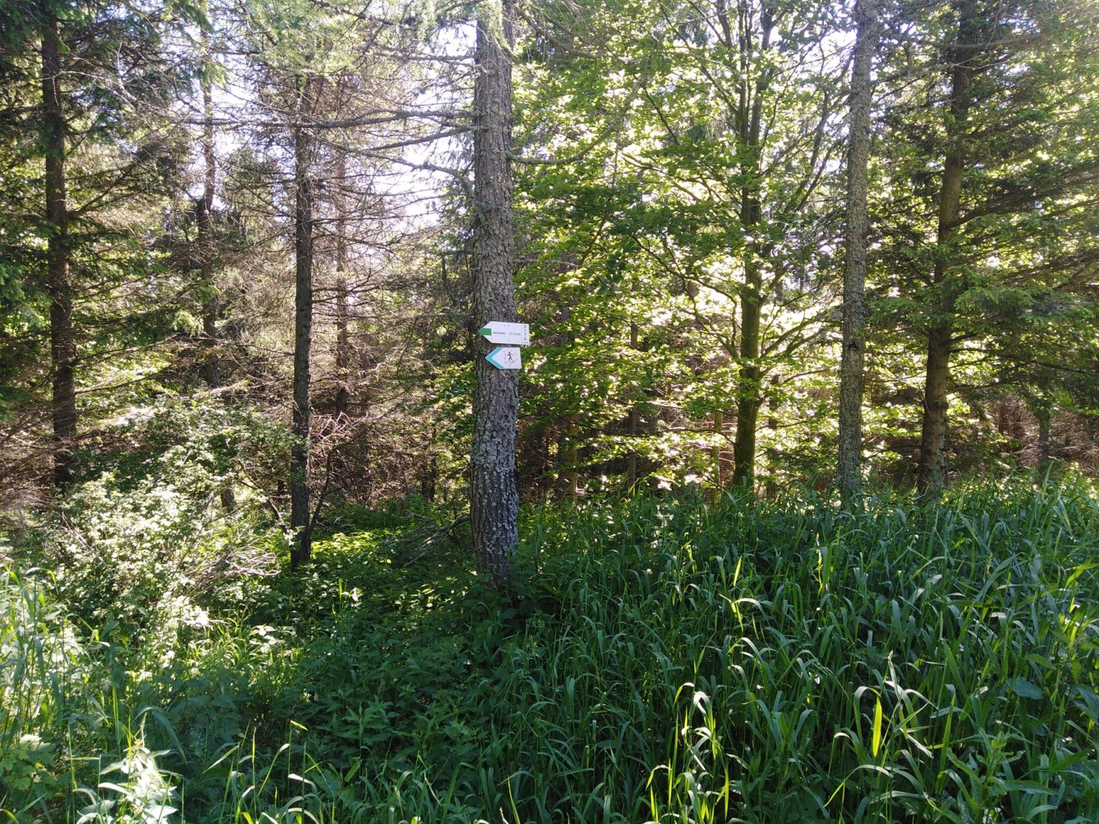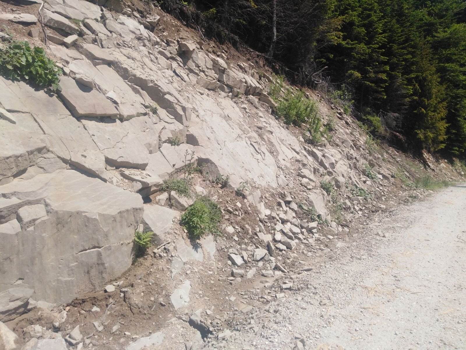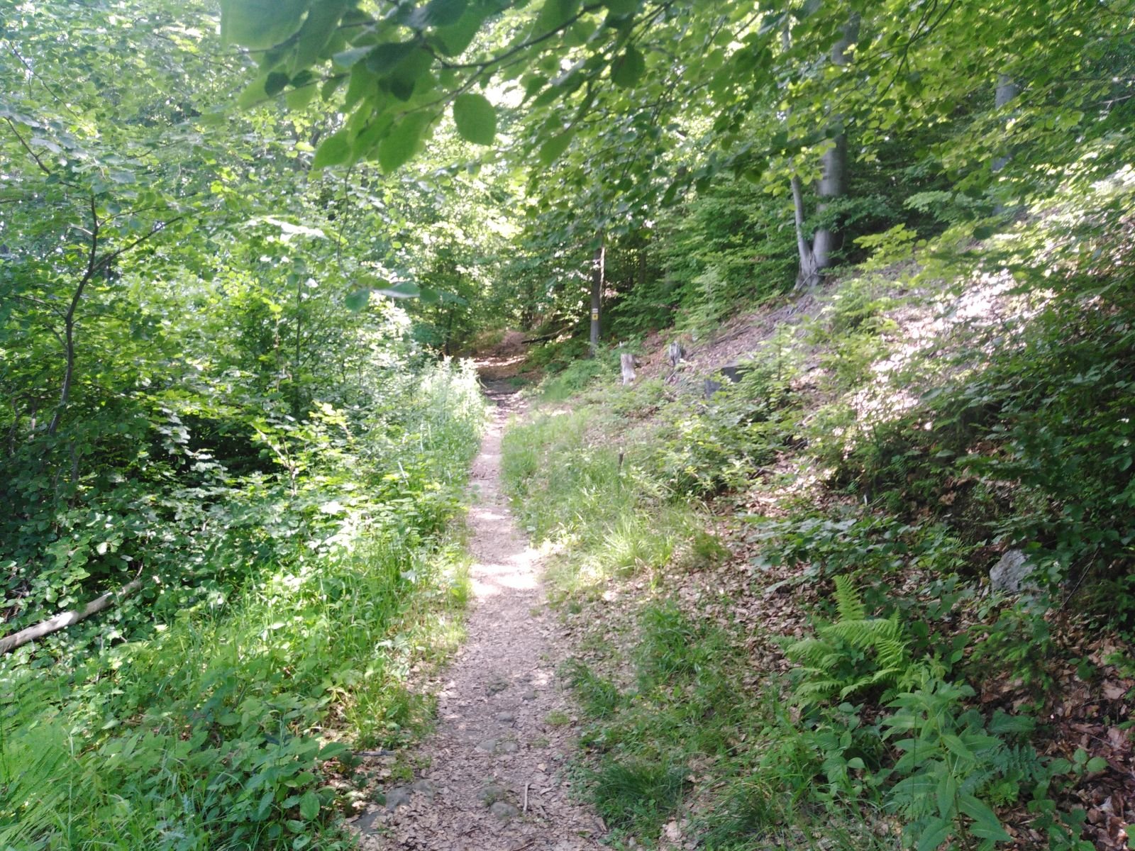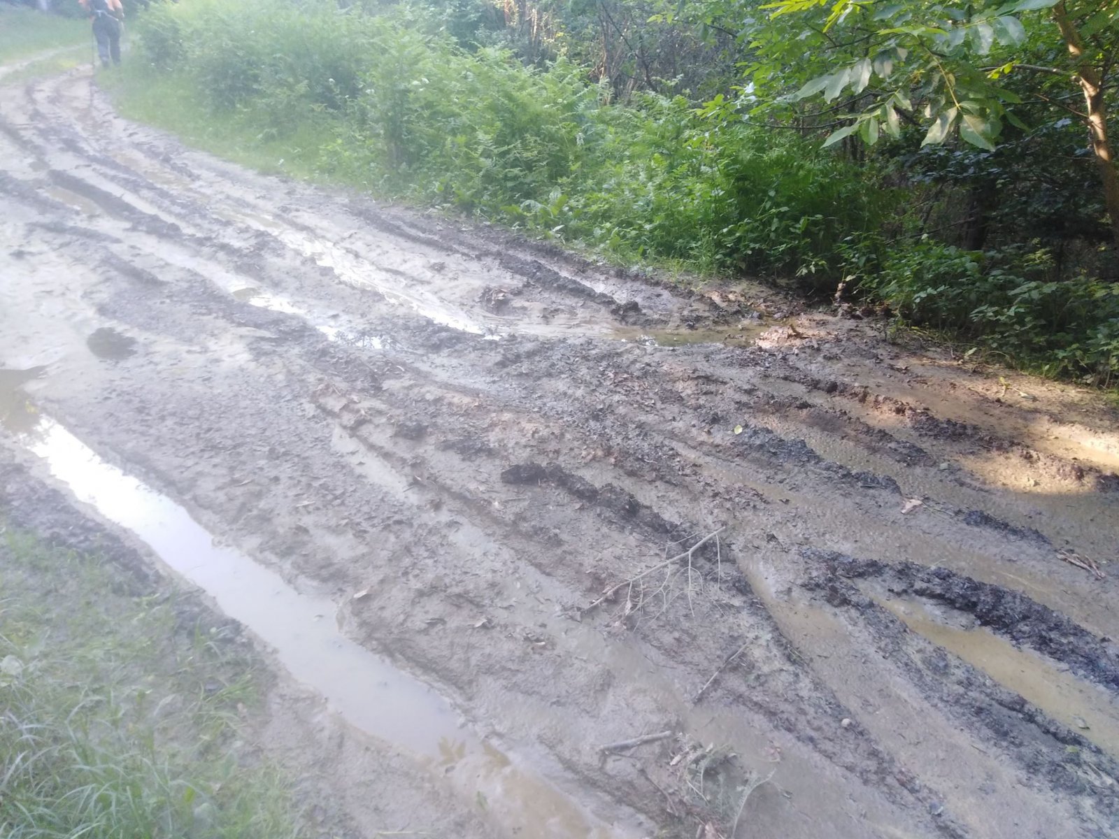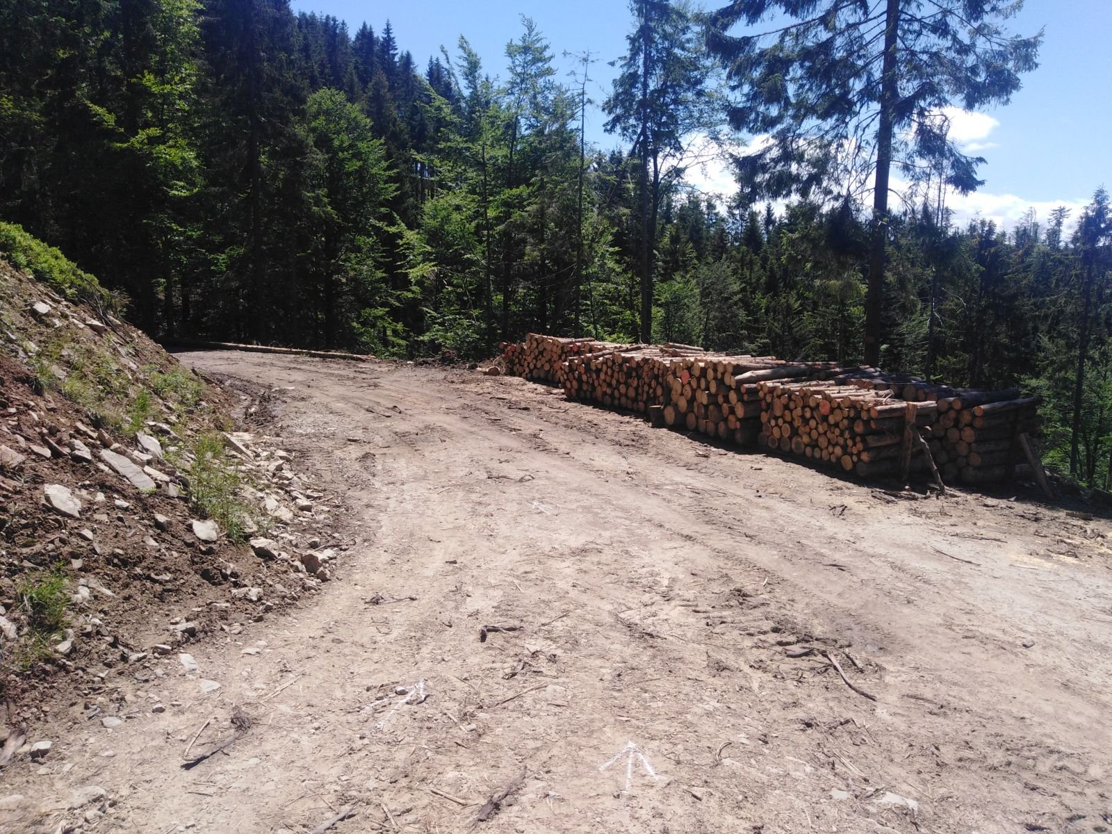 Zejście na skrzyżowanie na Jaworki czyli na Litawcową 967 m n.p.m. dość strome, na drodze sporo kamyków po ostatnich opadach (zdjęcie poniżej). Spotykamy też coraz więcej turystów co ciekawe prawie każdy ze Śląska wypoczywający w naszych rejonach.