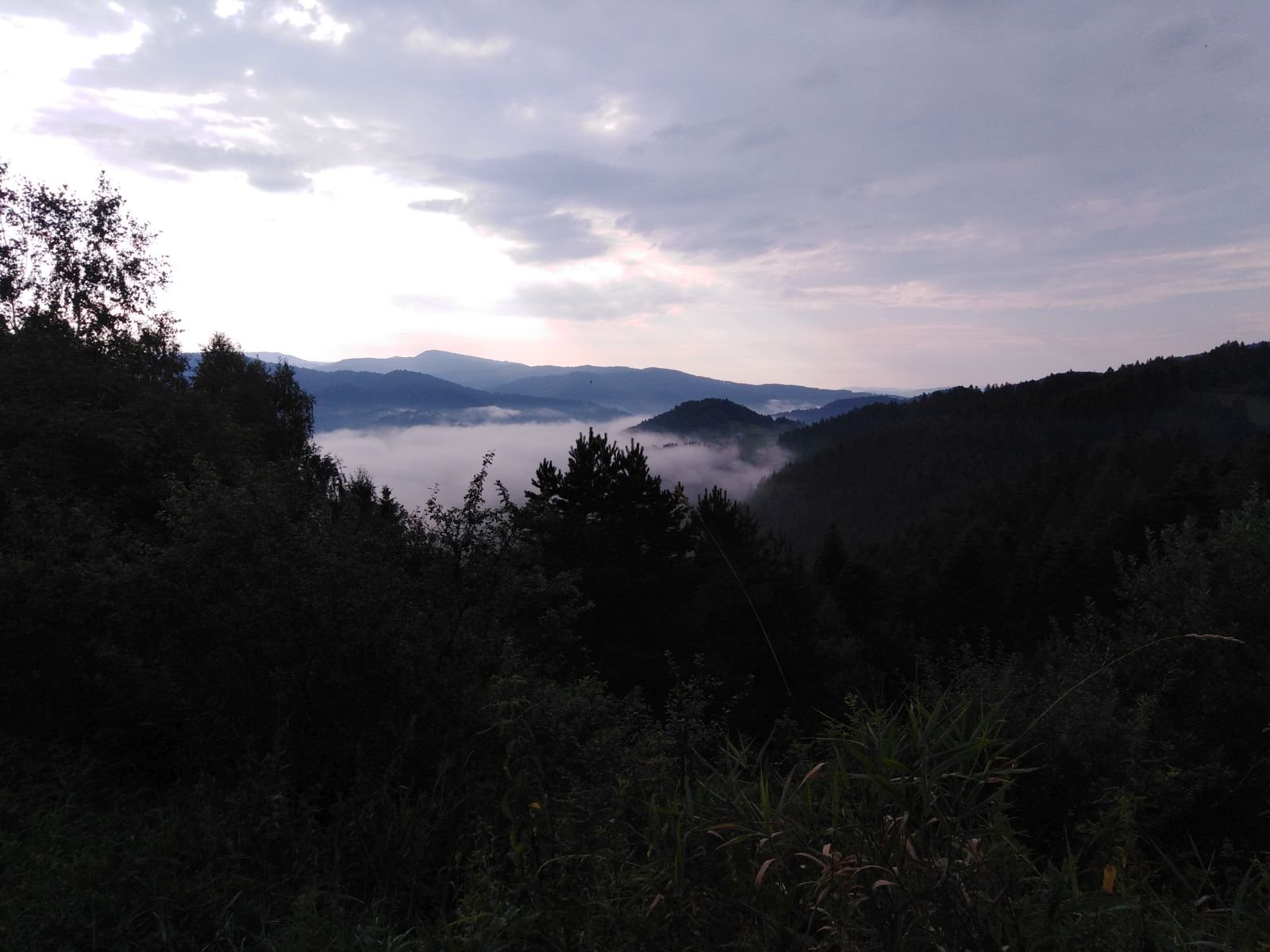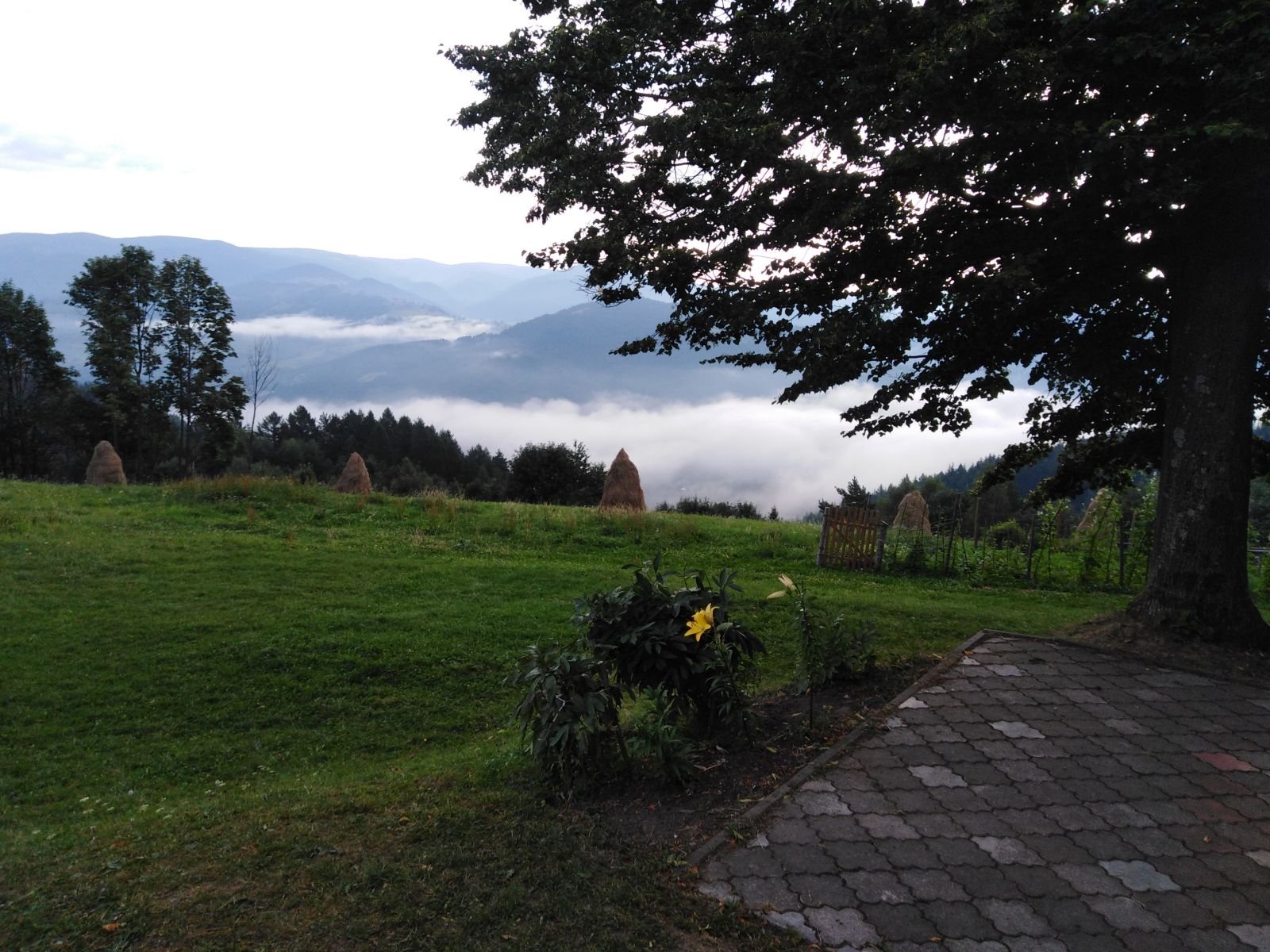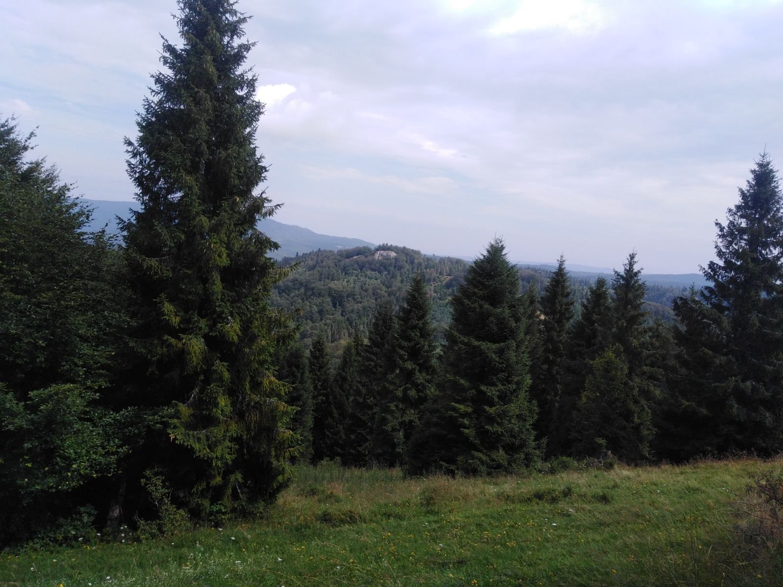 Przed nami pierwsza wieża widokowa na Buczniku na wysokości 669 metrów. Niestety wieża znajduje się w obrębie prywatnej posiadłości. Z tej wysokości Piwniczna była przykryta poranną chmurką.