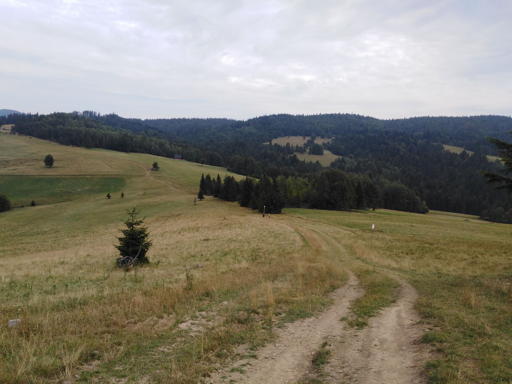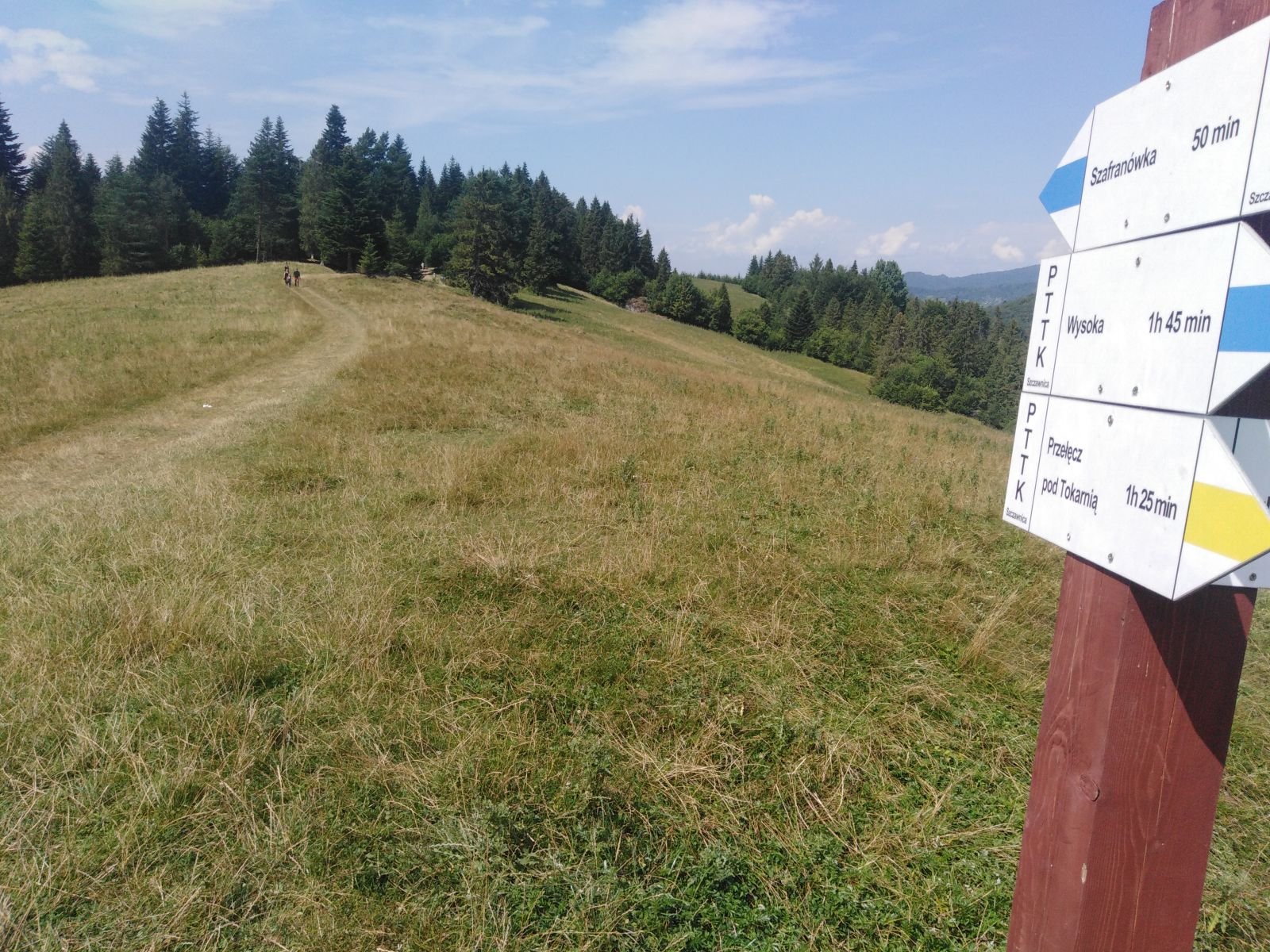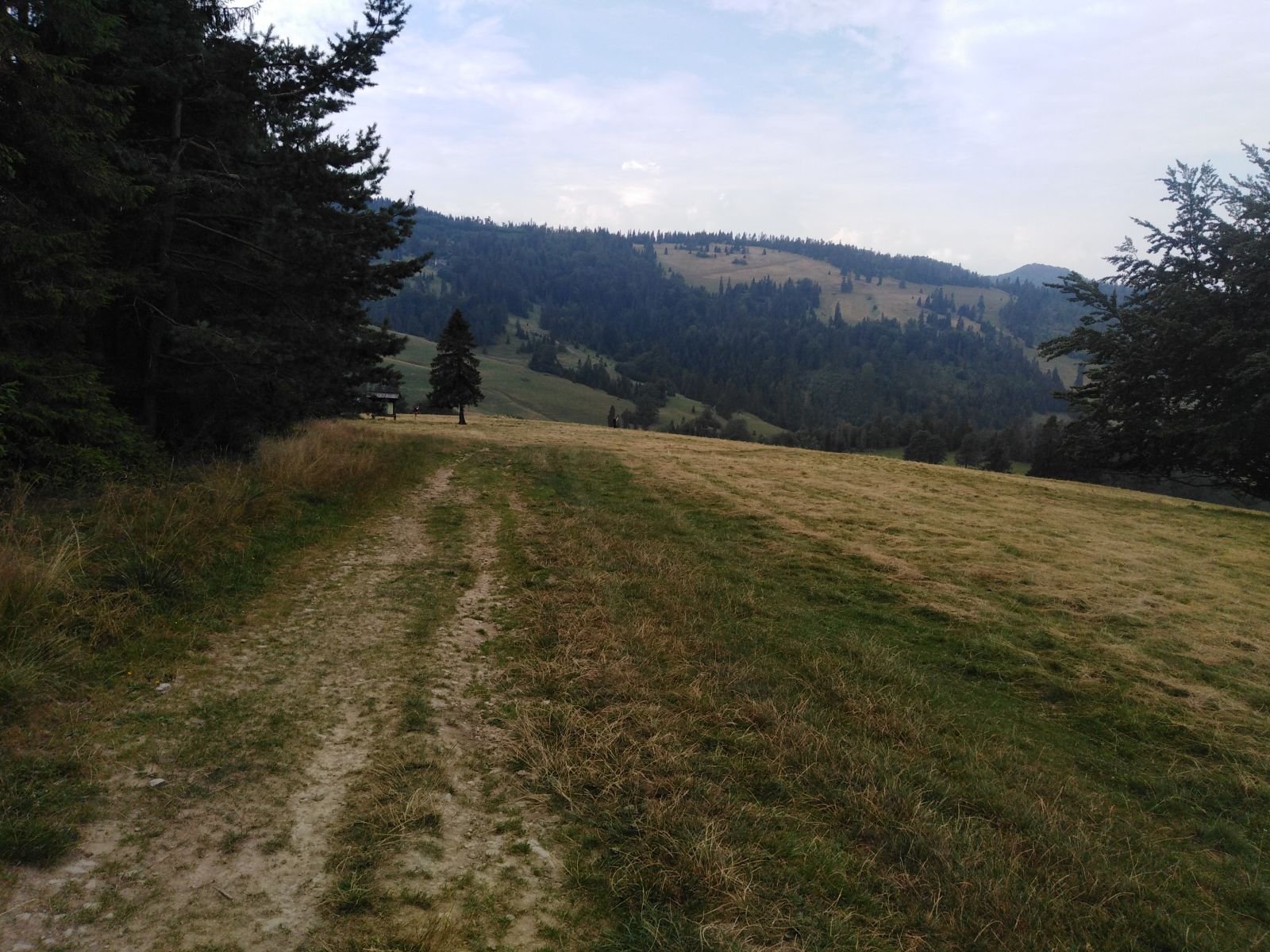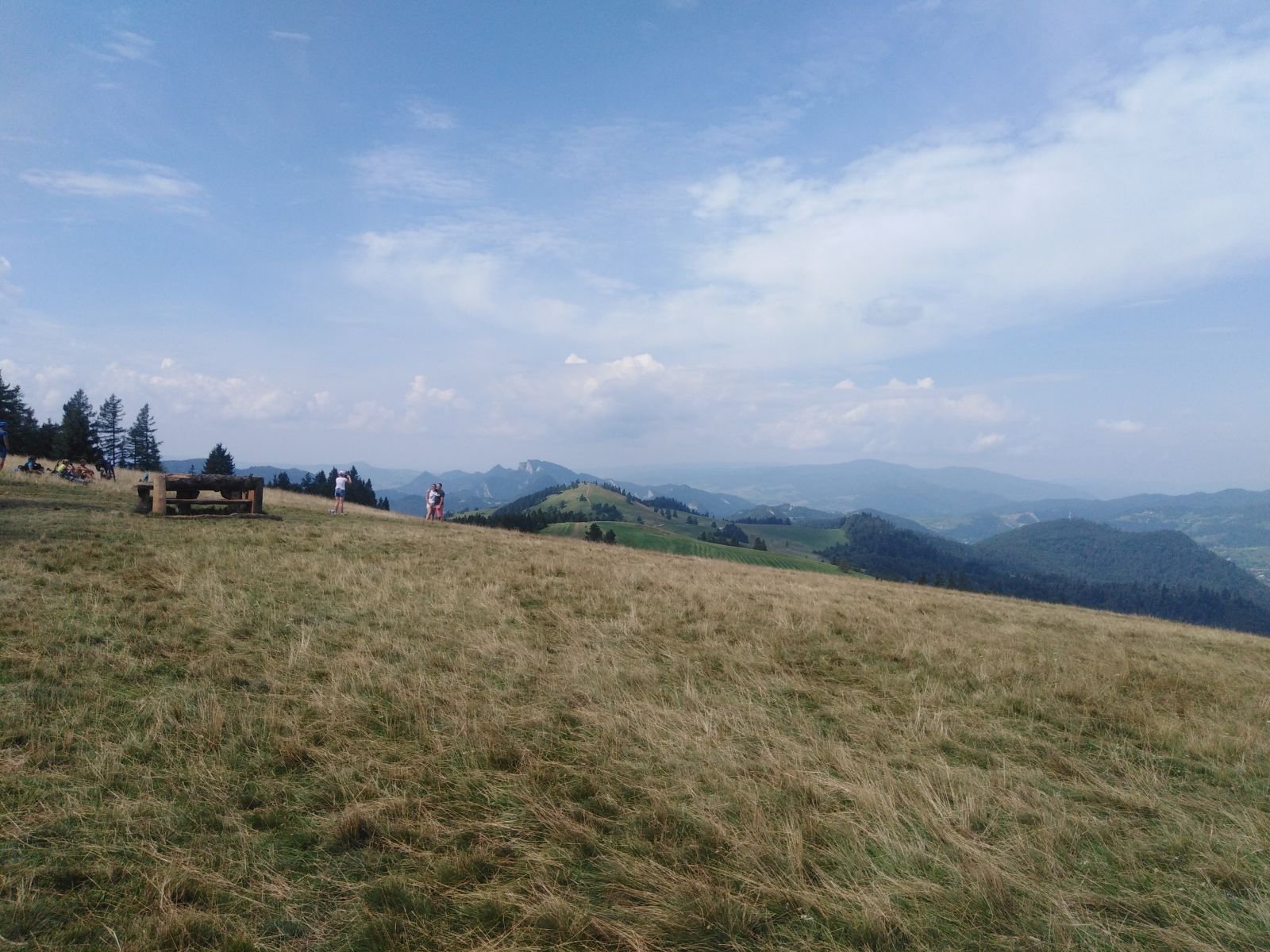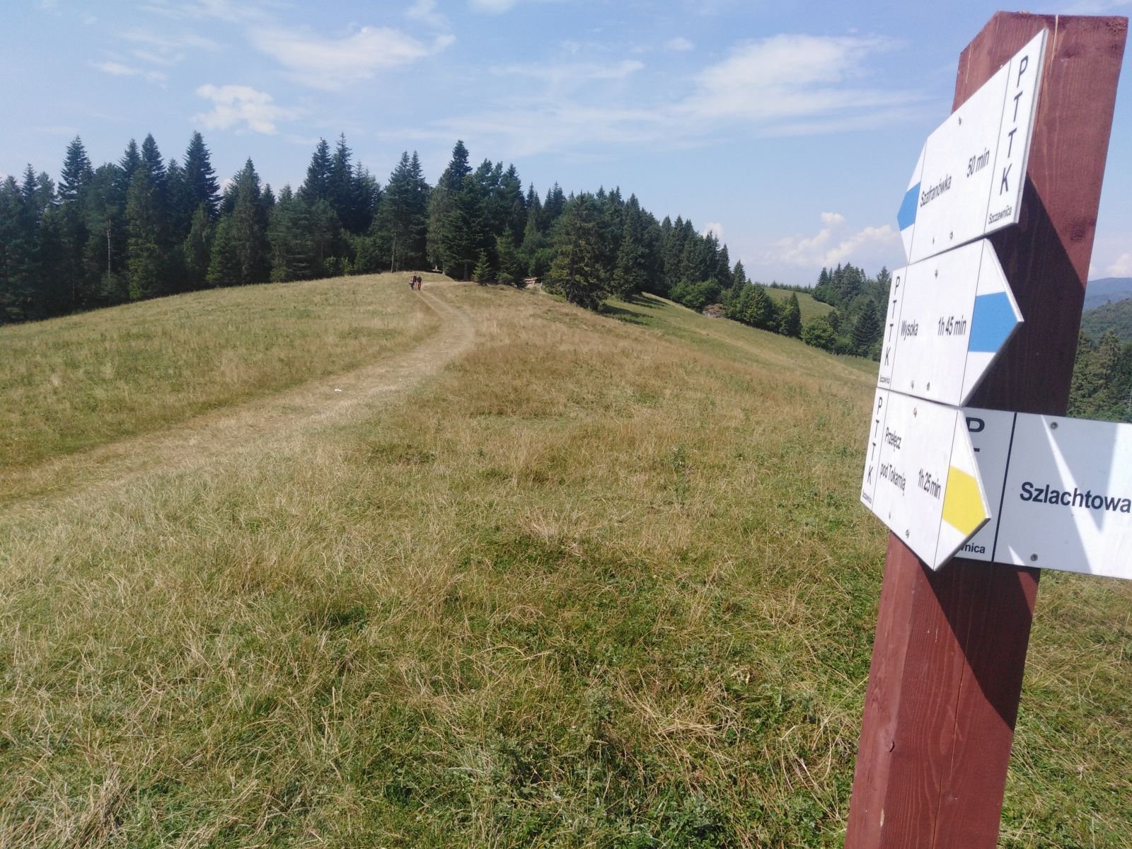 Dojście na Wysoką to duże halę, przyjemna ścieżka z widokiem na Pieniny. Na szlaku pojawia się coraz więcej turystów, nie brakuje tych poruszających się rowerem.