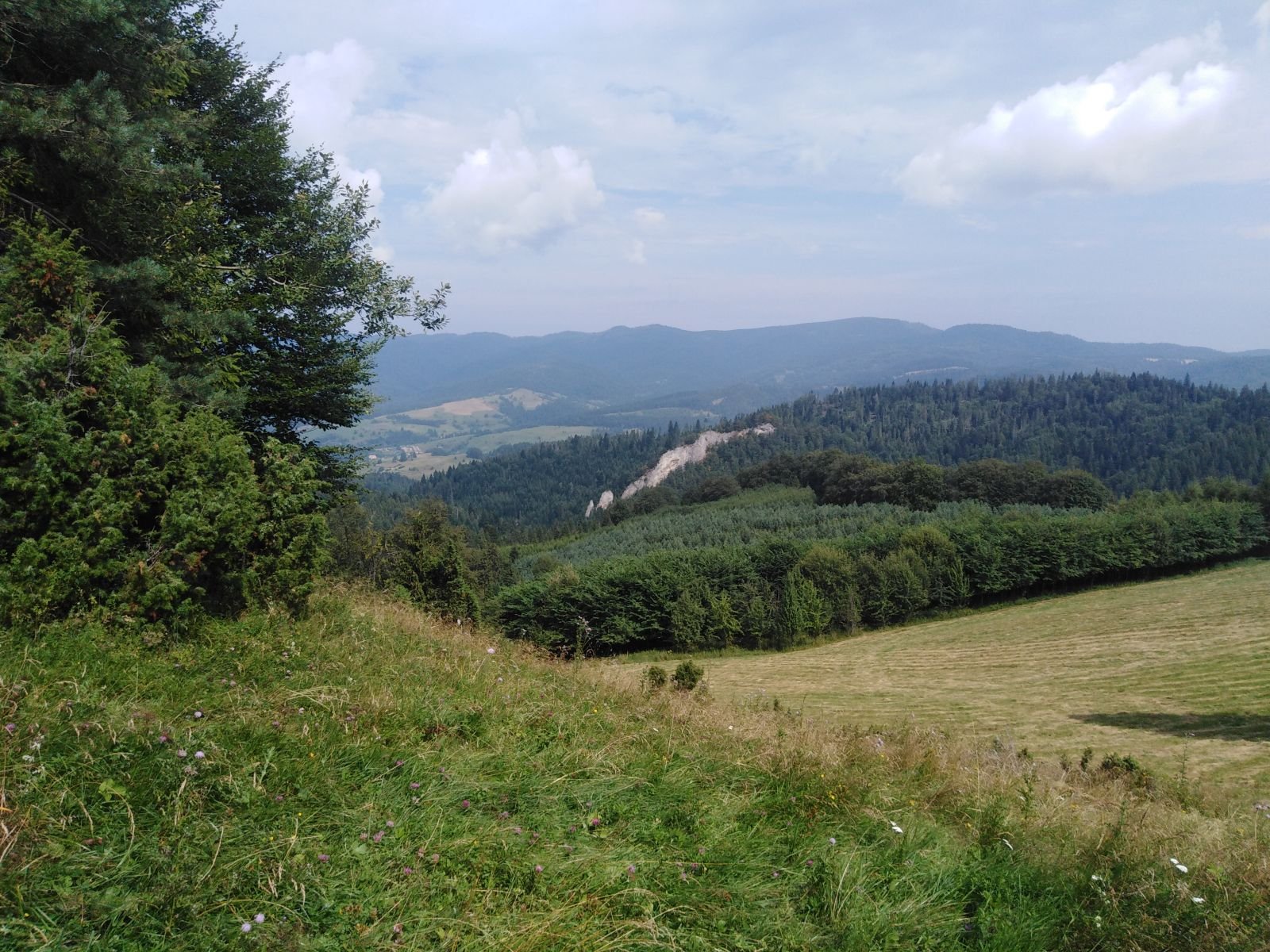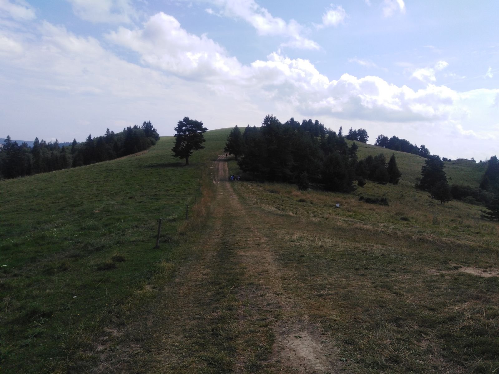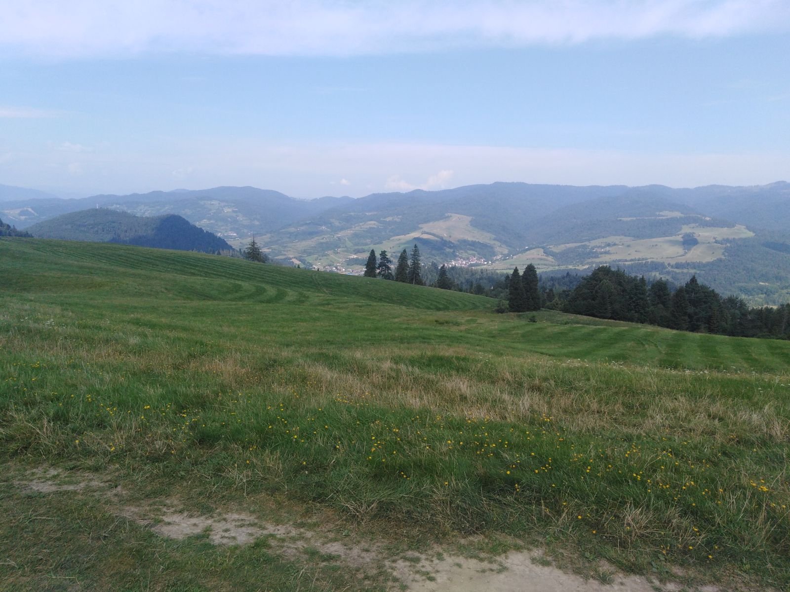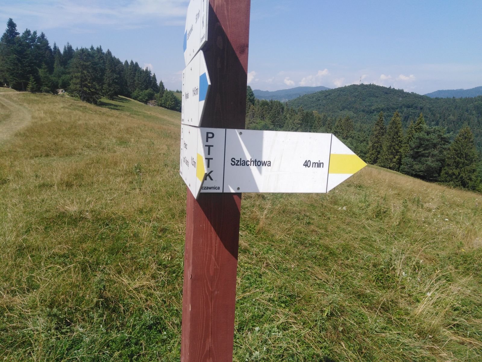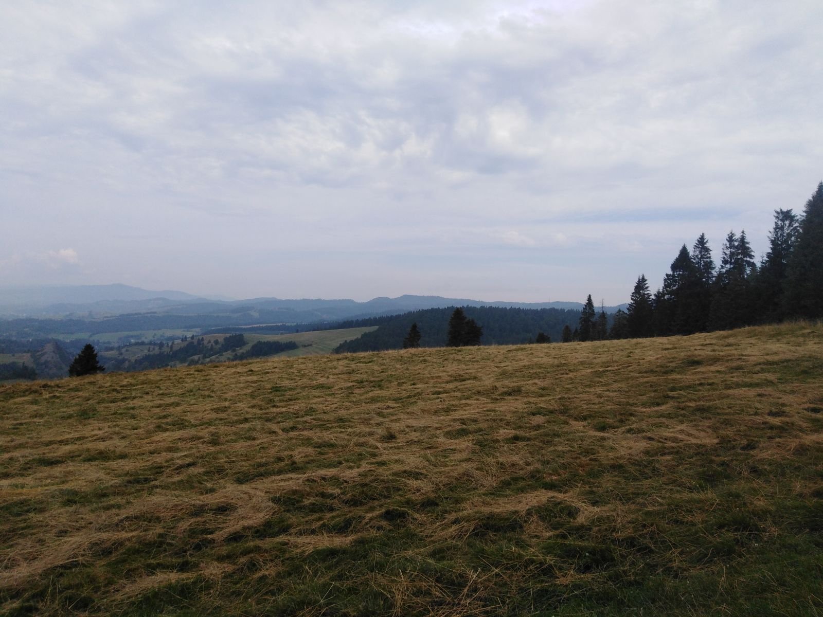 Dojście na Wysoką to duże halę, przyjemna ścieżka z widokiem na Pieniny. Na szlaku pojawia się coraz więcej turystów, nie brakuje tych poruszających się rowerem.