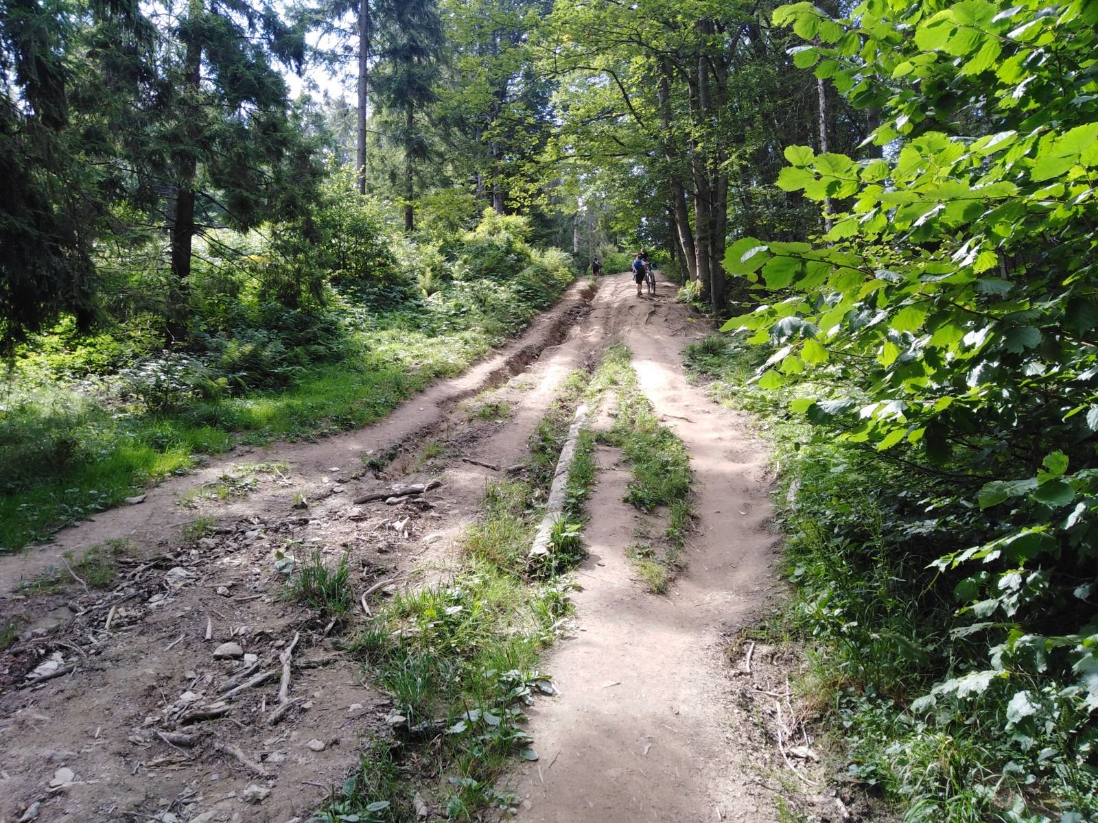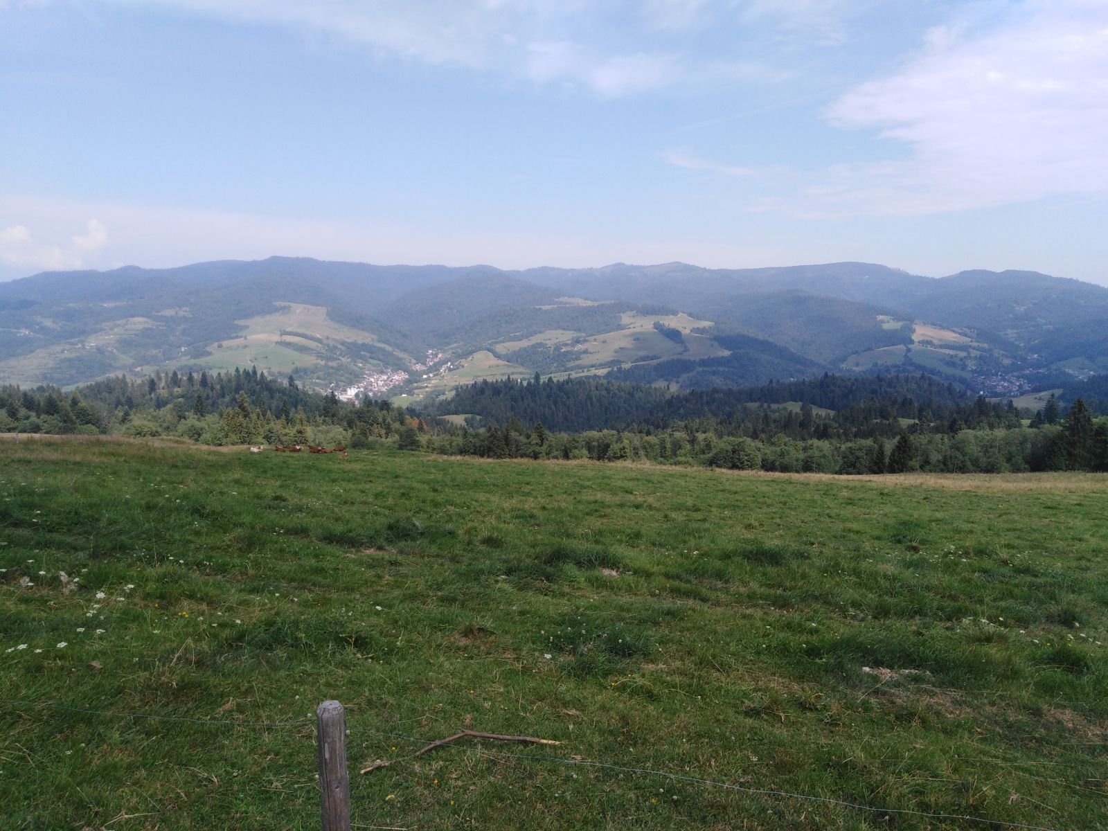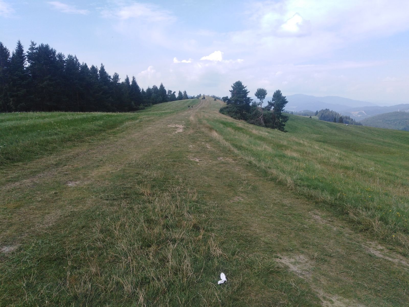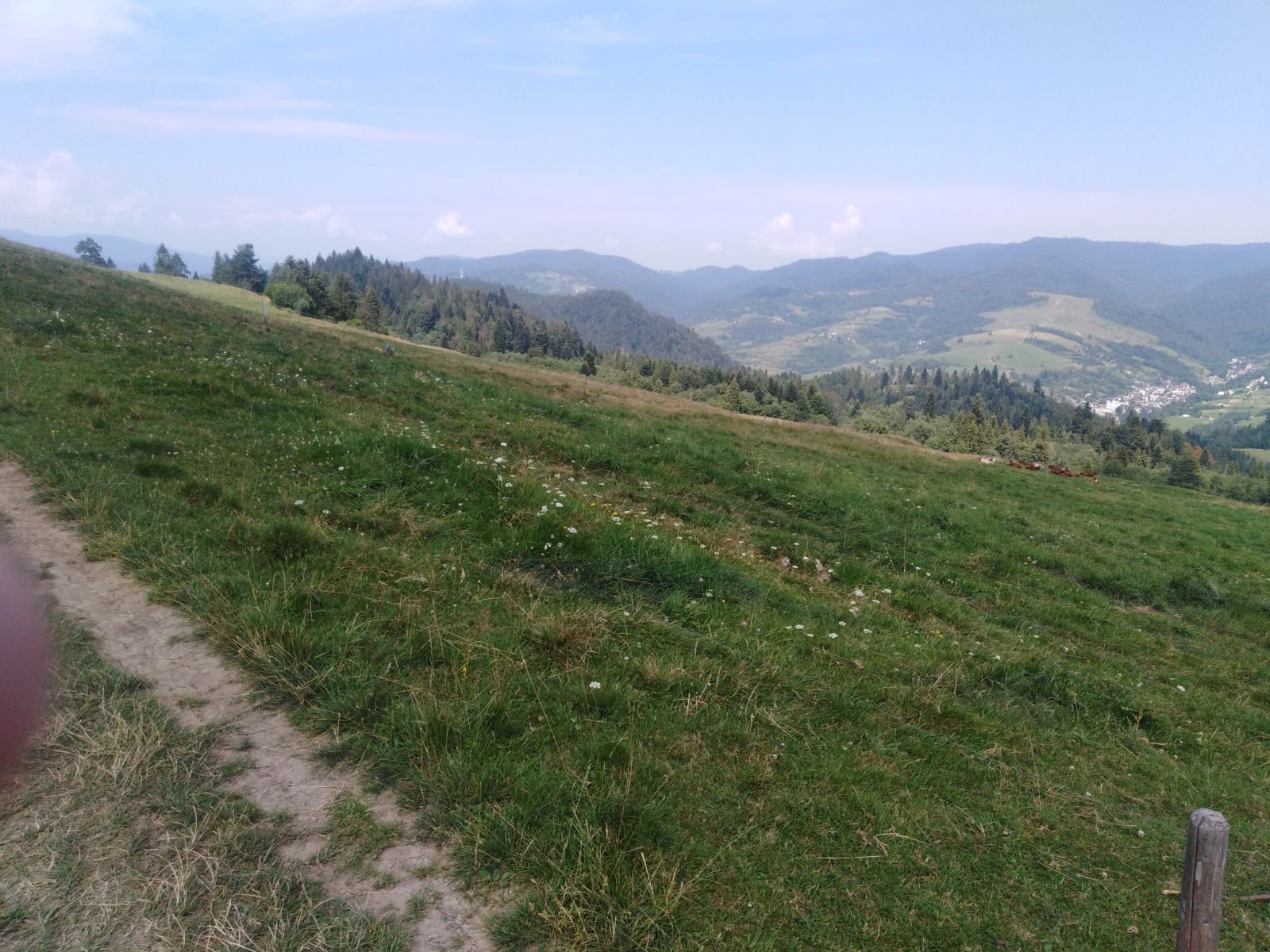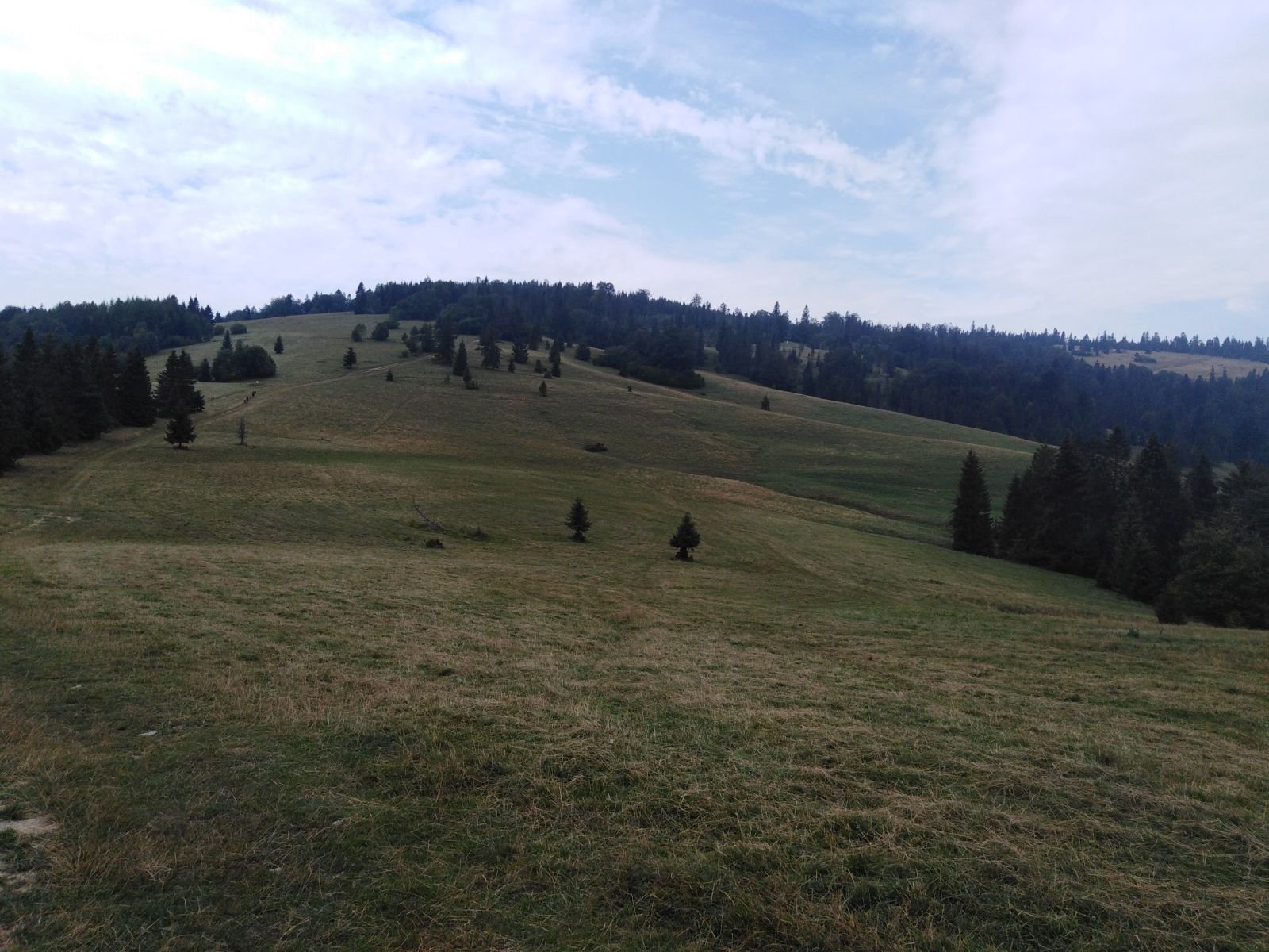 Dojście na Wysoką to duże halę, przyjemna ścieżka z widokiem na Pieniny. Na szlaku pojawia się coraz więcej turystów, nie brakuje tych poruszających się rowerem.