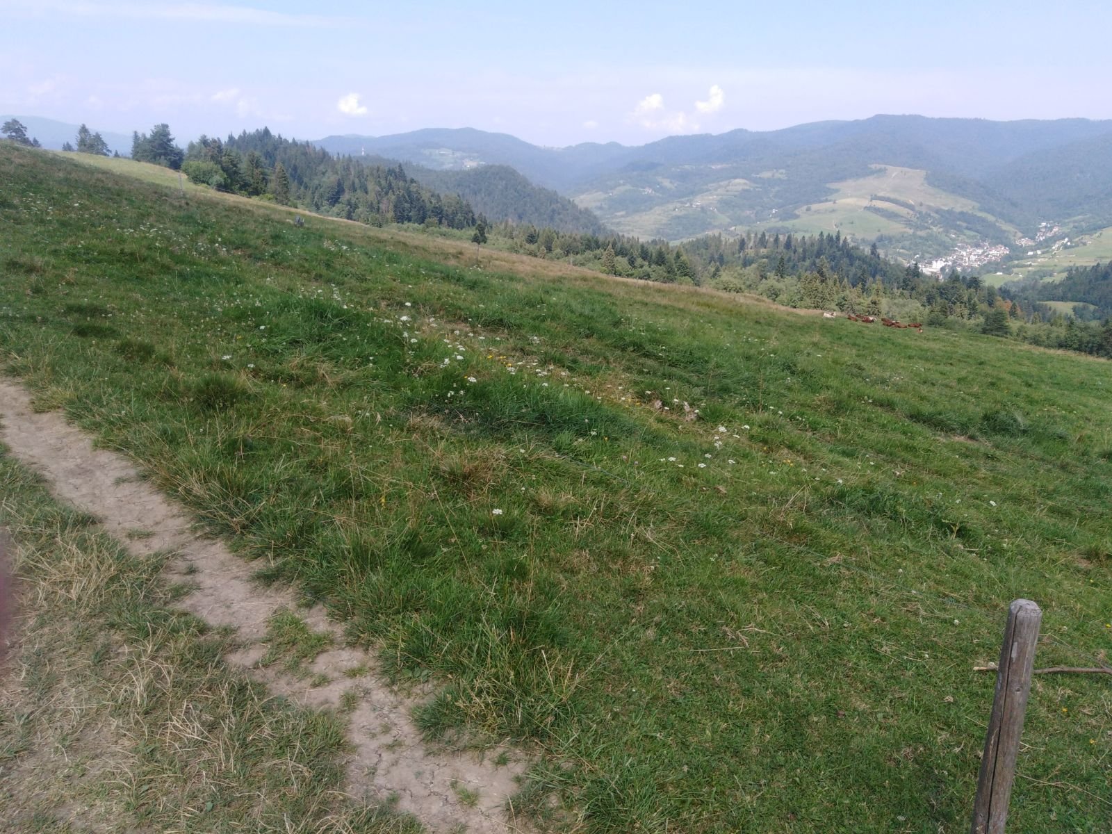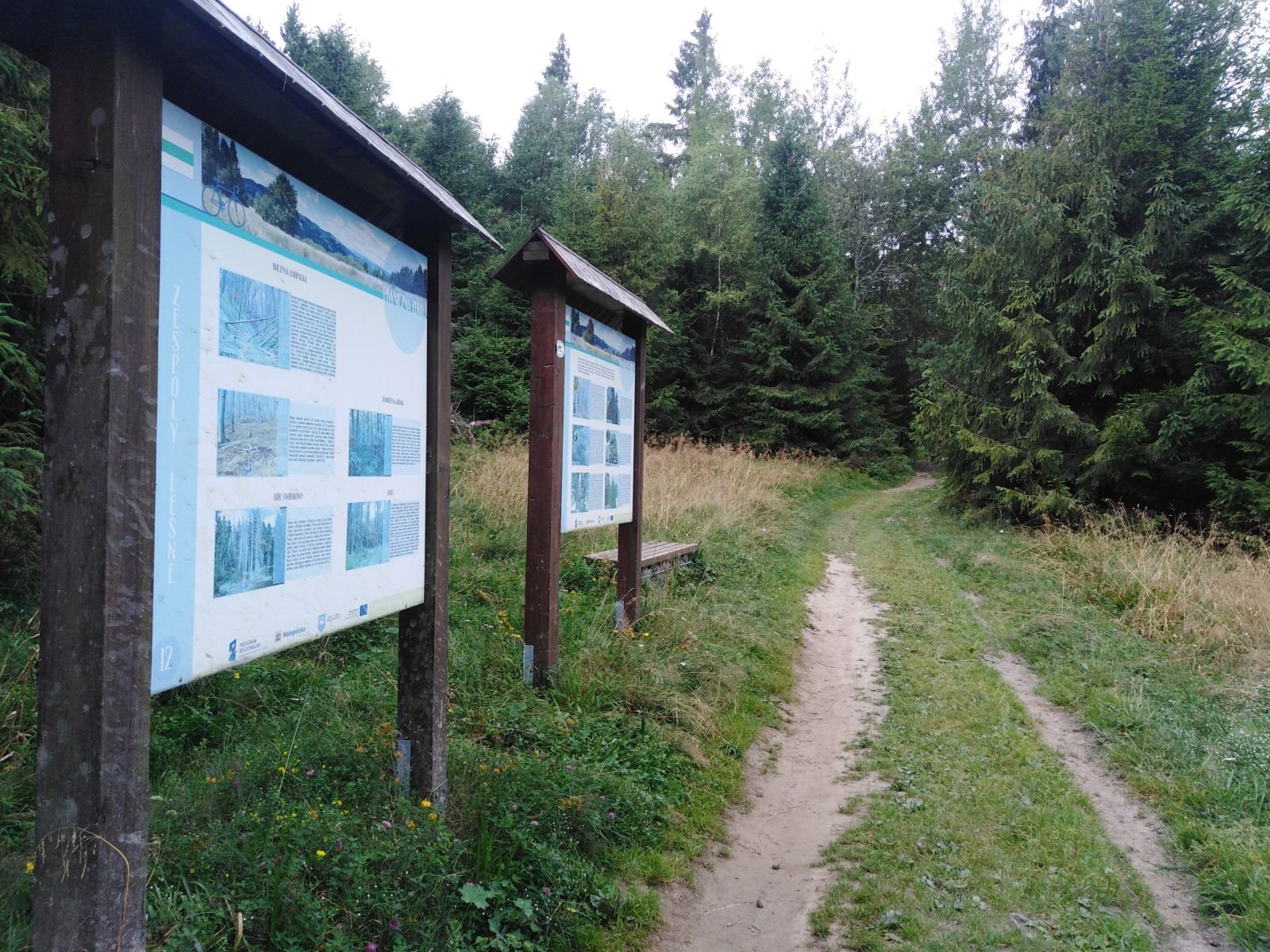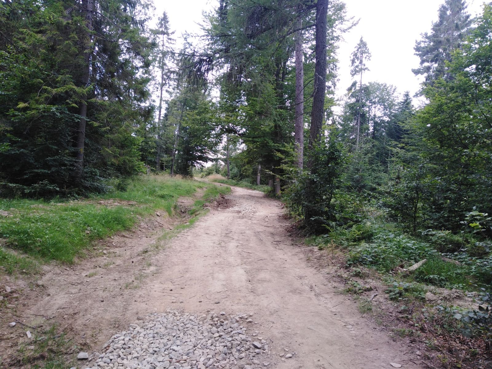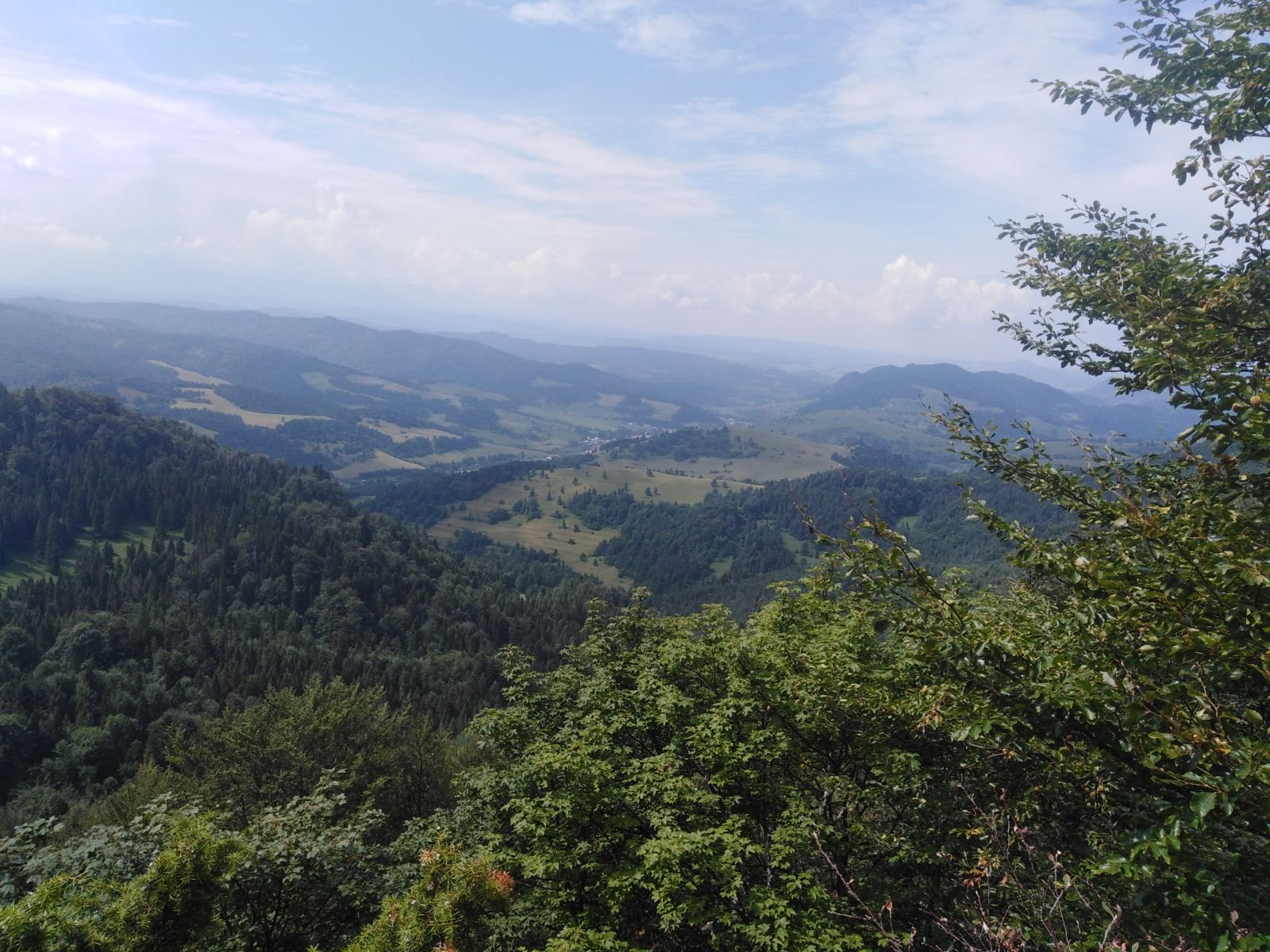 Dojście na Wysoką to duże halę, przyjemna ścieżka z widokiem na Pieniny. Na szlaku pojawia się coraz więcej turystów, nie brakuje tych poruszających się rowerem.