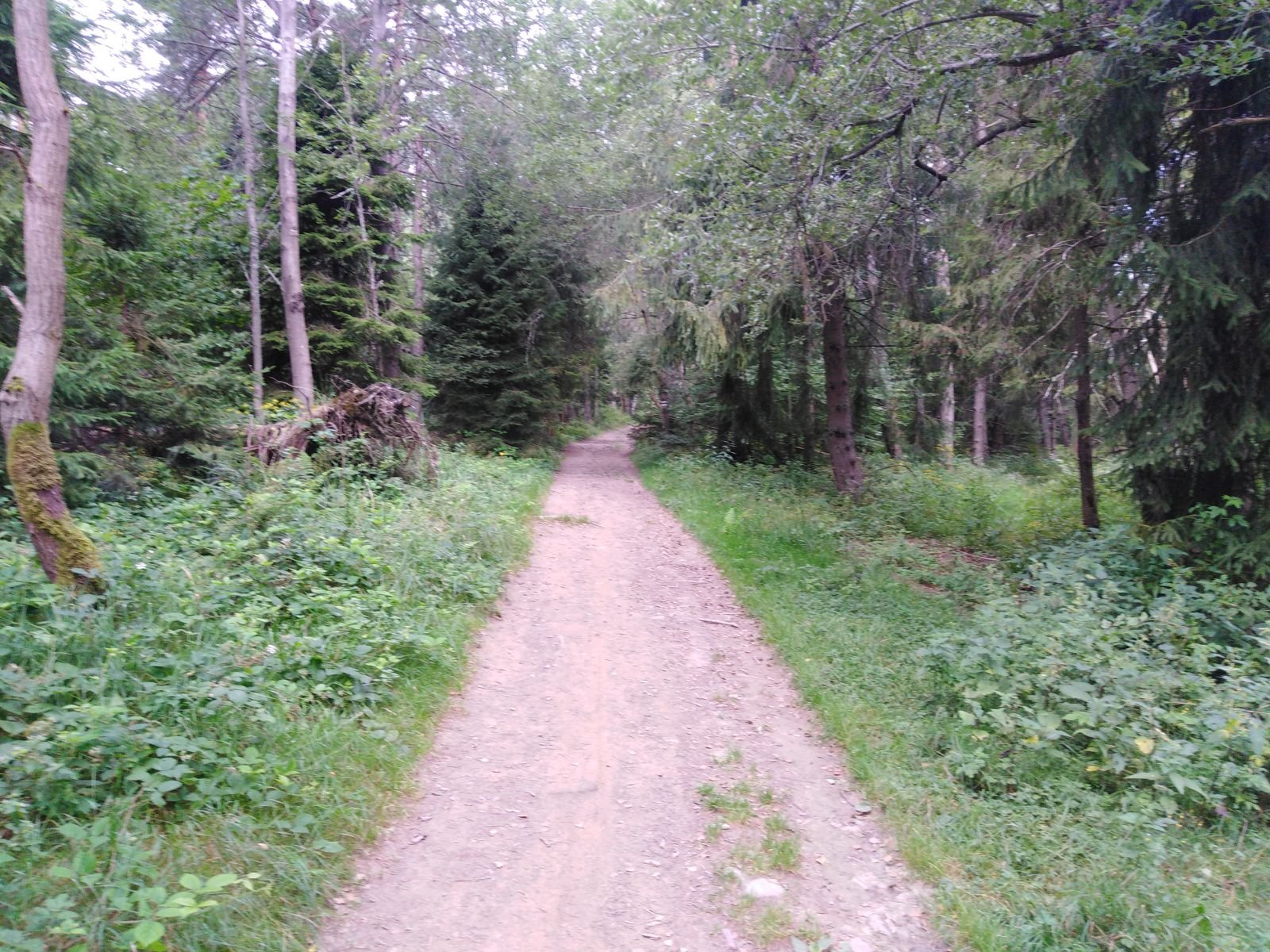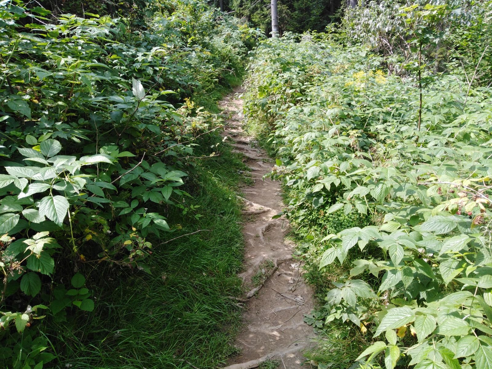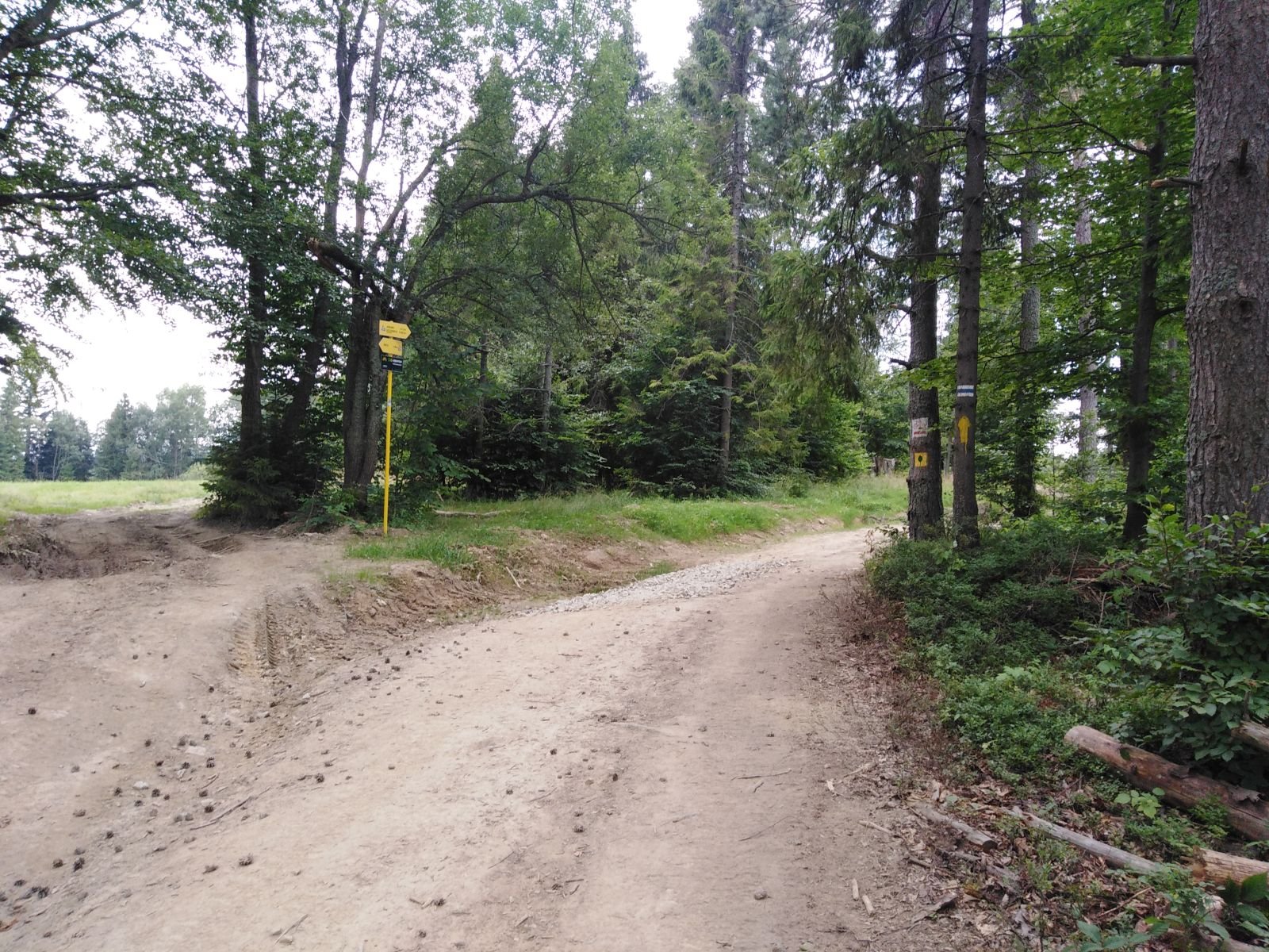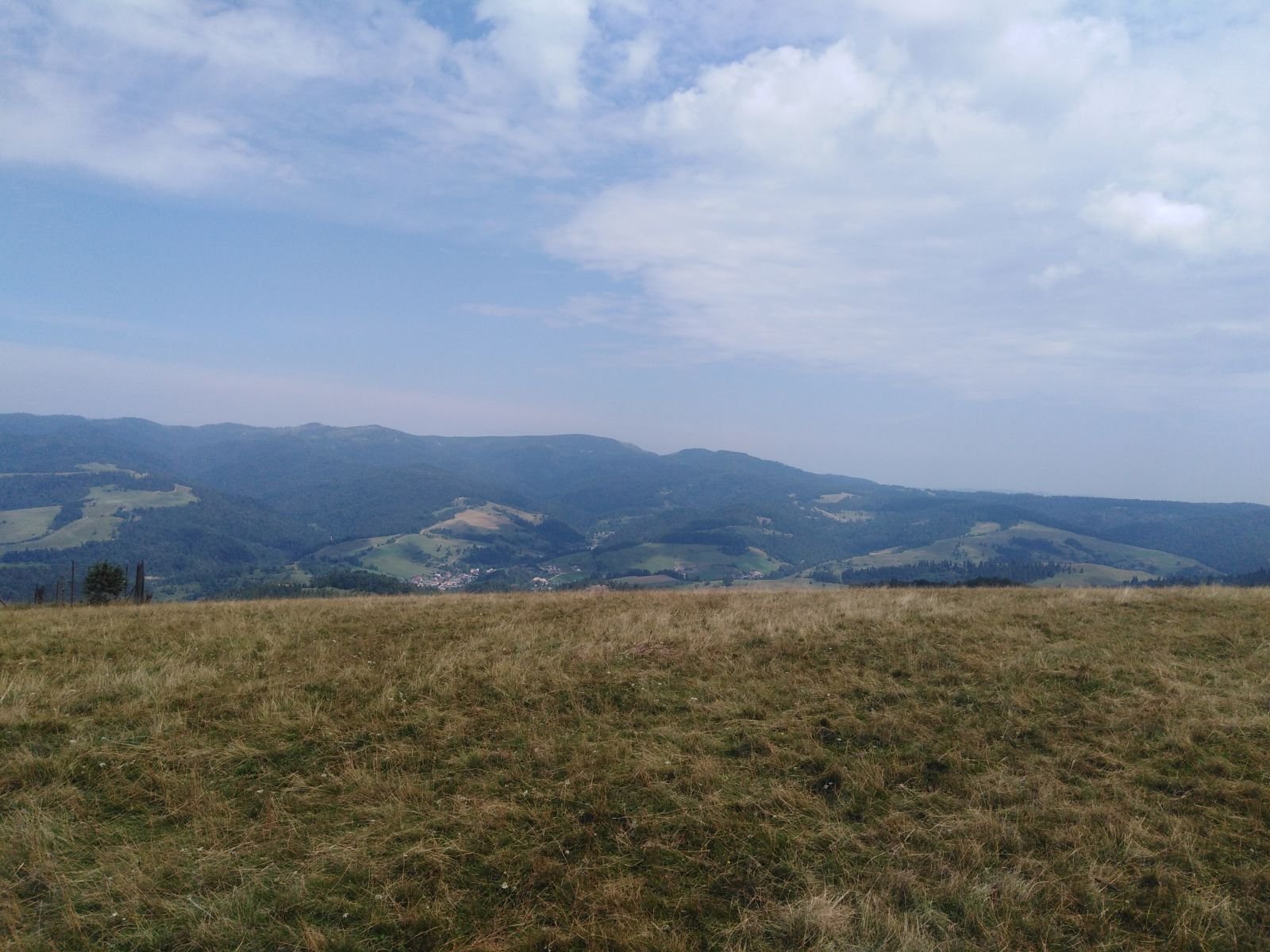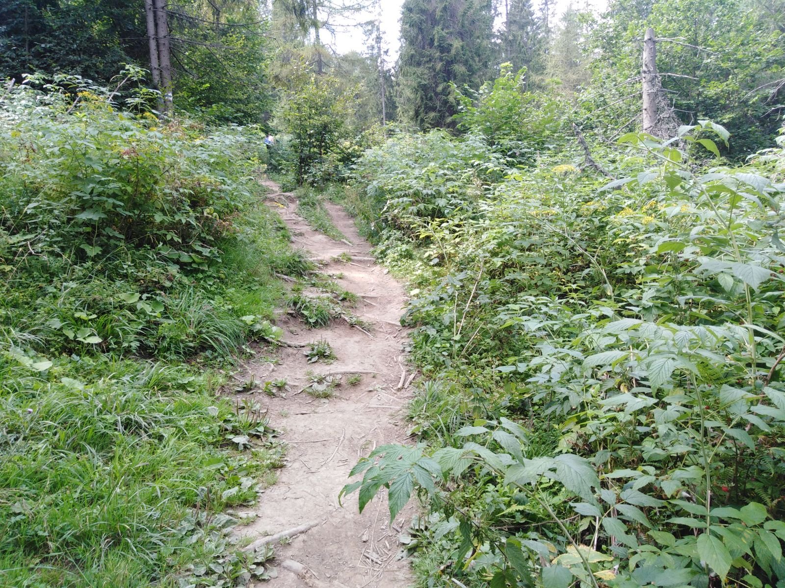 Dojście na Wysoką to duże halę, przyjemna ścieżka z widokiem na Pieniny. Na szlaku pojawia się coraz więcej turystów, nie brakuje tych poruszających się rowerem.