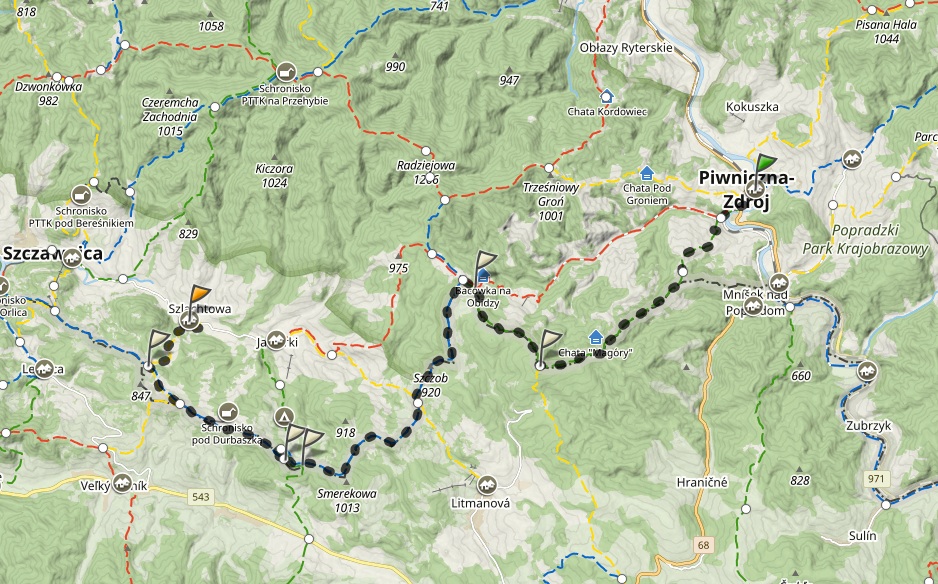 Sugerowany czas przejścia: 9:03 h 27.5 km ( nasz czas przejścia z Piwnicznej Zdrój to 6 godzin 30 minut)