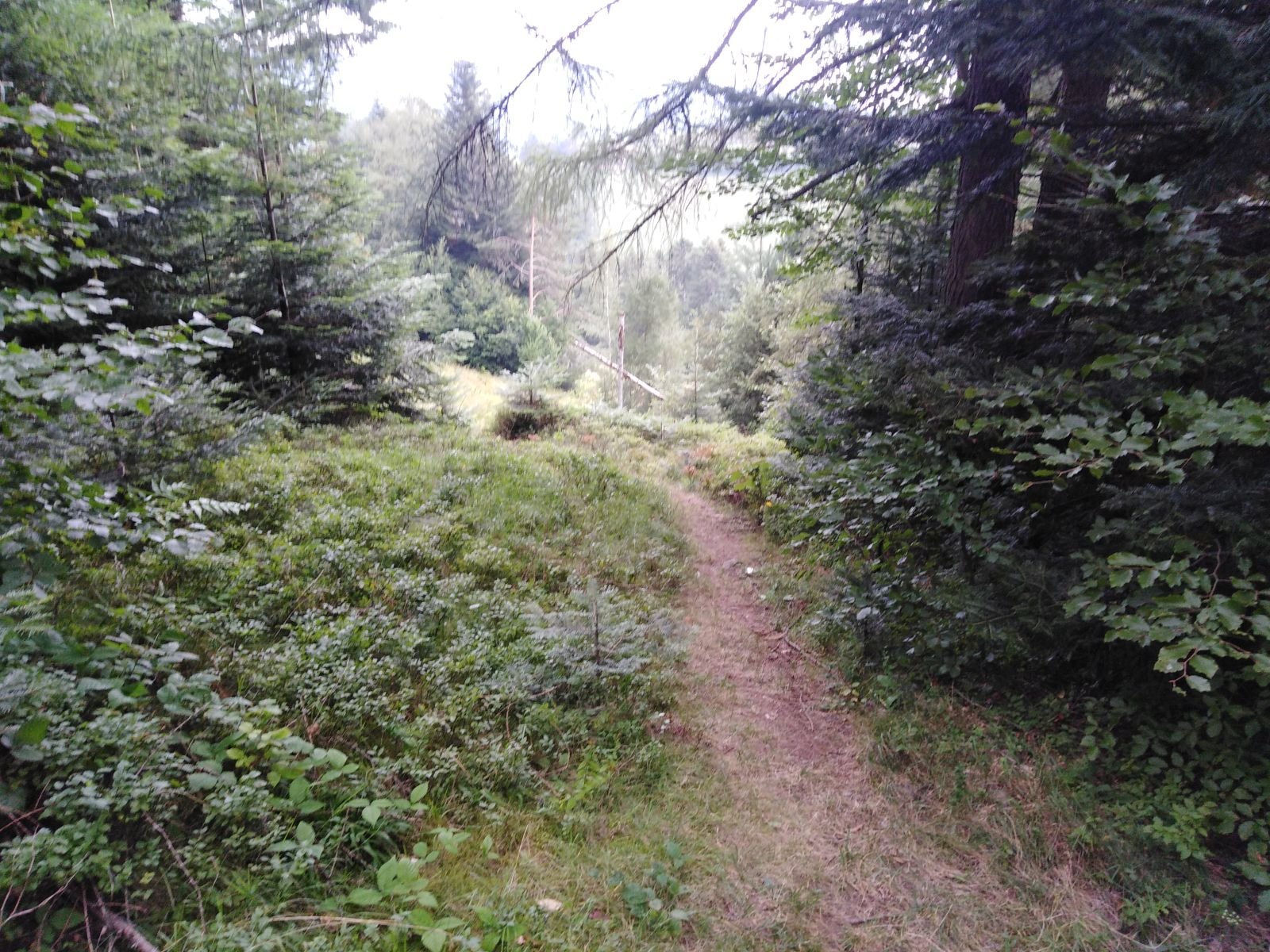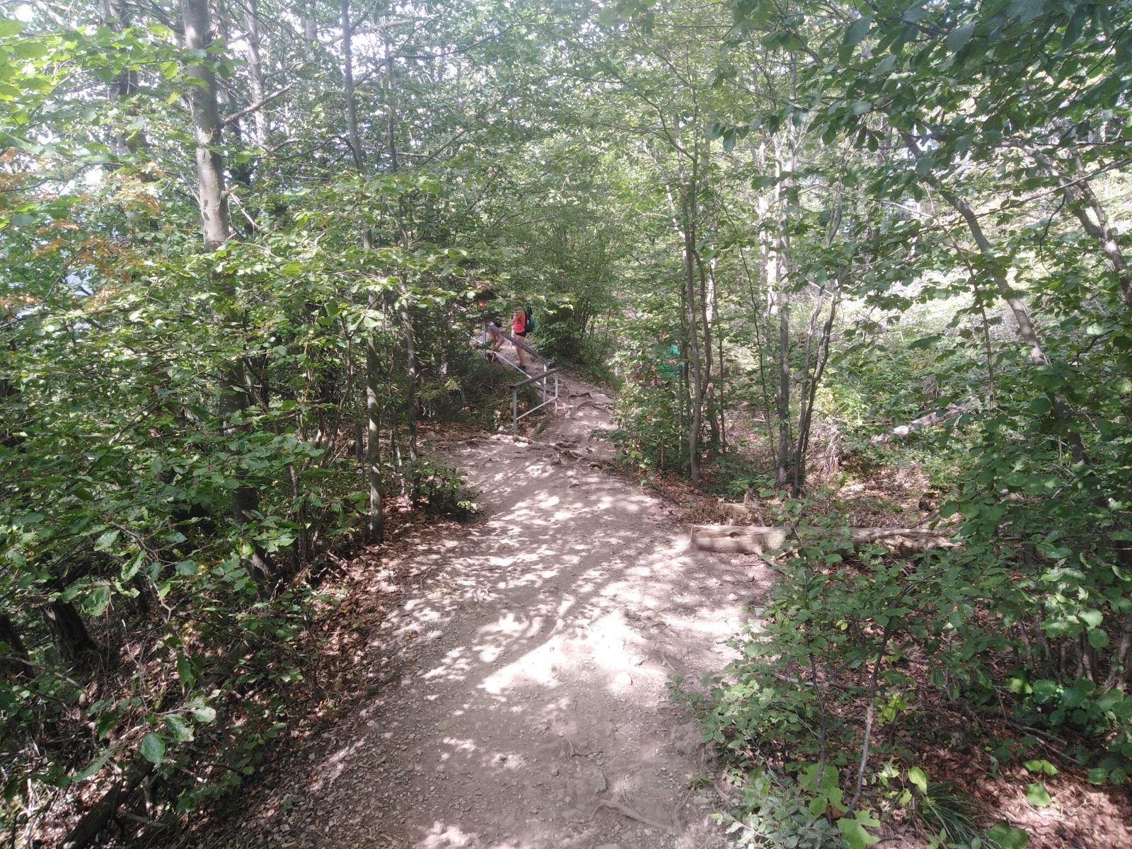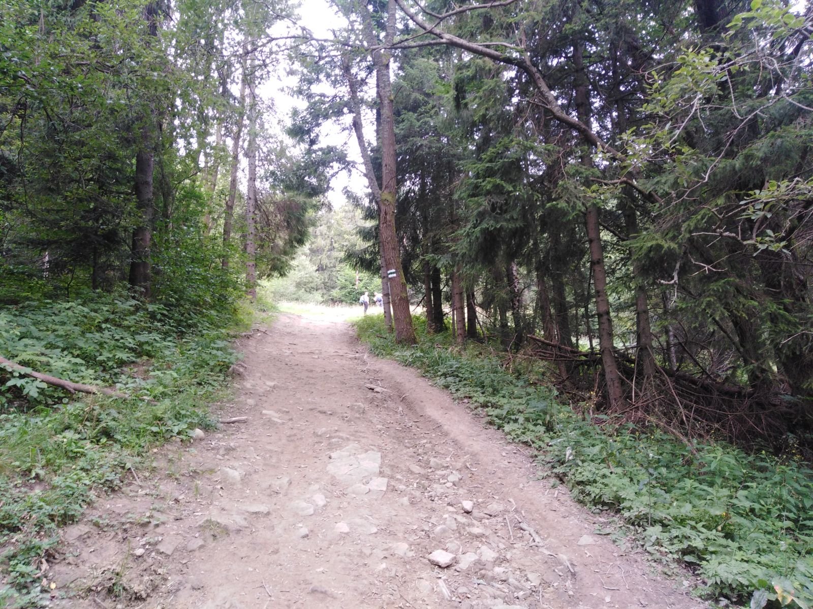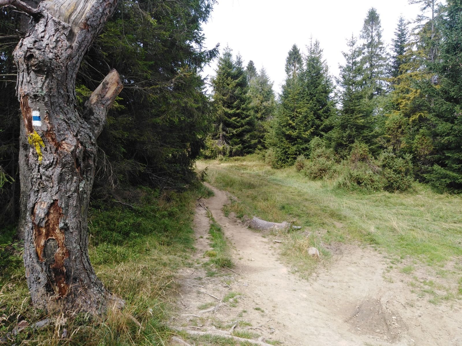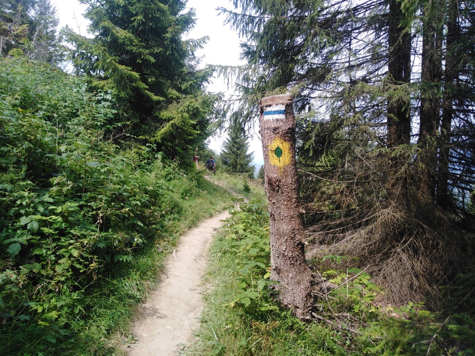 Pod Huściową schodzimy ze szlaku niebieskiego i kierujemy się na Szlachtową idąc żółtym szlakiem. Nie brakuje osób, które o tej godzinie dopiero wychodzą na szlak.