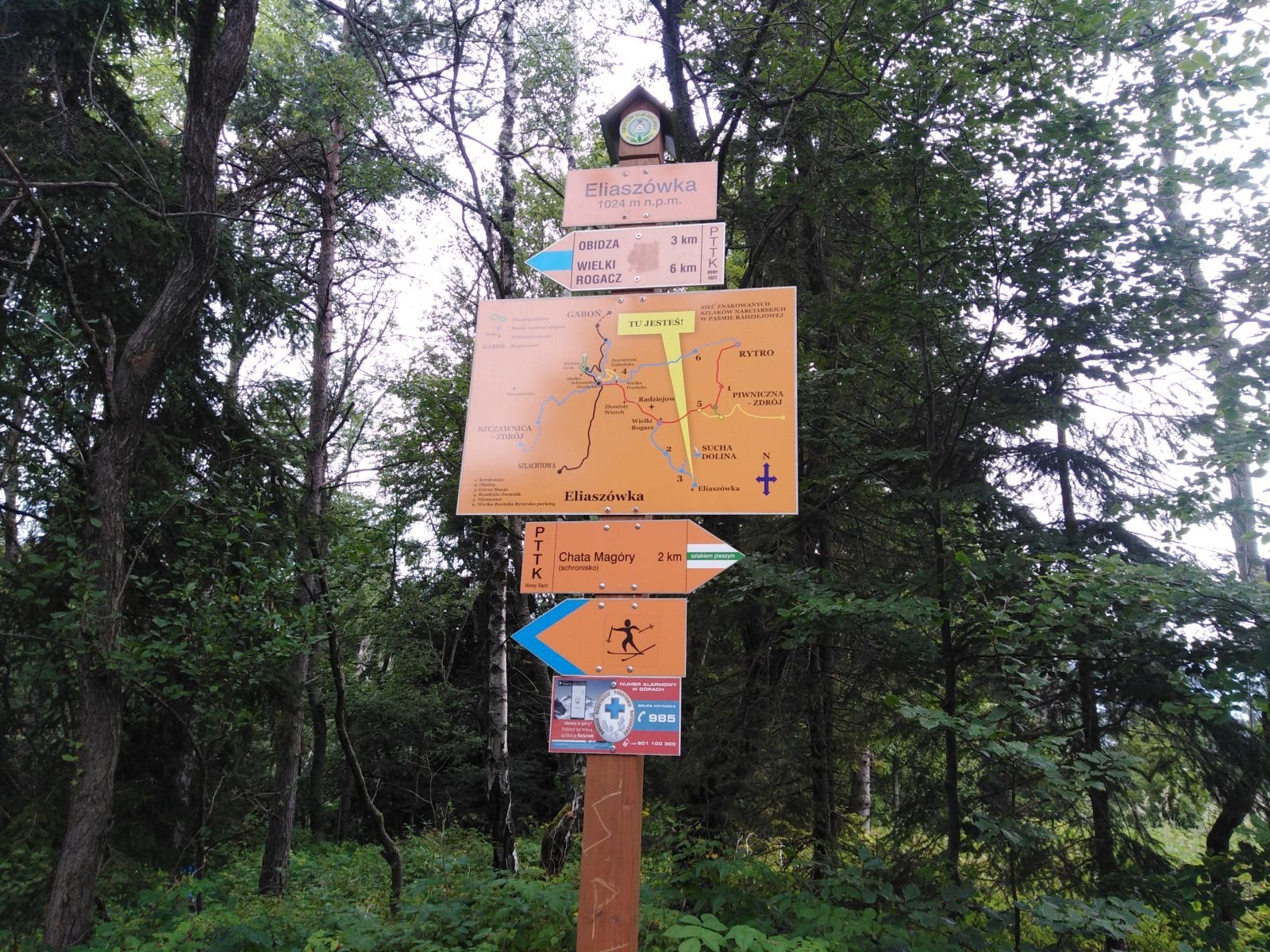 Eliaszówka to najwyższy szczyt Gór Lubowelskich w Beskidzie Sądeckim 1023 m n.p.m. Na szczycie góry możemy wejść na 20 metrową wieże widokową. Tuż obok wieży pod gołym niebem spali sobie młodzi ludzie a to w namiocie a to na hamaku.