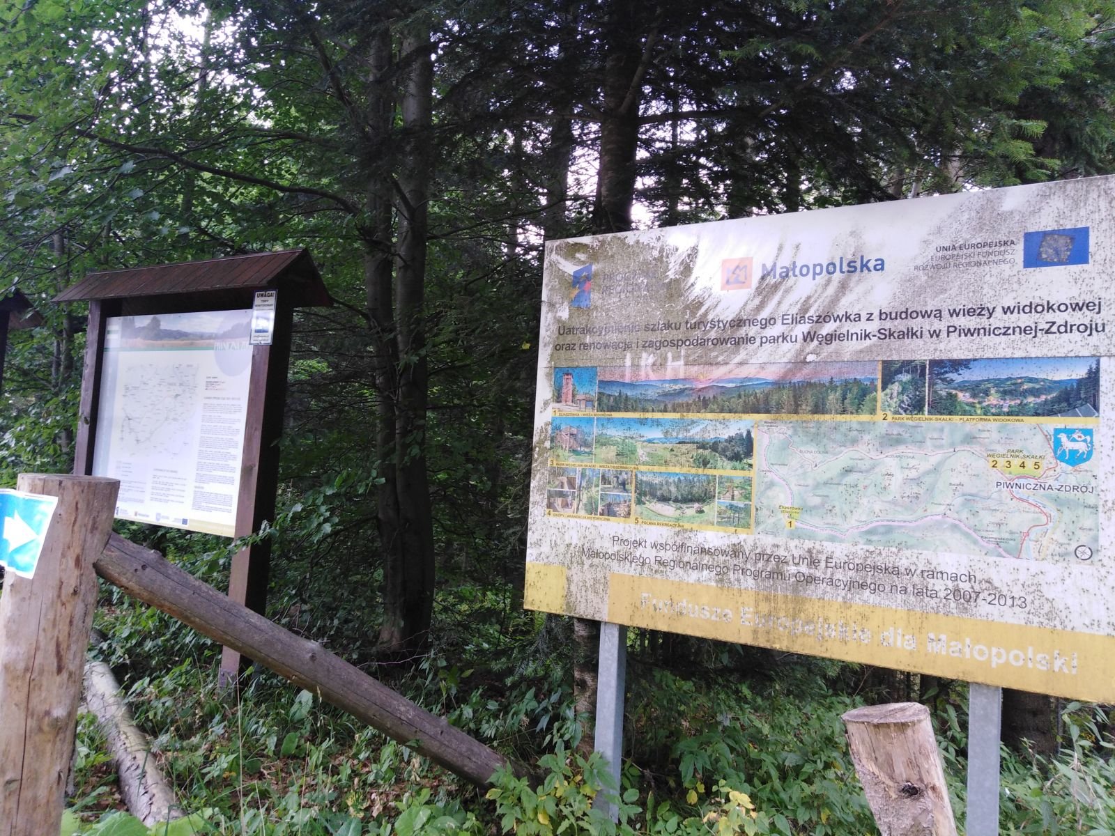 Przy trasie do Obidzy w oczy rzucają się tablicę informacyjne, których jest bardzo wiele. Nie brakuje przy nich ławeczek - wszystko na najwyższym poziomie.