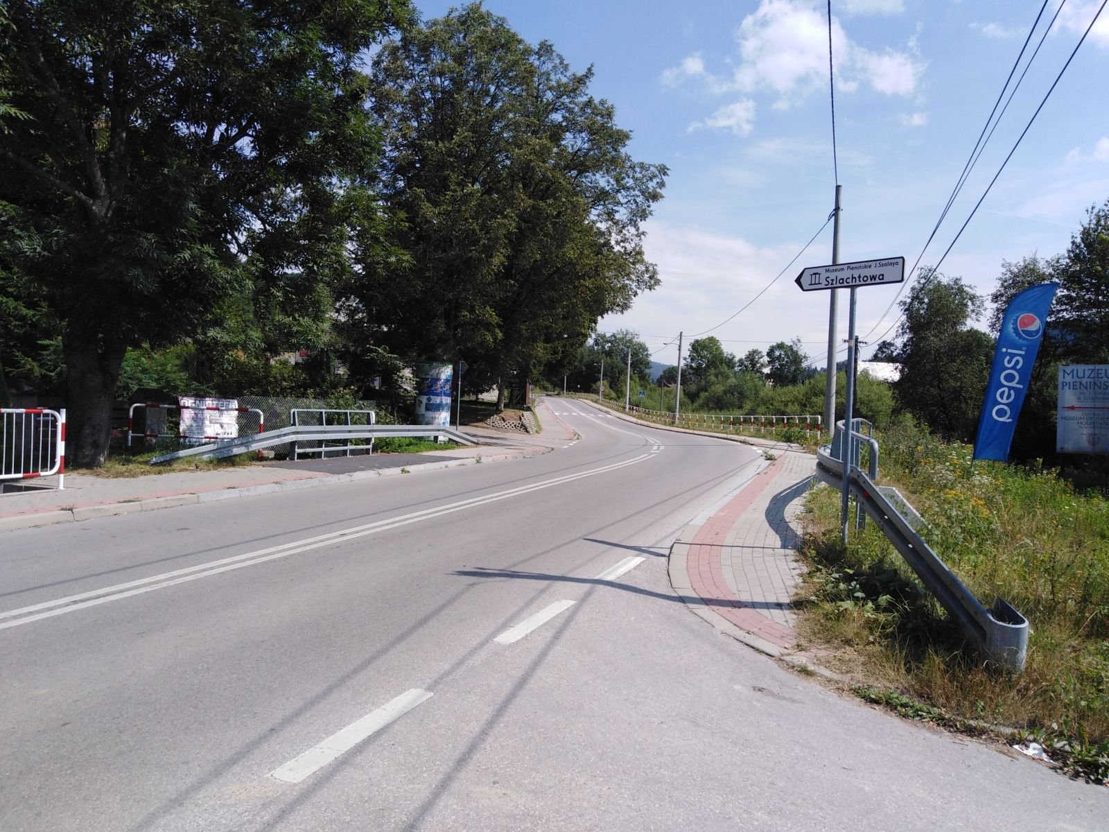 Dojście do Szlachtowej, jest wieś w gminie miejsko-wiejskiej Szczawnica jest najbardziej wysuniętą na zachód wsią w Polsce. Jeszcze tylko przejście przez ulicę i wchodzimy do karczmy na kawę:) W następnym roku można powtórzyć wyprawę i rzeczywiście spłynąć pontonem do Obidzy.
