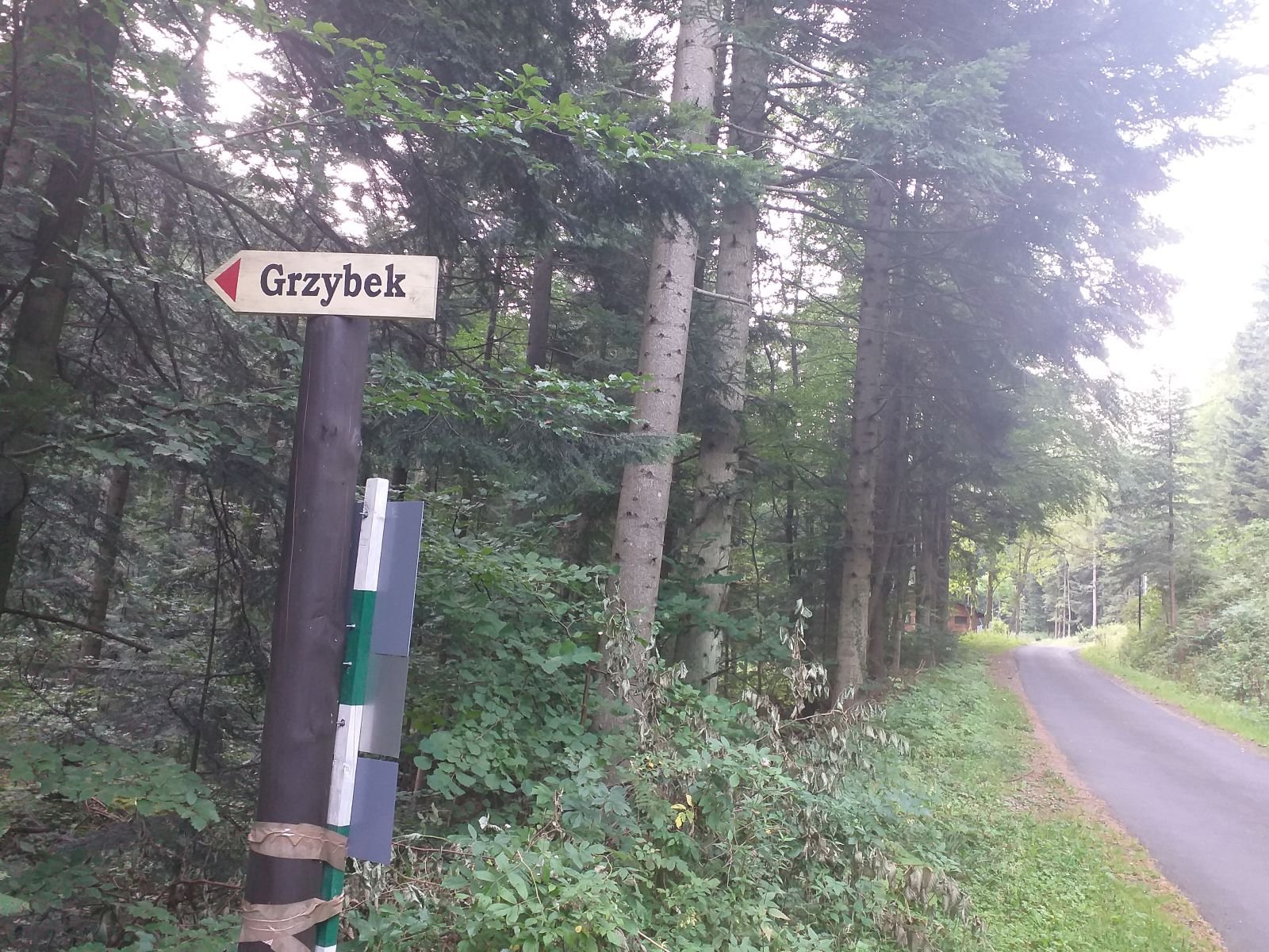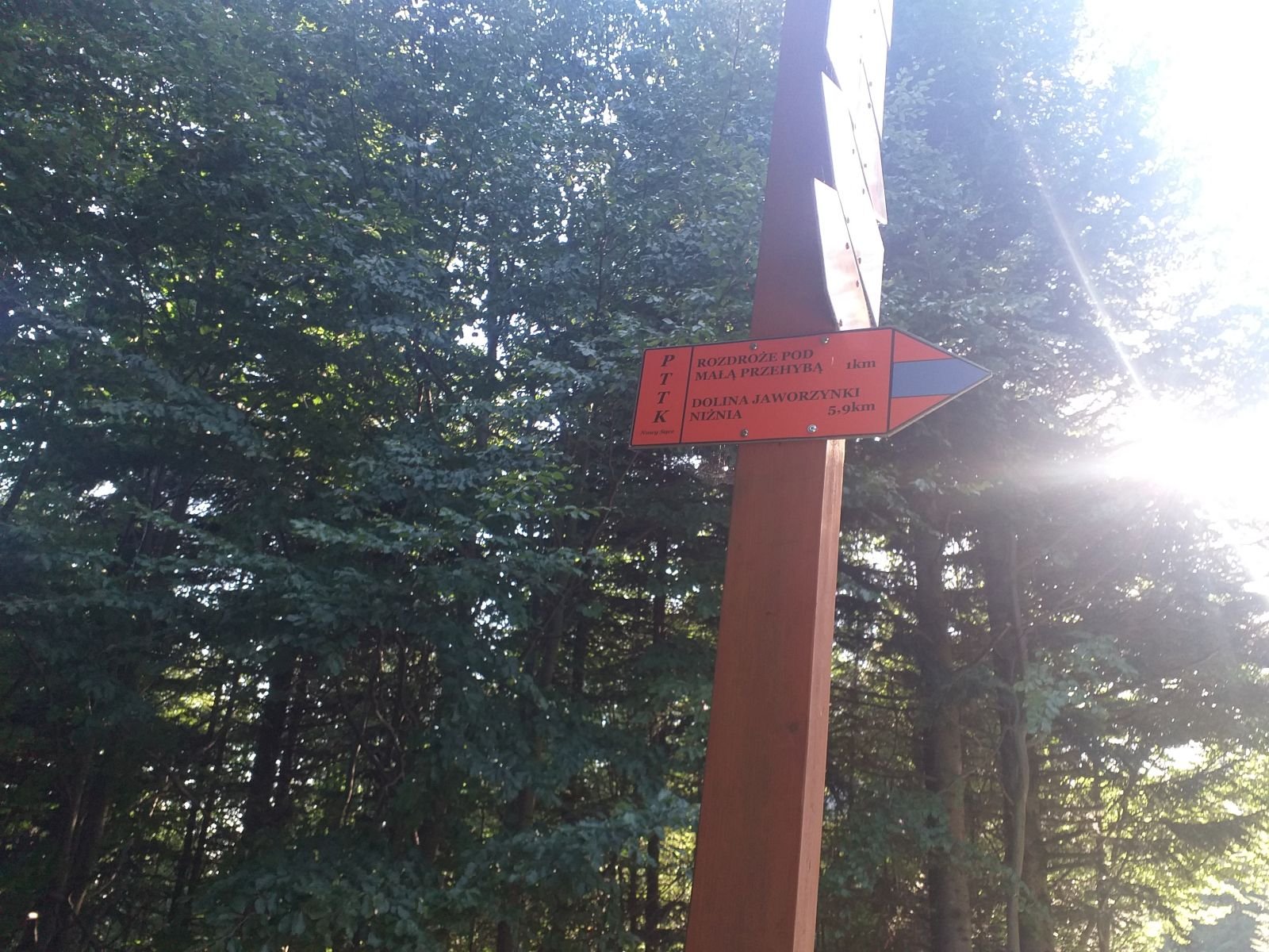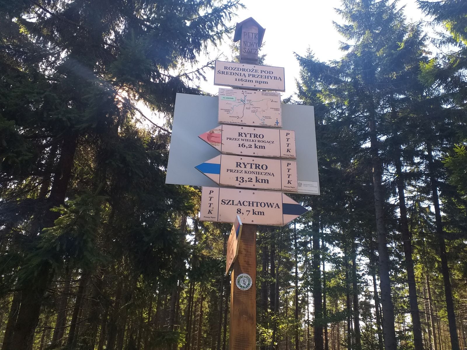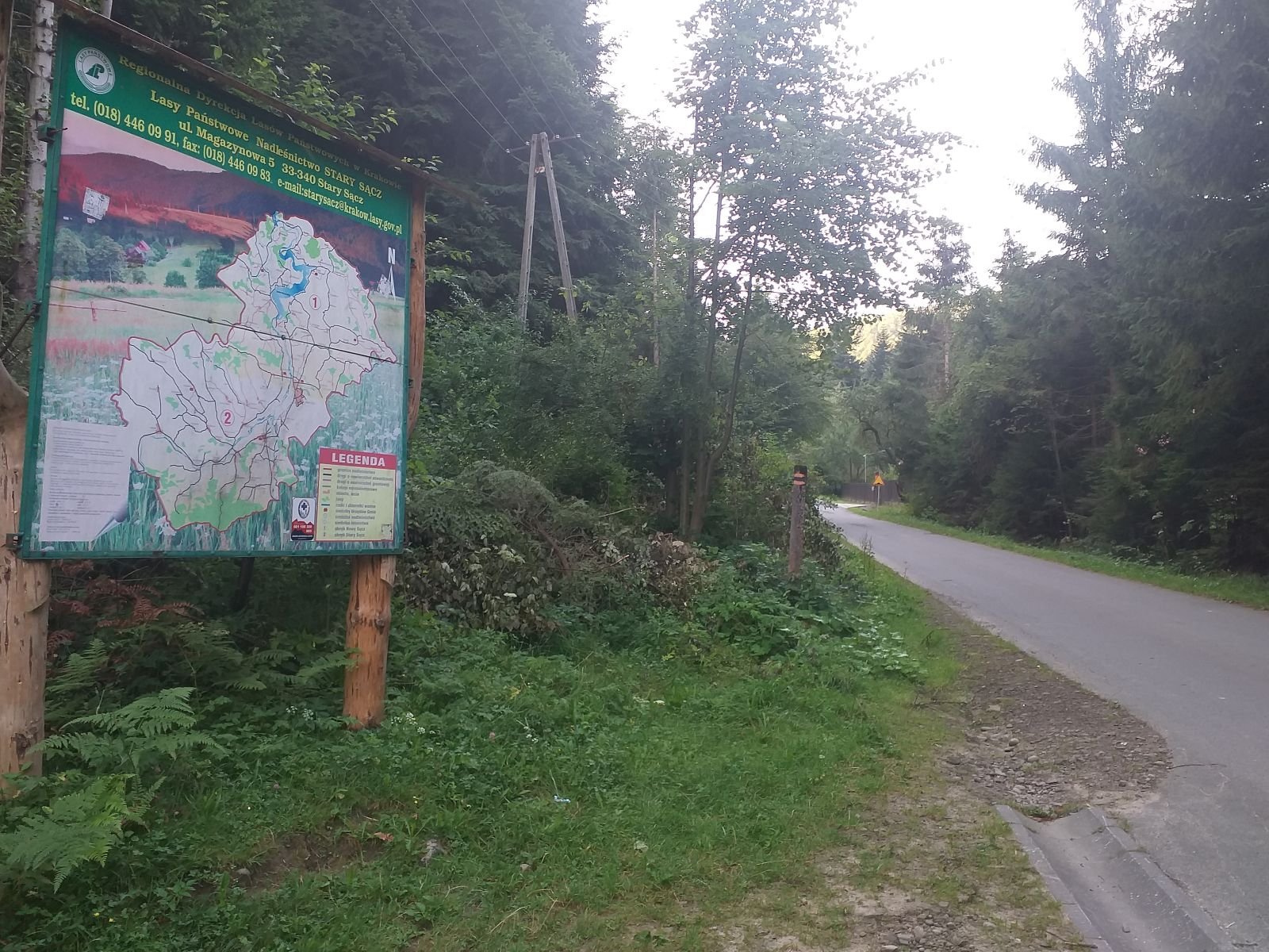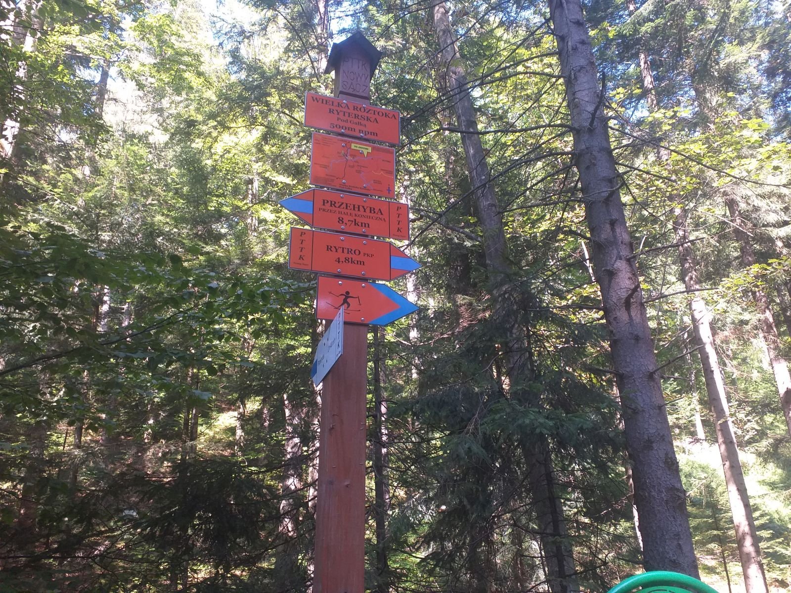 Dobrze oznaczony skręt na Rytro, na wprost dojdziemy zielonym szlakiem do Barcic.