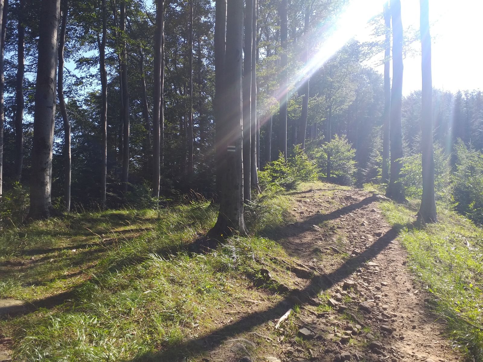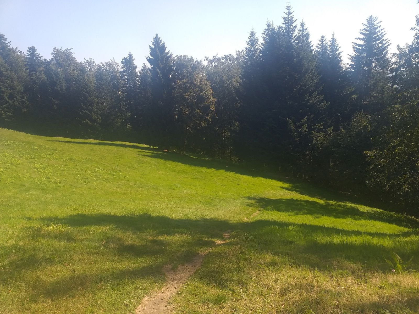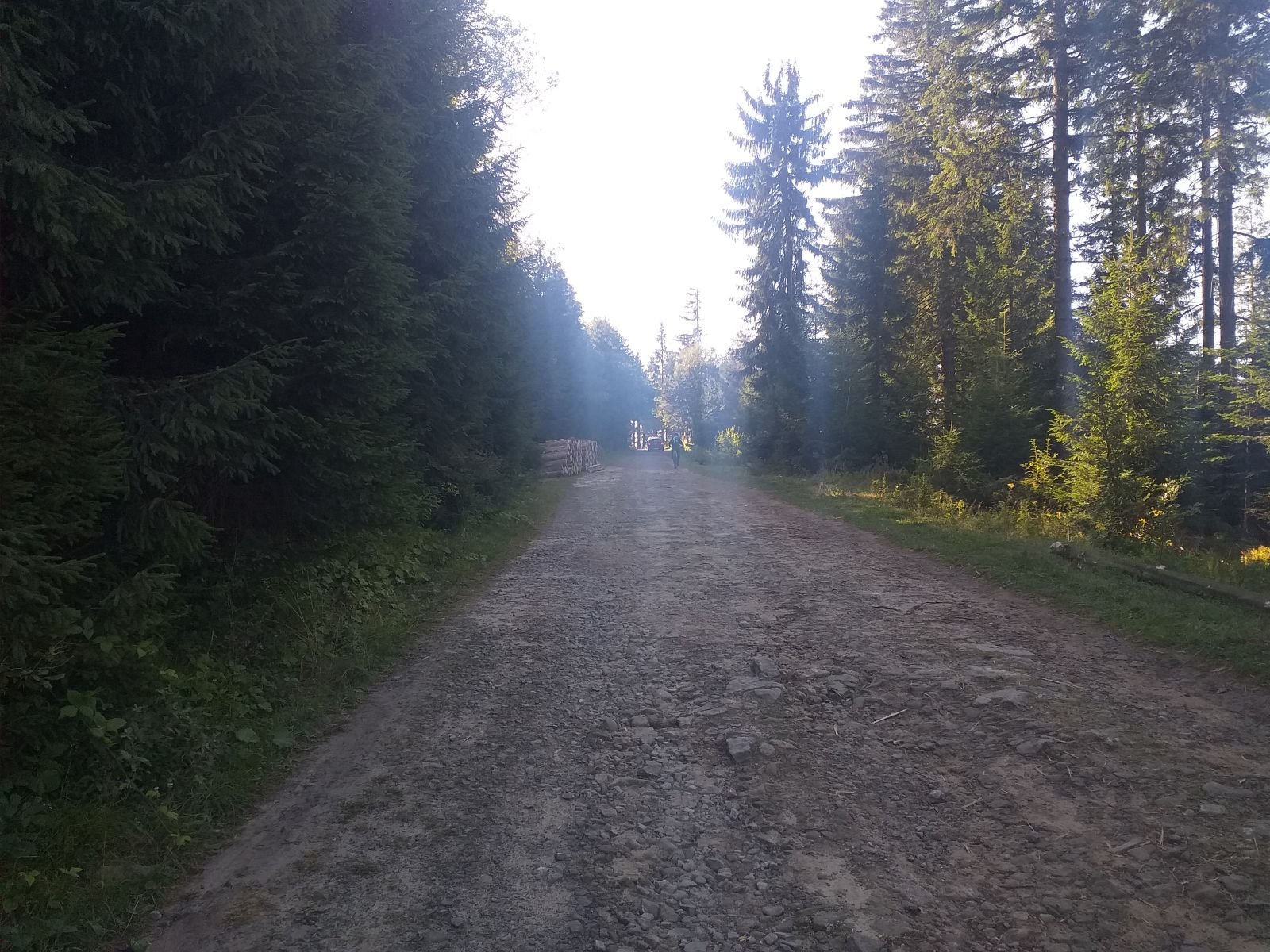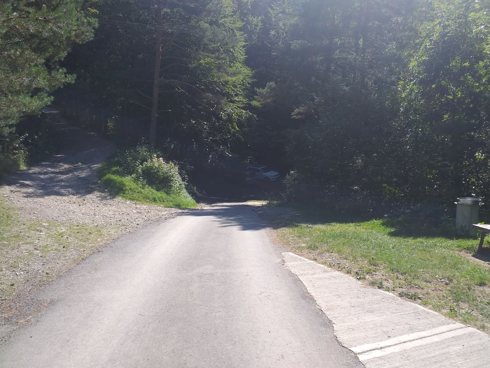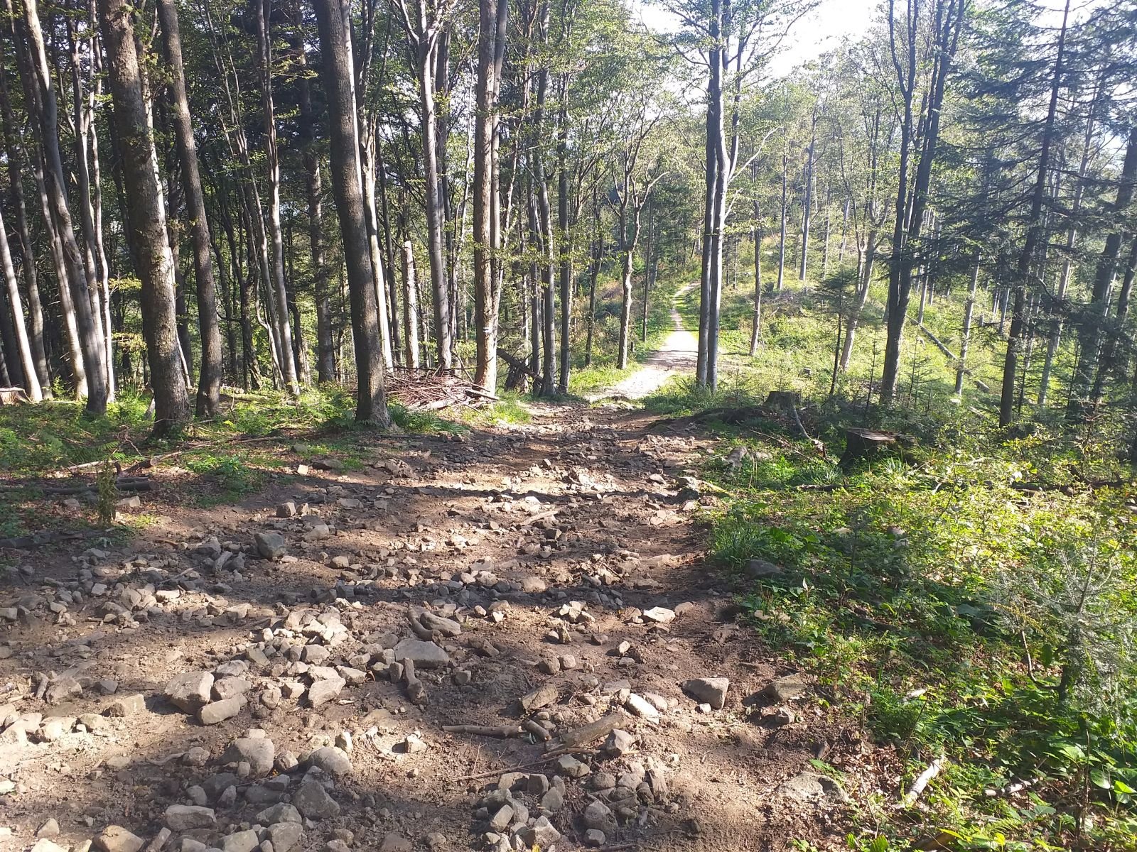 Skręcamy ostro w prawo i można powiedzieć, że oddalamy się od celu podchodząc "na około" aż do momentu gdzie skręcimy w lewo przy drodze dobrze nam znanej z podejścia zielonym szlakiem. Mijamy ołtarz polowy i kamień Św.Kingi