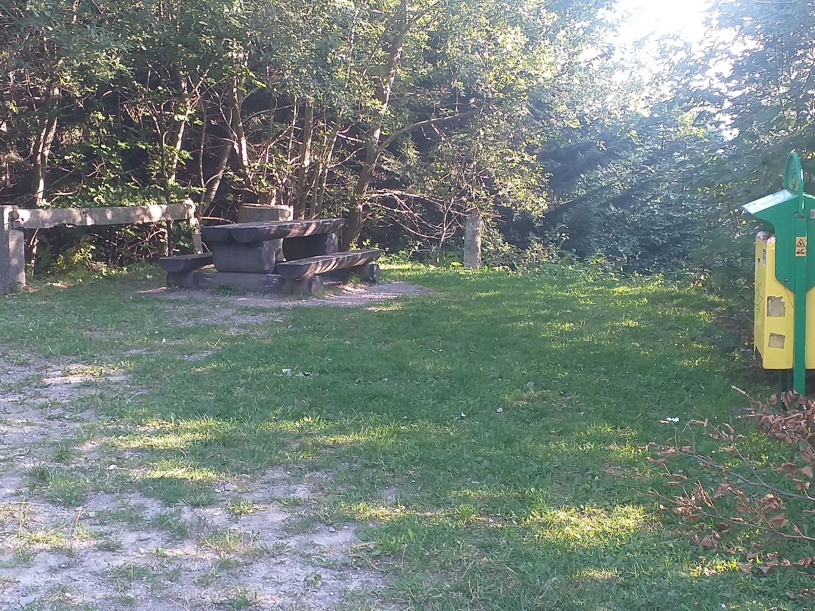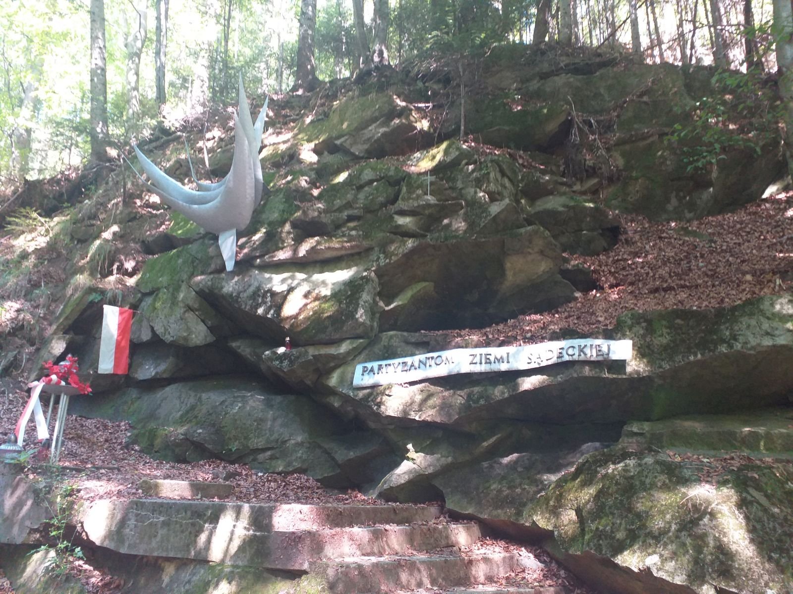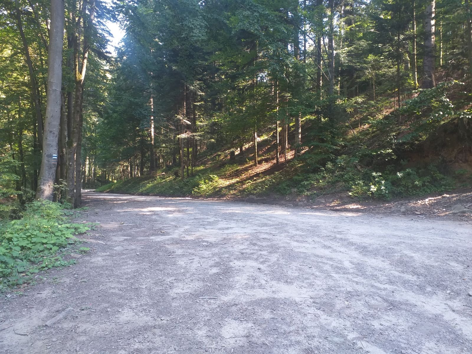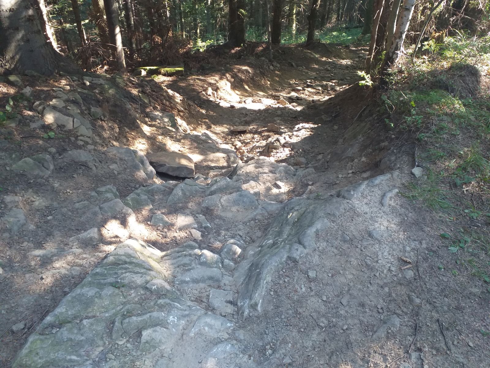 Skręcamy ostro w prawo i można powiedzieć, że oddalamy się od celu podchodząc "na około" aż do momentu gdzie skręcimy w lewo przy drodze dobrze nam znanej z podejścia zielonym szlakiem. Mijamy ołtarz polowy i kamień Św.Kingi