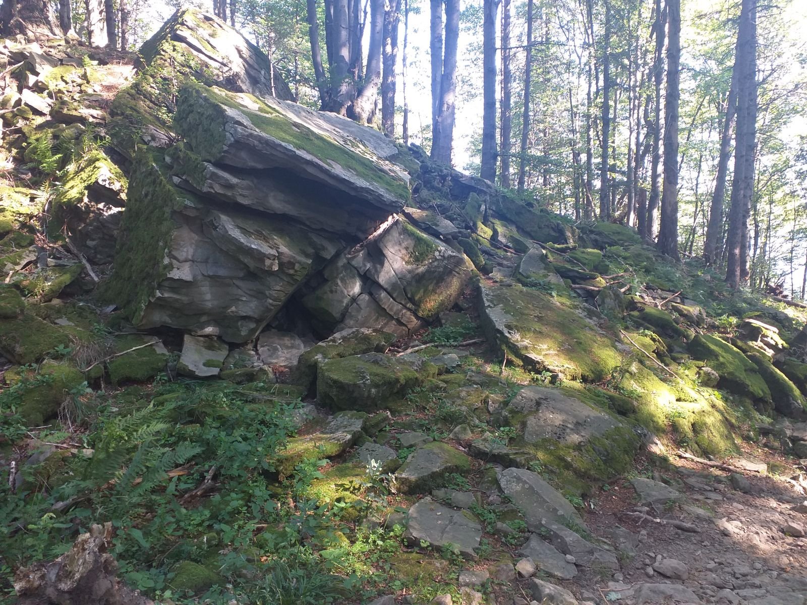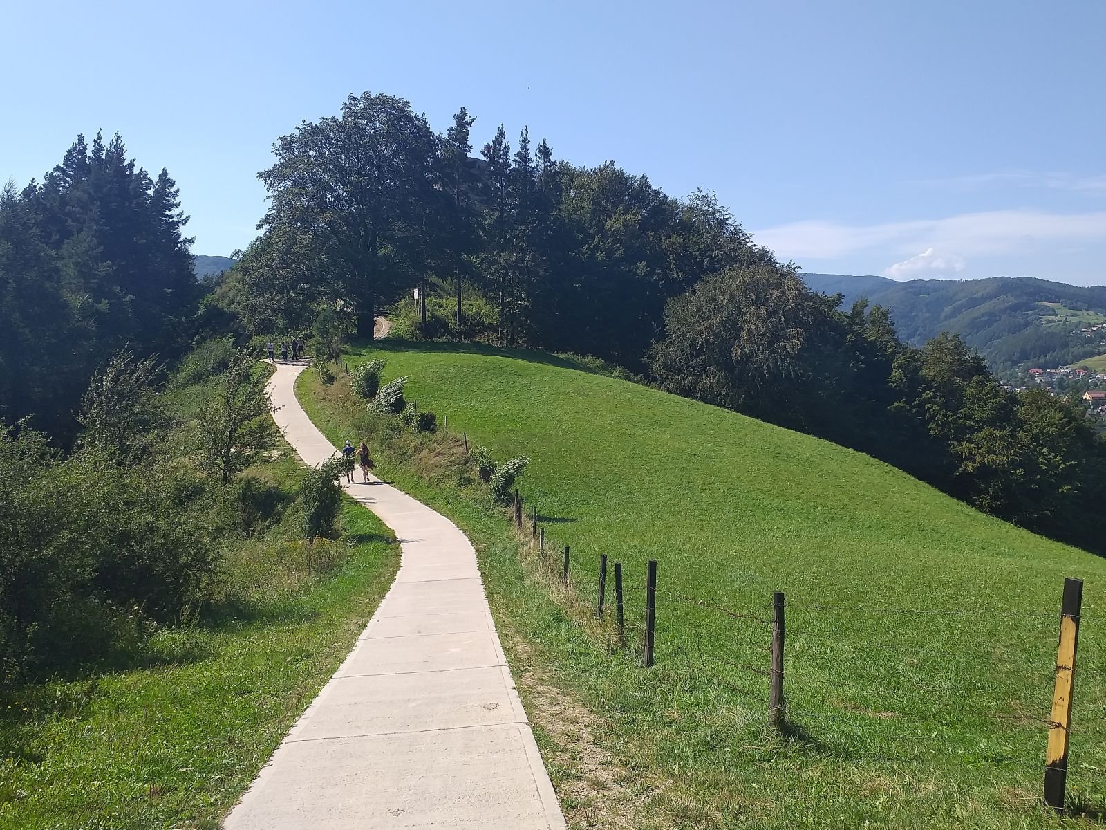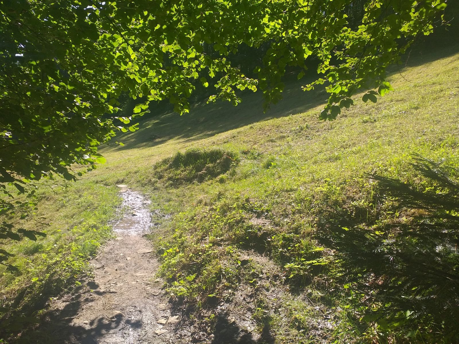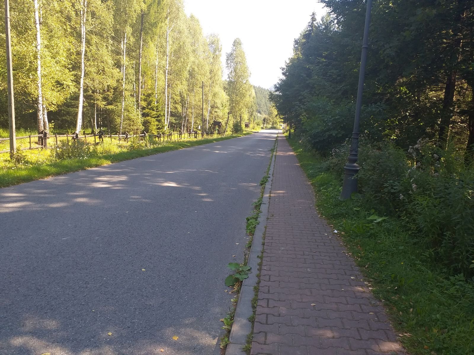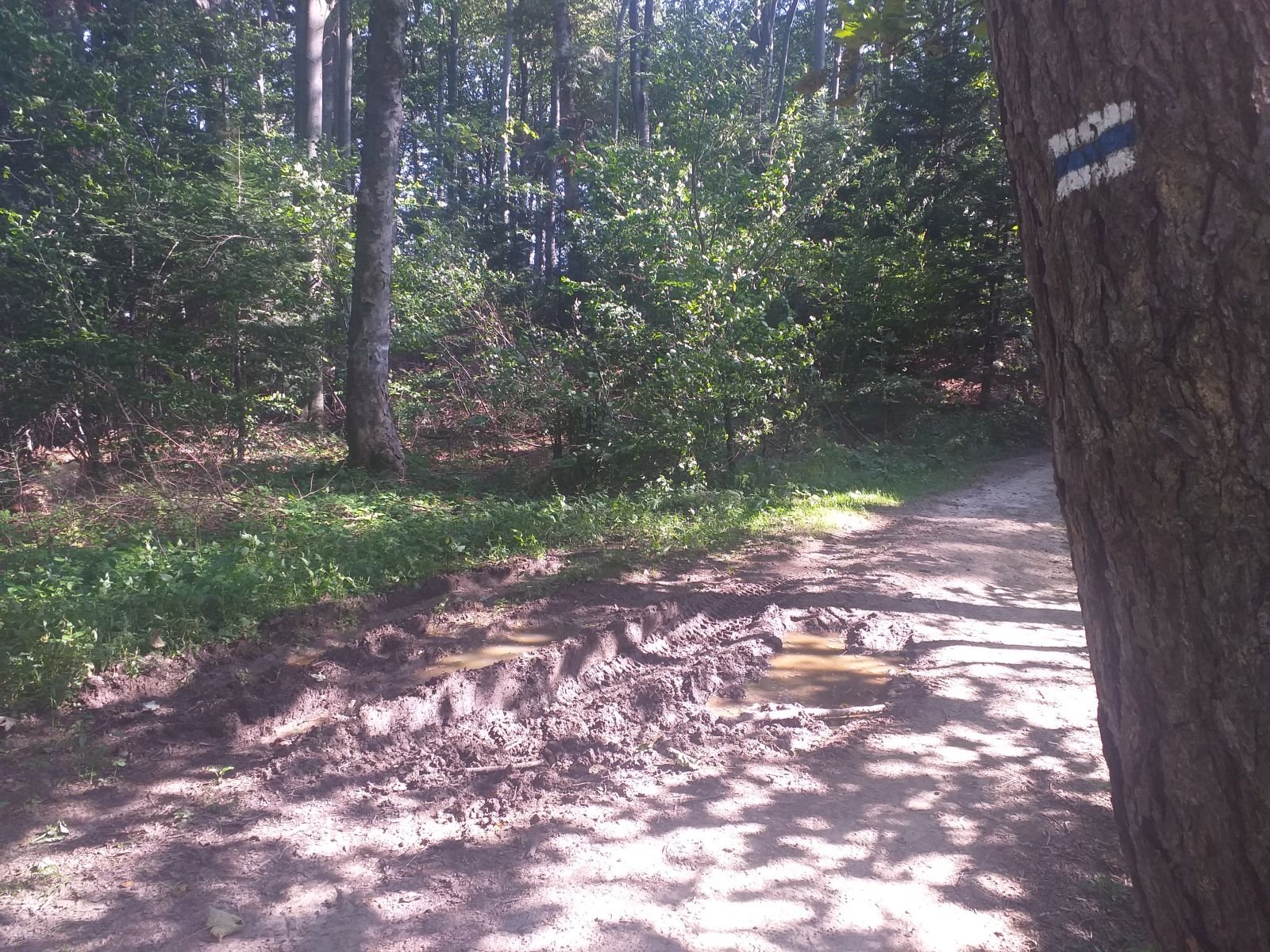 Skręcamy ostro w prawo i można powiedzieć, że oddalamy się od celu podchodząc "na około" aż do momentu gdzie skręcimy w lewo przy drodze dobrze nam znanej z podejścia zielonym szlakiem. Mijamy ołtarz polowy i kamień Św.Kingi