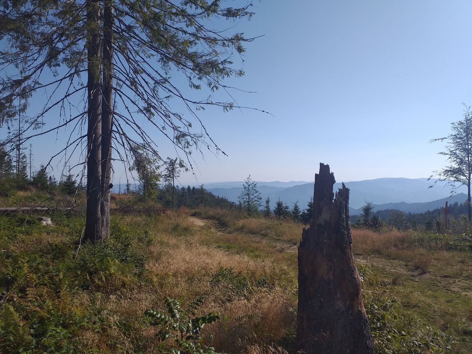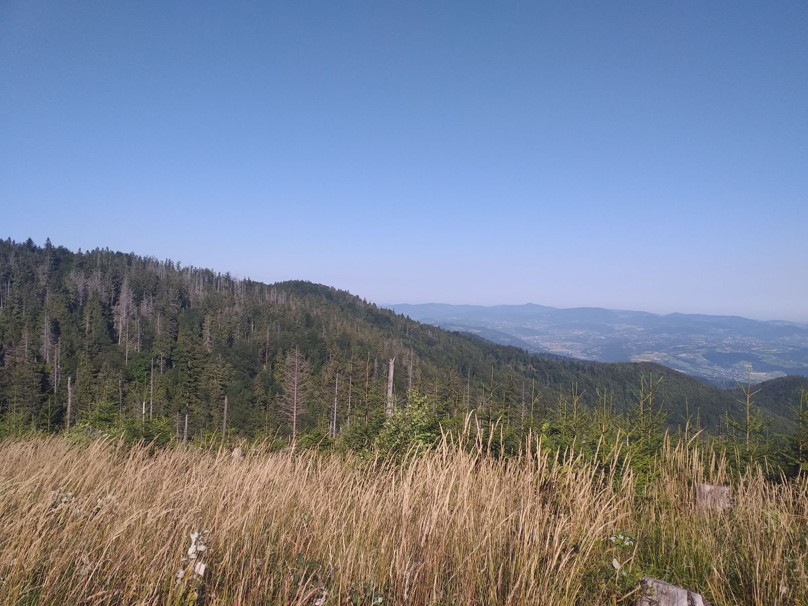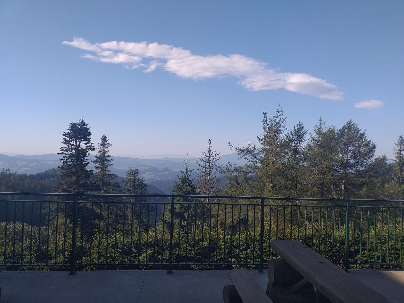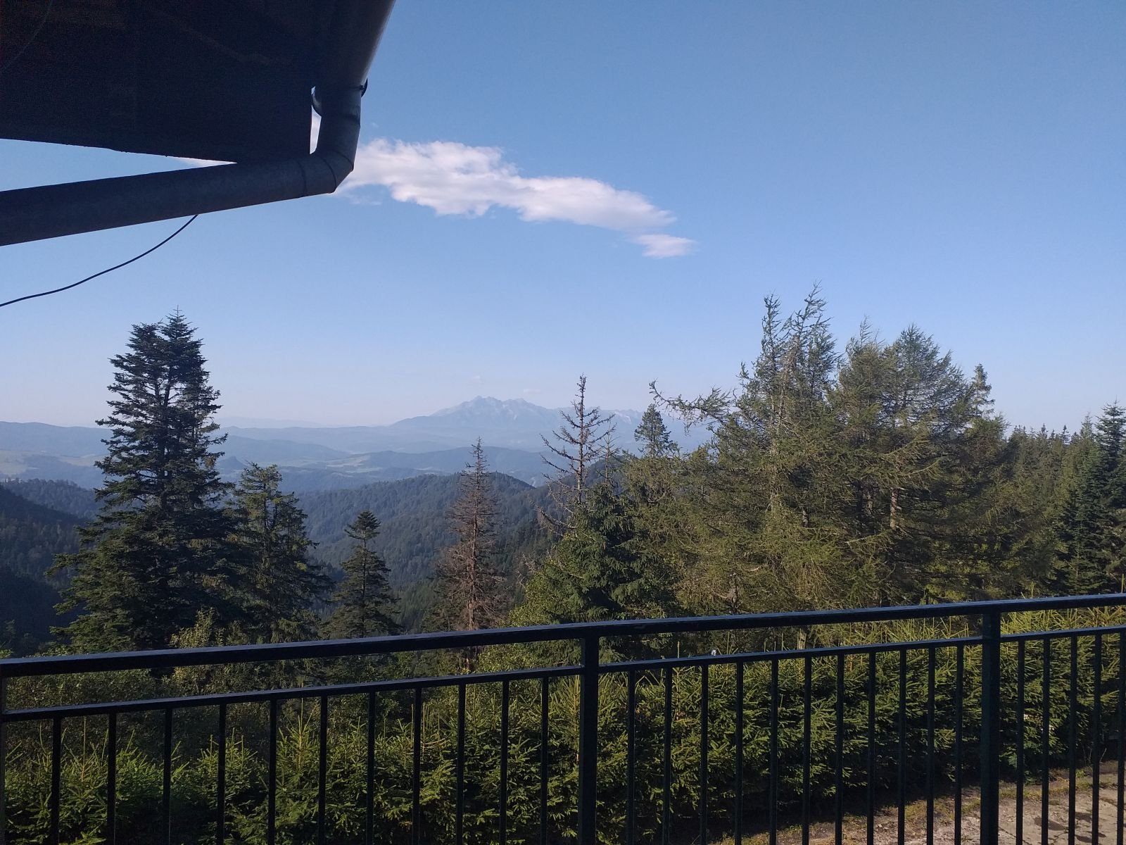 Jesteśmy na Przehybie o godzinie 8:30, czyli po 1:30h marszu, szczerze nie wiedzieliśmy, że schronisko jest otwarte od godziny 9:00. Jest sporo osób, widok na Tatry niesamowity - dobra przejrzystość powietrza. Ogólnie podejście z Gabonia bardzo łatwe, są miejsca gdzie można na przygotowanych ławeczkach odpocząć, i uwaga brak zasięgu praktycznie do samej PRZEHYBY.