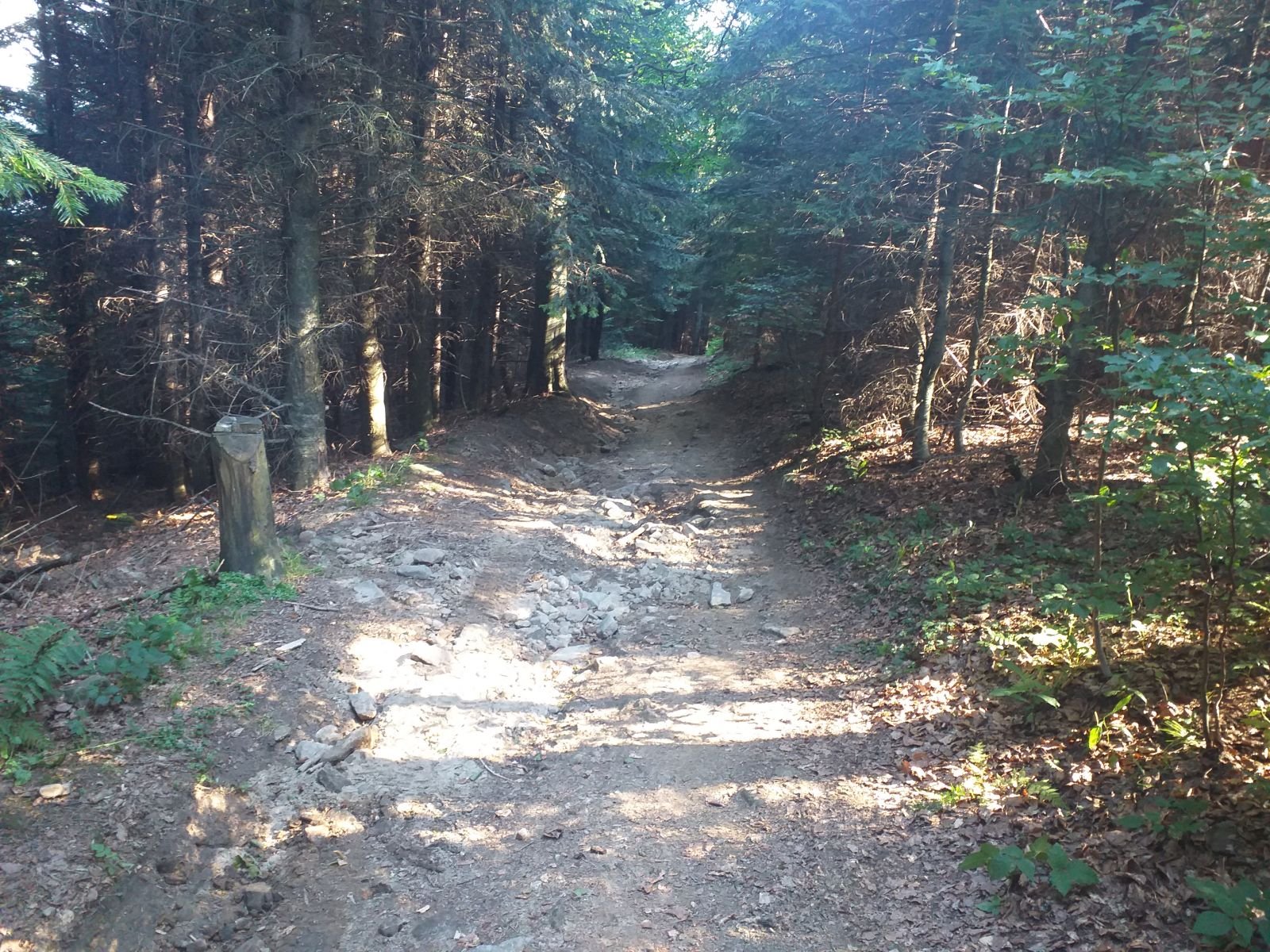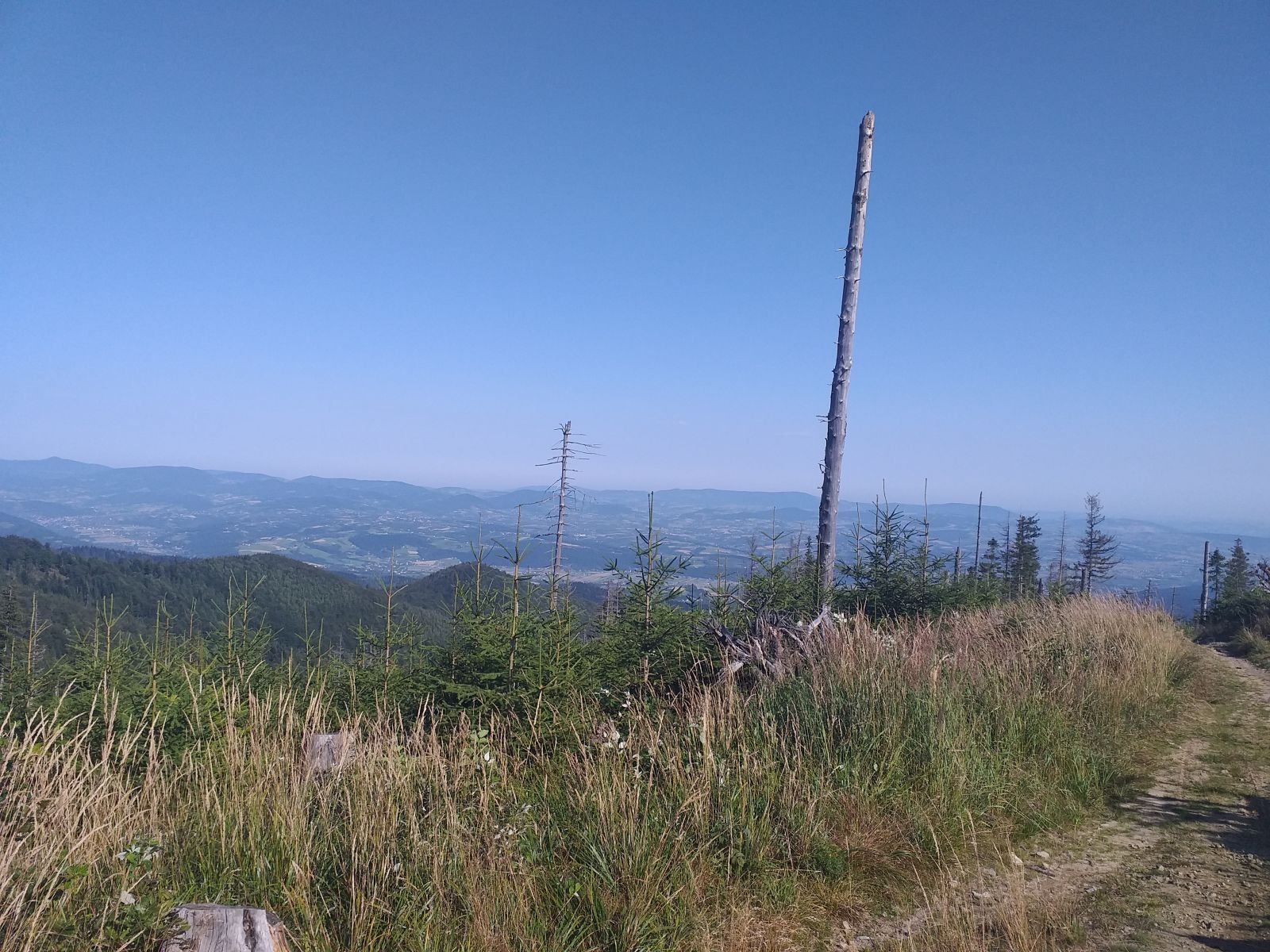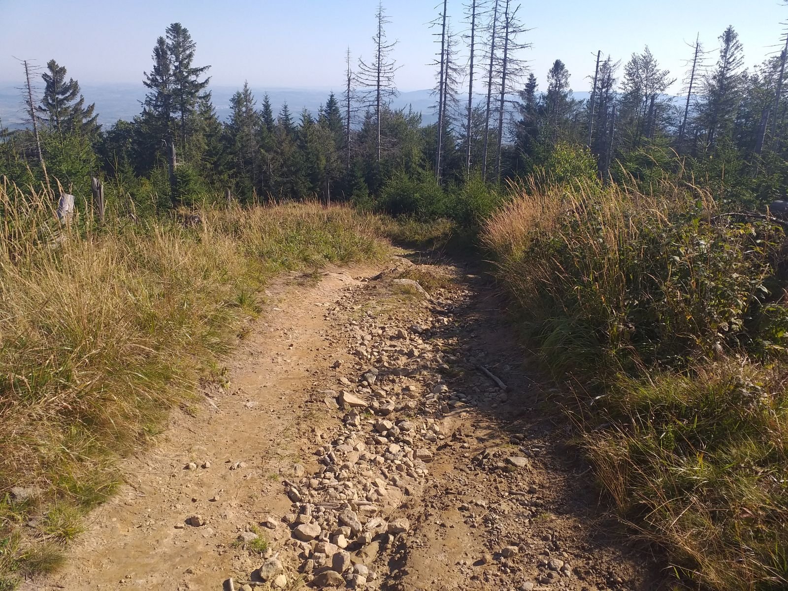 2. Pieszo: Droga z Gabonie na Przehybę jest najłatwiejszym wyborem dotarcia na szczyt, praktycznie do samego końca idziemy drogą asfaltową - czyli dla turystów amatorów strzał w dzesiątkę. Asfaltowa droga nie jest szlakiem turystycznym, nie znajdziemy tutaj żadnego oznakowania tak jak to ma miejsce na typowym szlaku. Przy parkingu znajduję się szlaban dalej autem już nie pojedziemy, no chyba, że lubimy kolekcjonować mandaty. Przy szlabanie znajduje się pomnik Jana Bielak długoletniego gospodarza schroniska, który w 1994 roku zginął tragicznie zjeżdżając skuterem nie zauważył że szlaban jest opuszczony. W początkowej fazie droga jest łagodna , raz po prawej , raz po lewej stronie płynie potok Jaworzynka. Po drodze liczne tablice informacyjne, możemy poznać m.im. fazy rozwoju drzewostanu:) W pewnym momencie ukazuję nam się nadajnik na Przehybie, tuż przy starym wyciągu przy Dolinie Jaworzynki (poniższe zdjęcie)
