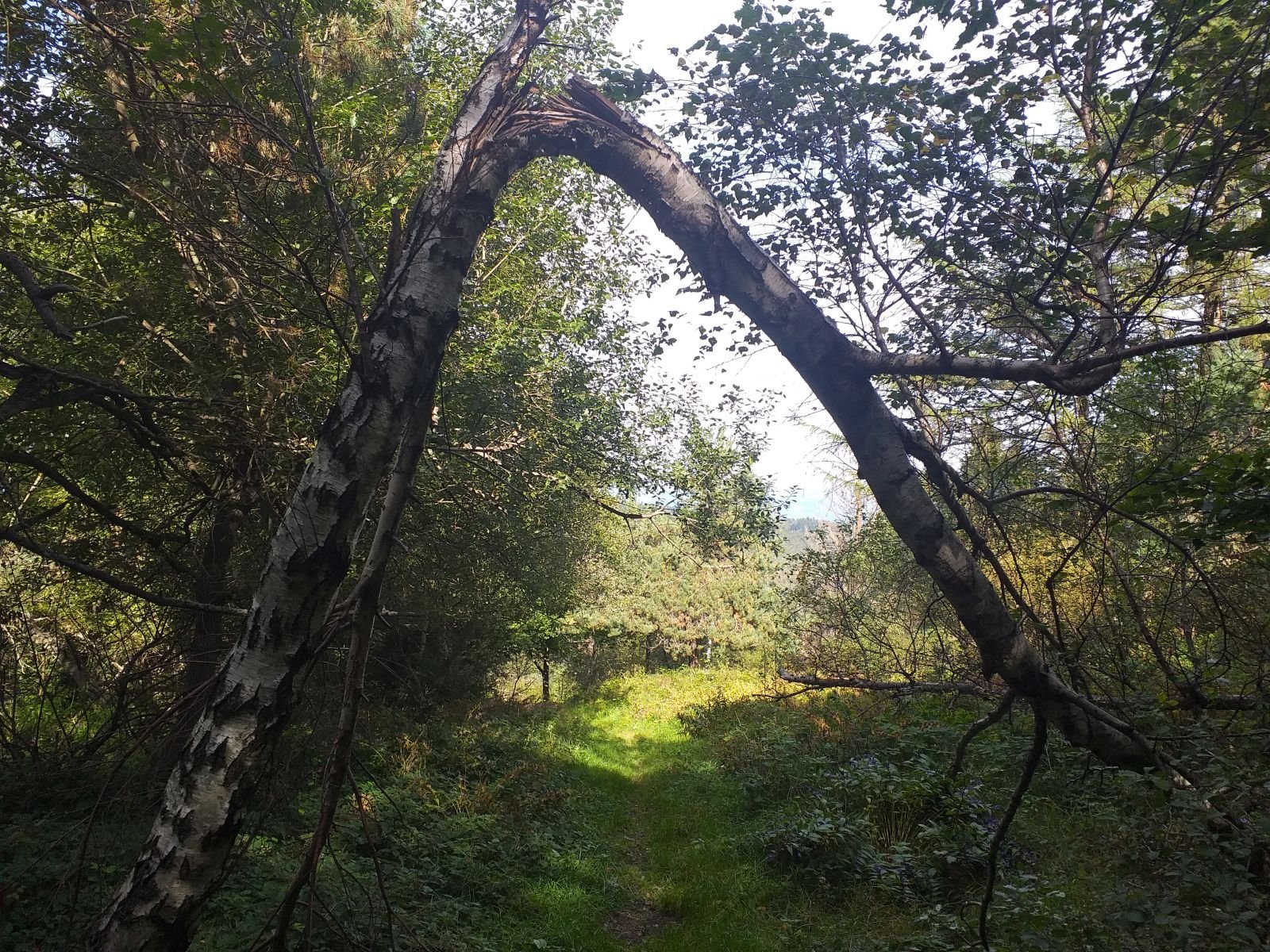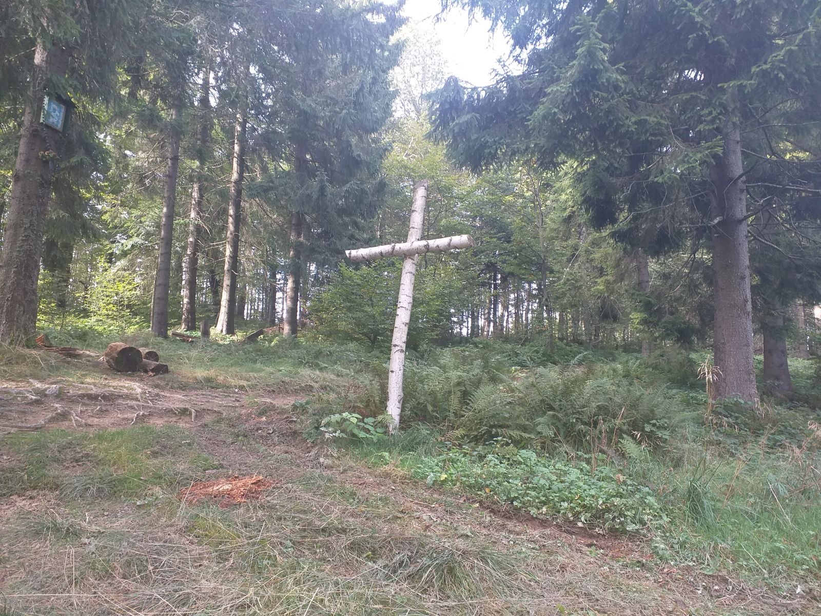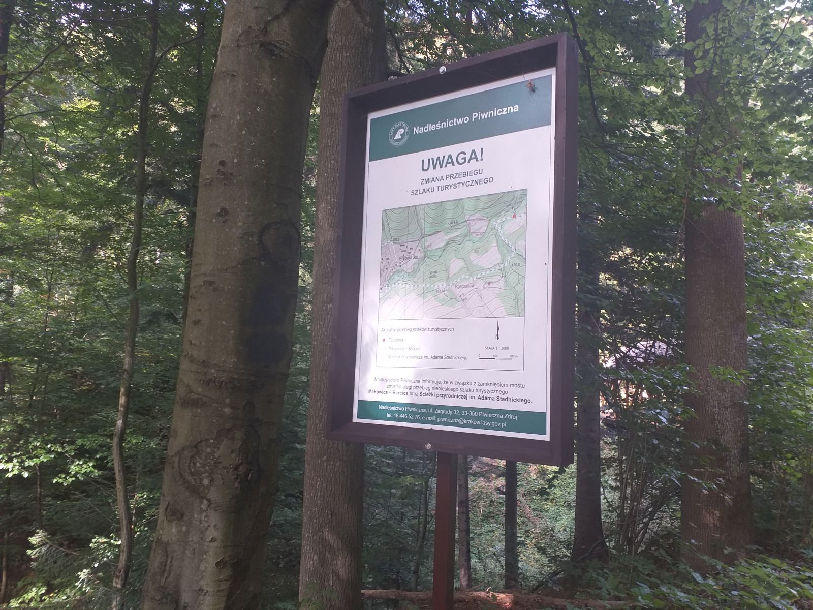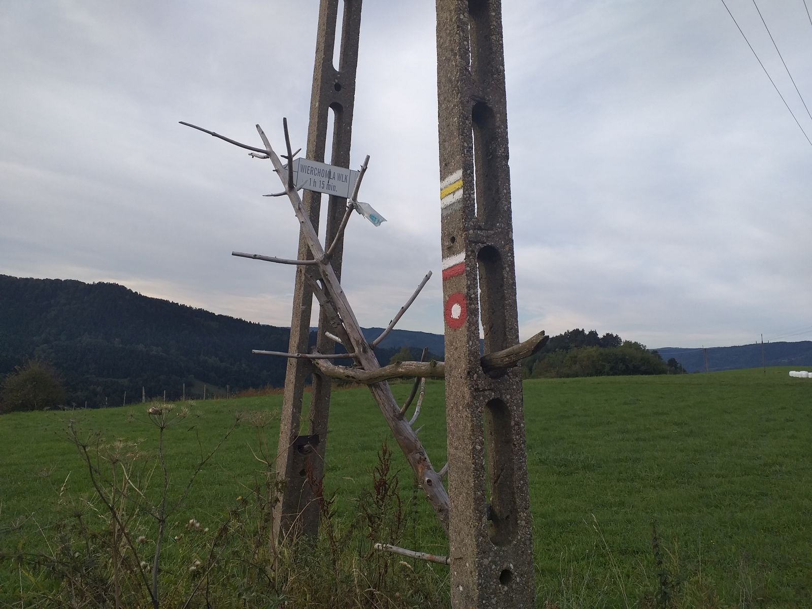 Po drodze sporo grzybiarzy, akurat w tym czasie był ich wysyp - my raczej na tym się nie skupialiśmy. Przed nami tabliczka, z bardzo ciekawym napisem LEPIEJ IDŻ TAM - i oczywiście pierwsze co ronimy, to idziemy na wprost popatrzeć czy coś nietypowego tam znajdziemy - no nic, powróciliśmy na szlak.