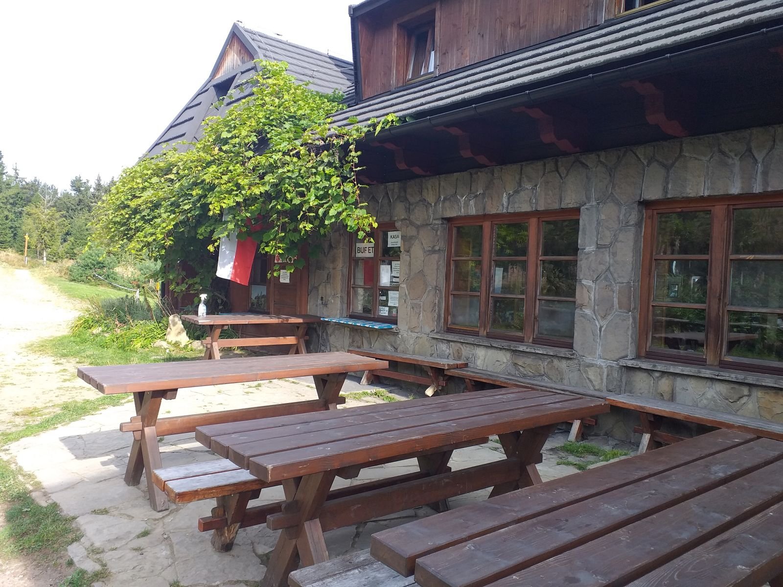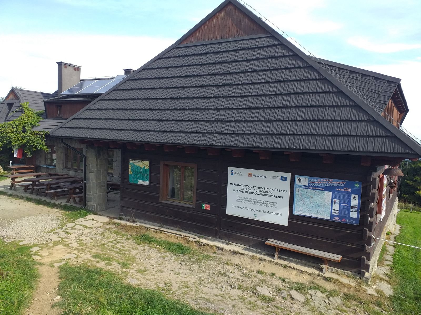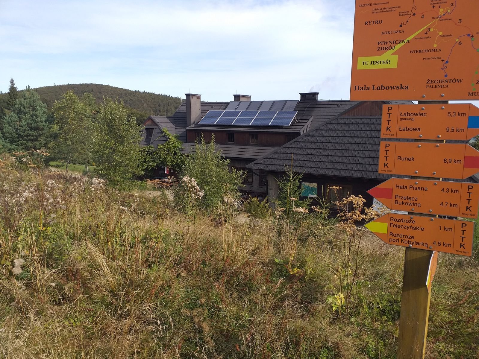 Bardzo ciekawe i efektowne wejście na Hale Łabowską. W Oddali widzimy dym... okazuje się, że jest to ognisko już od samego rana pełno turystów. Schronisko na Hali Łabowskiej zrobiło na nas bardzo pozytywne wrażenie. Jest co poczytać, jest co pooglądać, w środku miło i przyjemnie. Jest też bardzo bogate menu. Ciekawostką jest fakt, że schronisko zasilane jest agregatem. W tym miejscu pozdrawiamy osoby, które zapraszały nas na ognisko:)