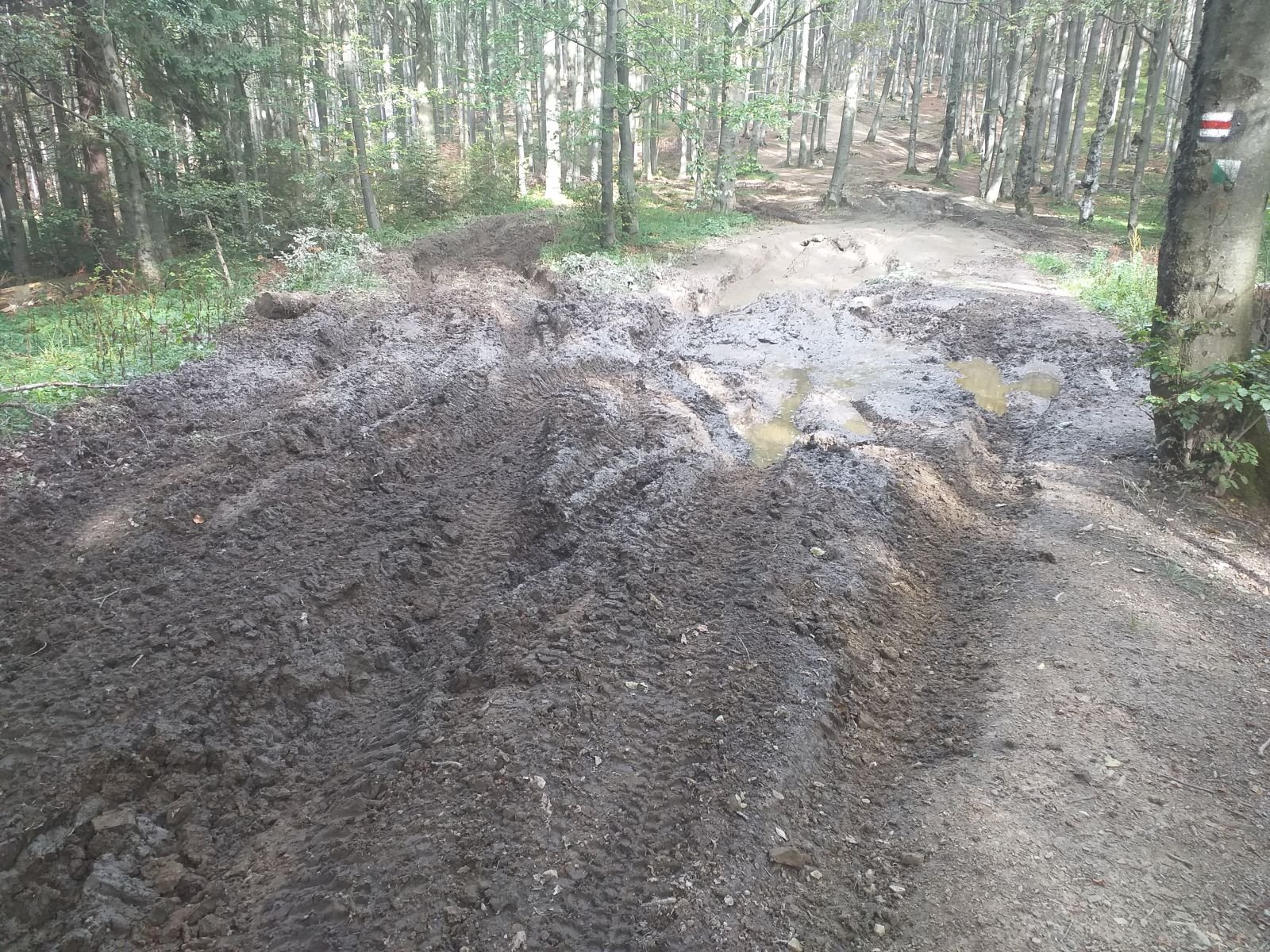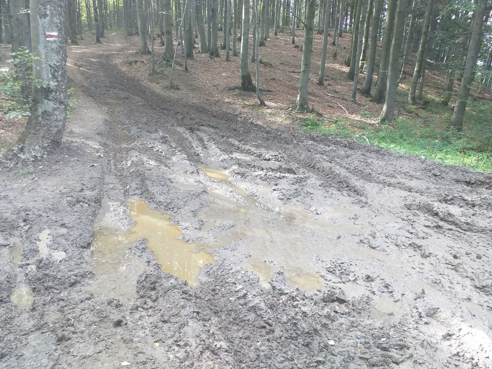 Niestety od Hali Łabowskiej do pewnego momentu szlak praktycznie nie istnieje. Jest tak rozjeżdżony pewnie przez quady, że chodzi się dzikimi ścieżkami po lesie.