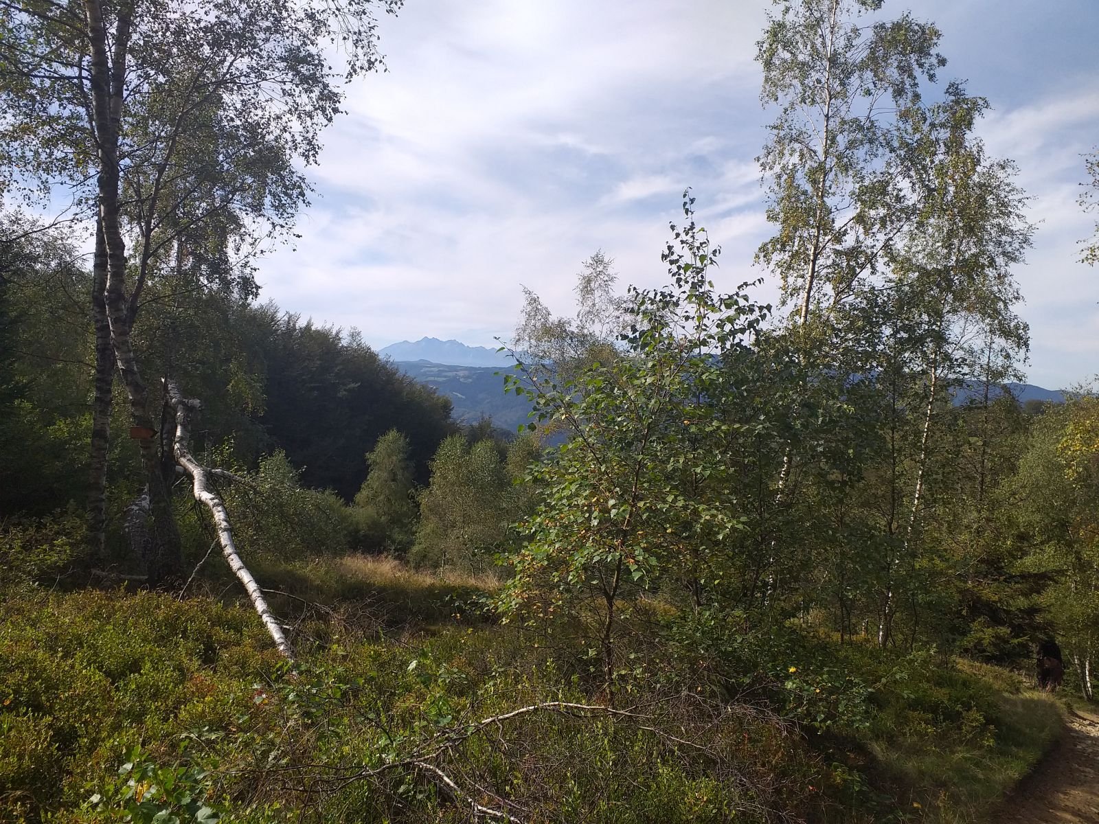 Jedno z niewielu miejsc z których na tym szlaku widać Tatry.