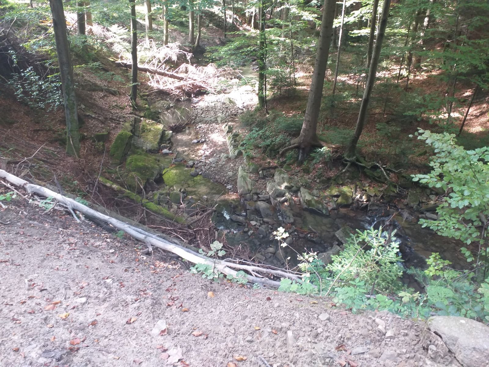 Bardzo ciekawe zejście w kierunku Woli Kroguleckiej, podłoże drewniane po prawej stronie Głęboki Jar.