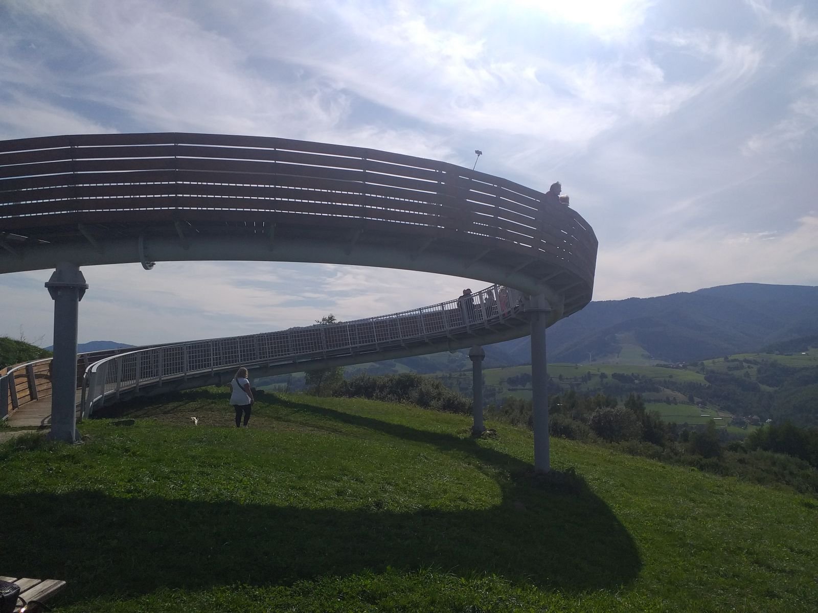Zawsze w niedzielę, gdy jest ładna pogoda turystów odwiedzających platformę widokową w Woli Kroguleckiej jest znacznie więcej niż suma tutejszych mieszkańców. Na platformie umieszczono tabliczki z rozrysowanymi, widocznymi szczytami poszczególnych pasm Od platformy idziemy w kierunku centrum wsi jakieś 100 metrów drogą asfaltową i kończymy wycieczkę przy zatłoczonym parkingu i tam też natrafiamy na niebieski szlak, którym pierwotnie mieliśmy iść, jakby nie zmiana trasy o której wspominaliśmy. Wycieczka z Łomnicy do Woli Kroguleckiej to około 27 kilometrów - licząc wszystkie obejścia które zrobiliśmy. Czas przejścia znacznie szybszy niż wskazuje to kalkulator szlaków ( ponad 8 godzin) nam udało się to pokonać w 5 godzin 40 minut. Według nas trasa na pewno nie na pierwszy raz, ale należy do dość łatwych. Poniżej pełna galeria zdjęć.