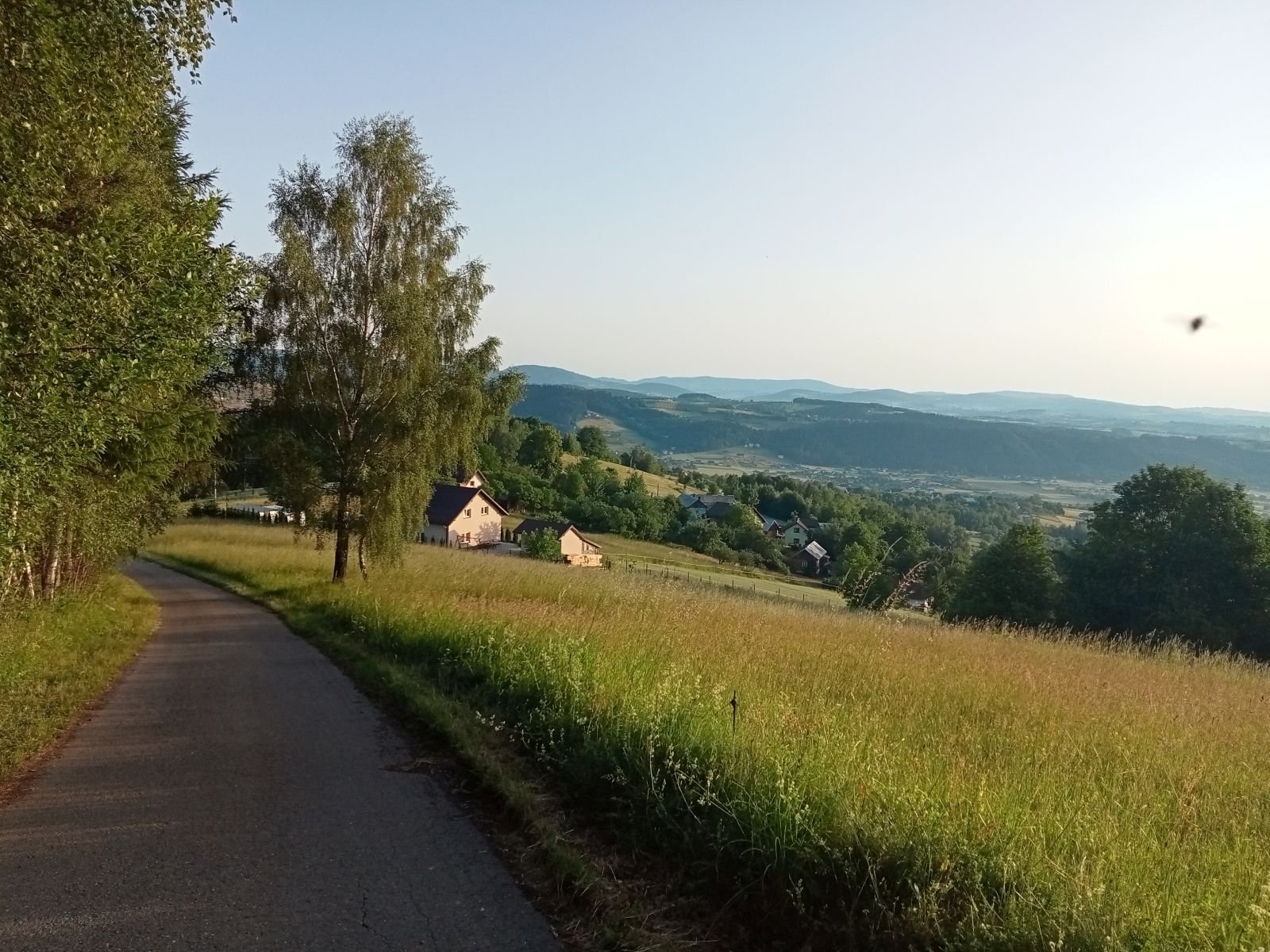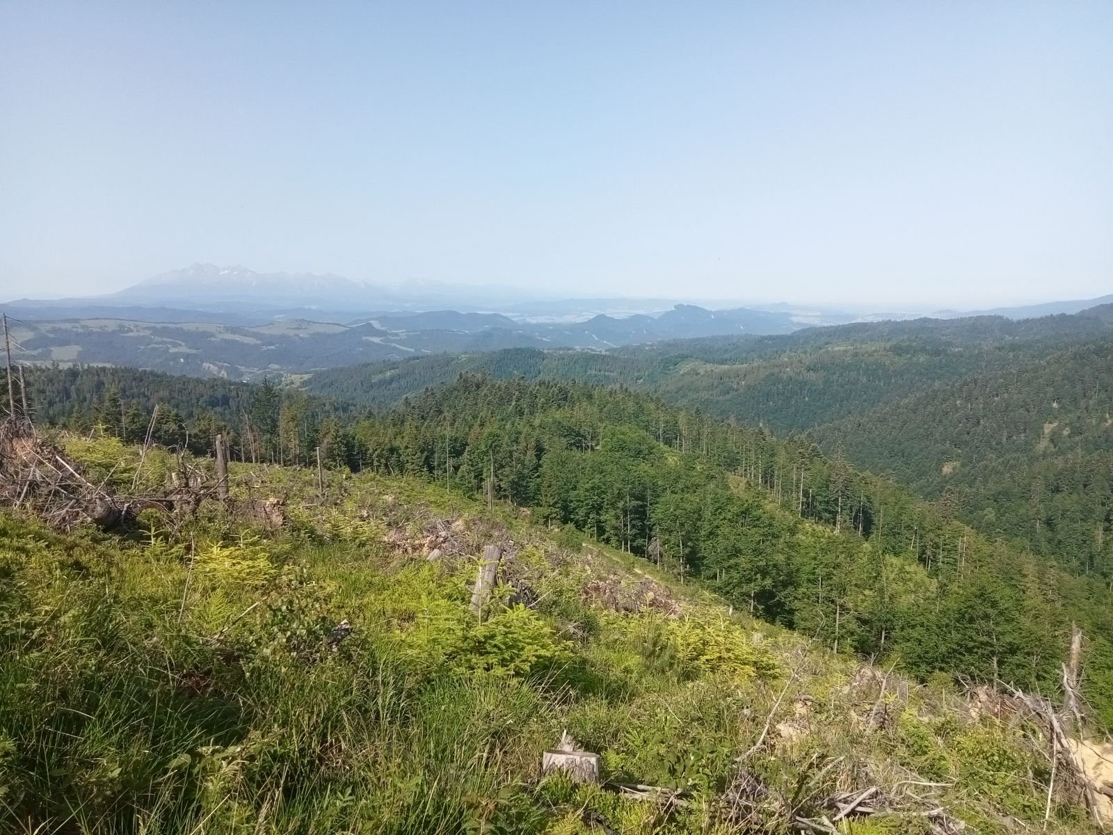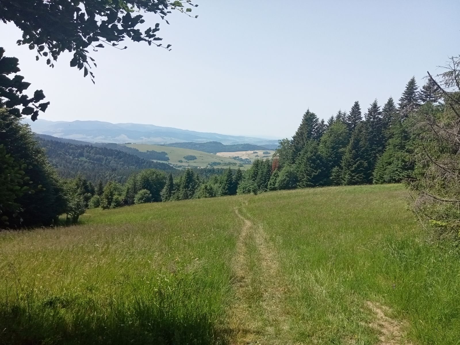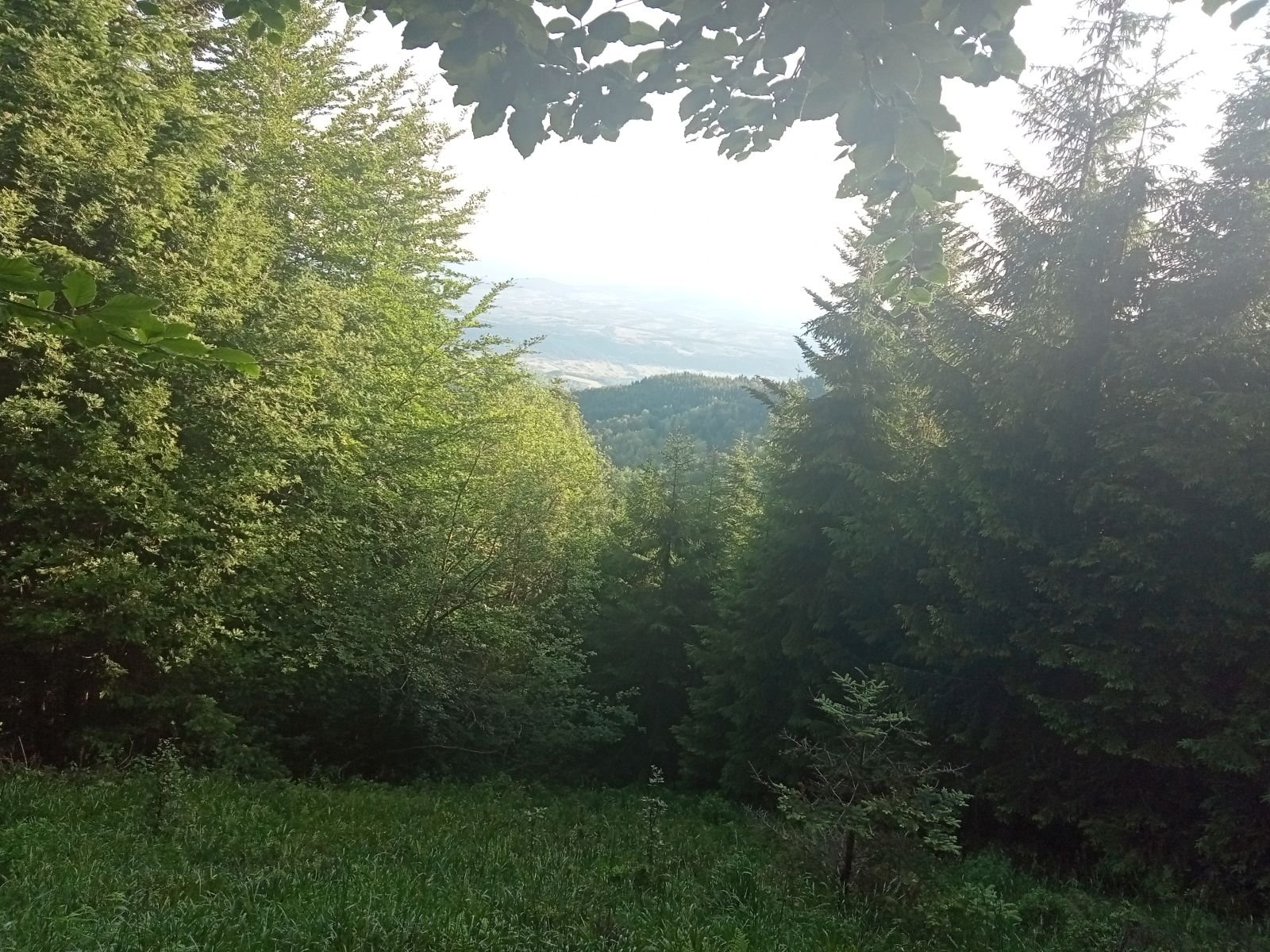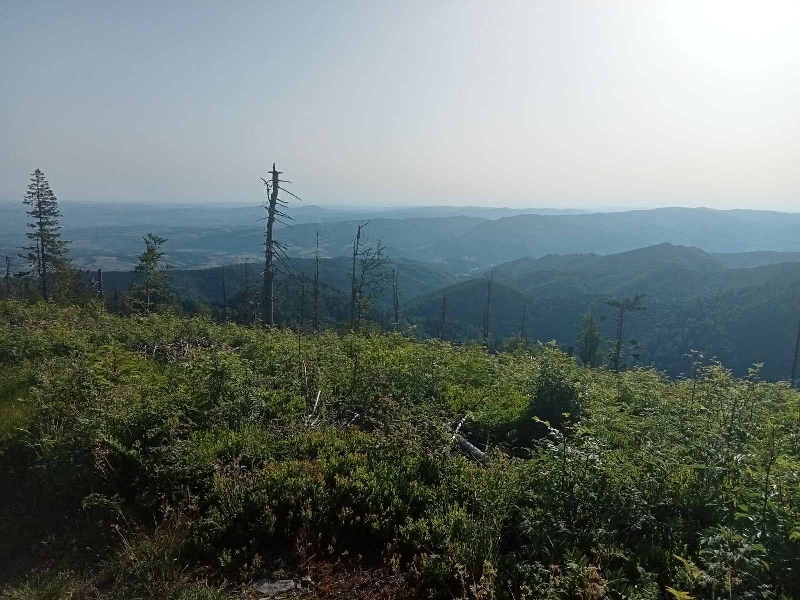 Jedyne miejsce z którego widać nasze strony, nie licząc Bobowej Polany. Jeszcze kilka lat i to też zarośnie. Na odcinku Łazy - Przehyba nie spotkałem ani jednej żywej duszy. Zielona trasa niedoceniana a naprawdę bardzo przyjemna i dość wymagająca.