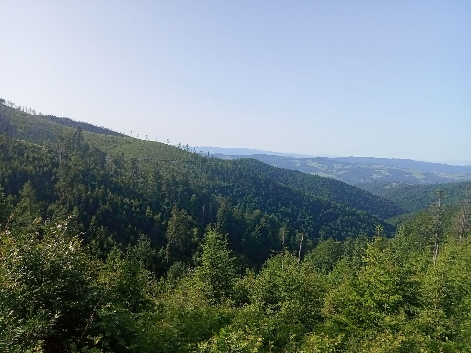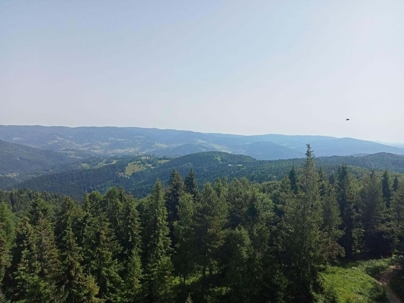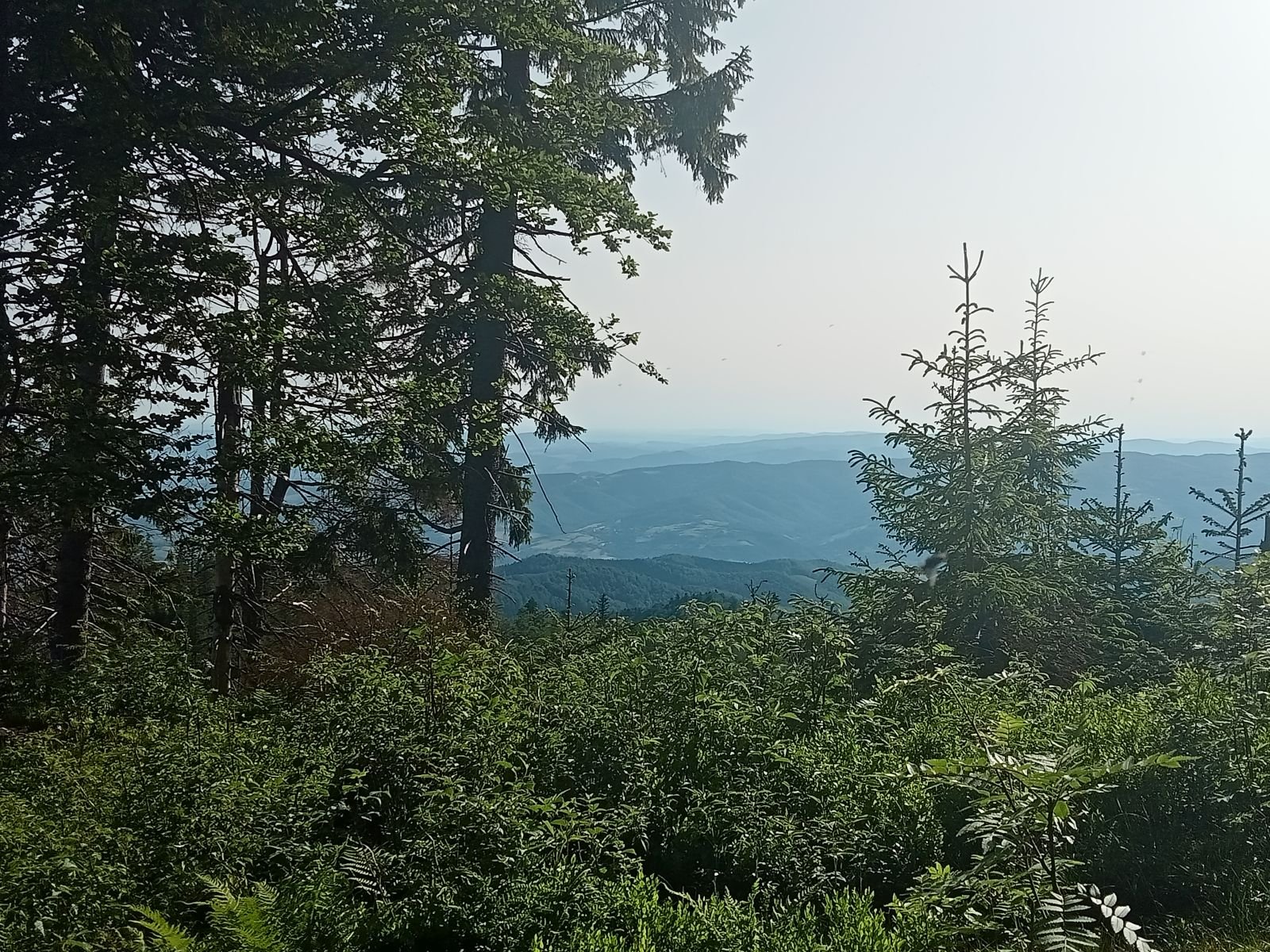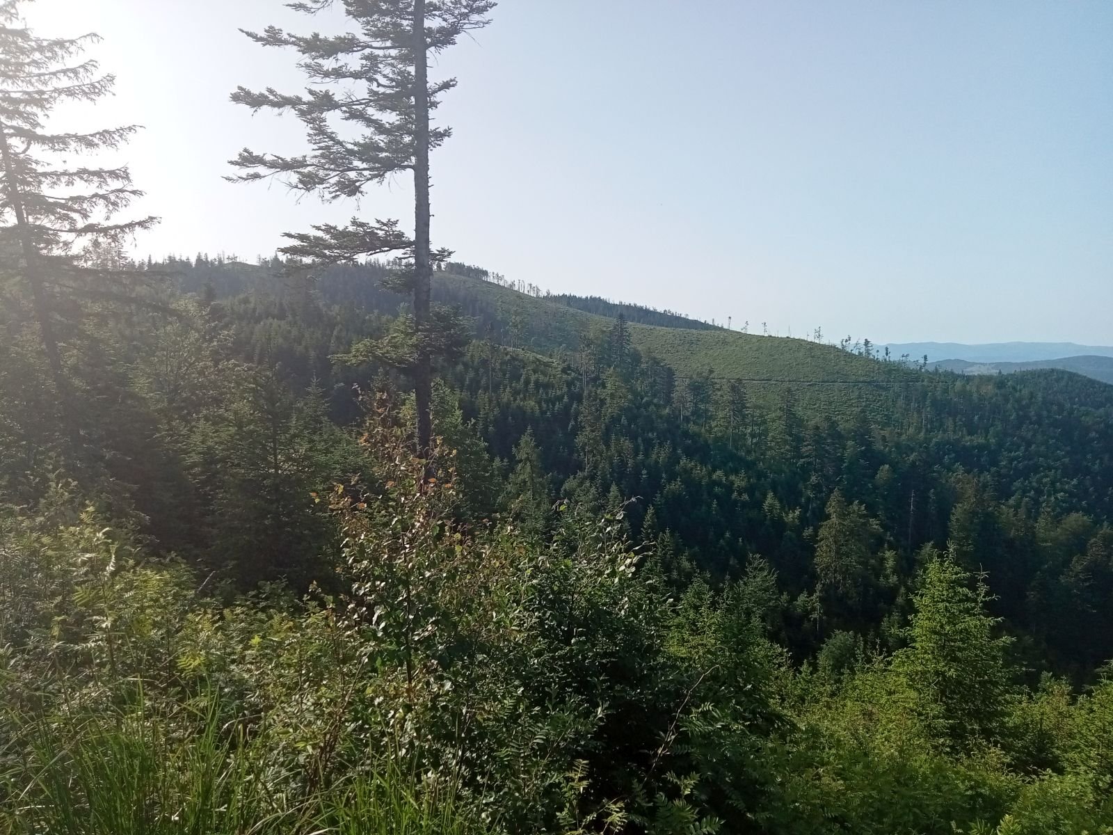 Jedyne miejsce z którego widać nasze strony, nie licząc Bobowej Polany. Jeszcze kilka lat i to też zarośnie. Na odcinku Łazy - Przehyba nie spotkałem ani jednej żywej duszy. Zielona trasa niedoceniana a naprawdę bardzo przyjemna i dość wymagająca.