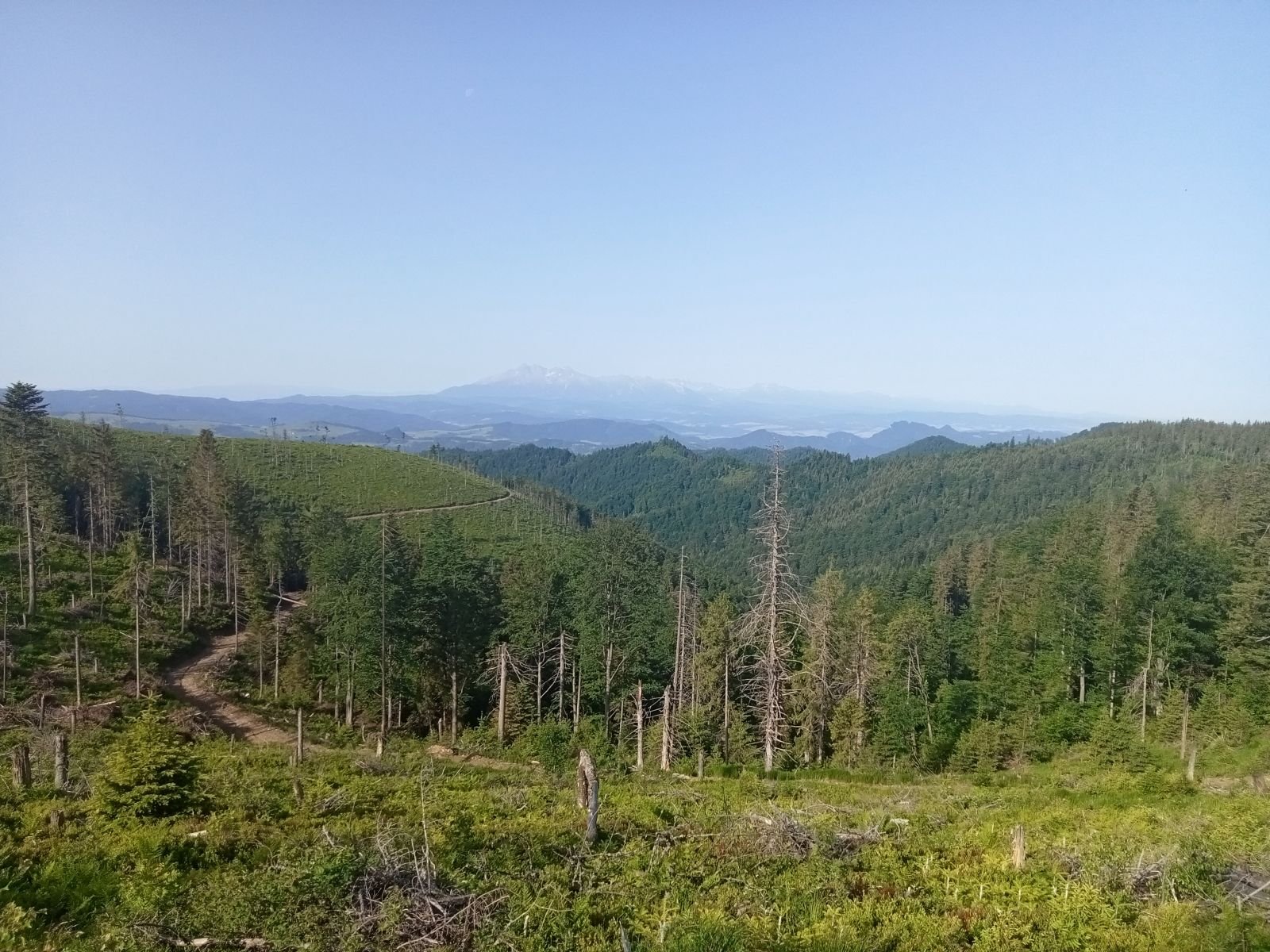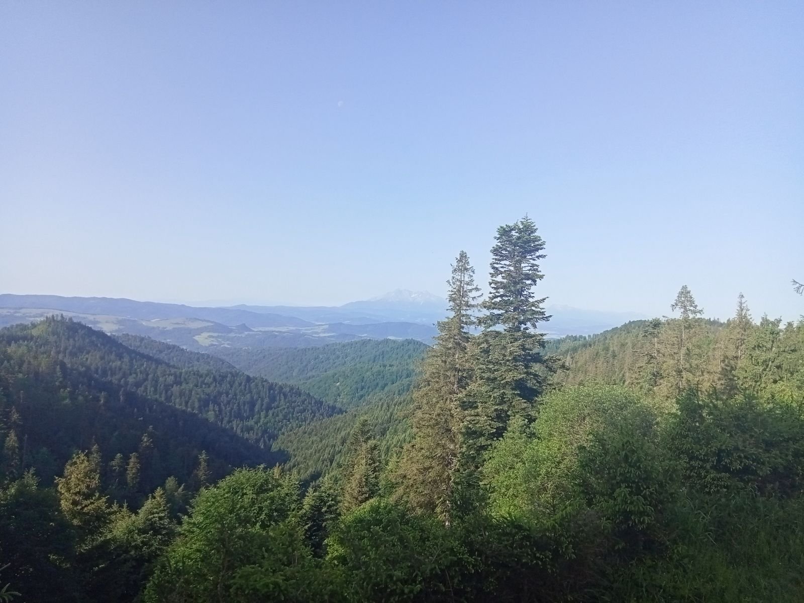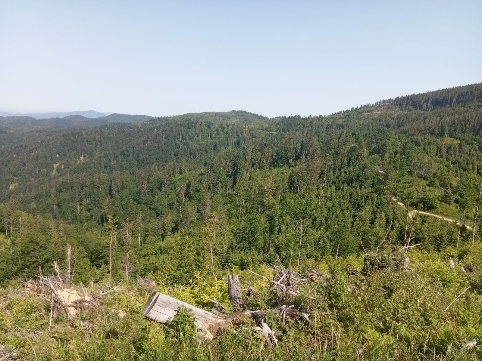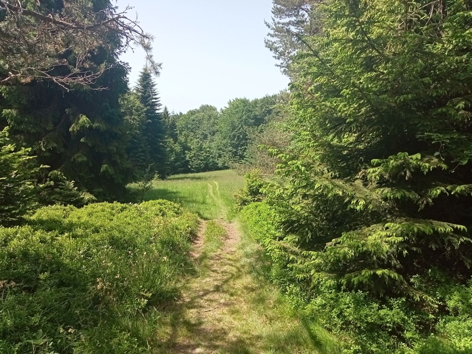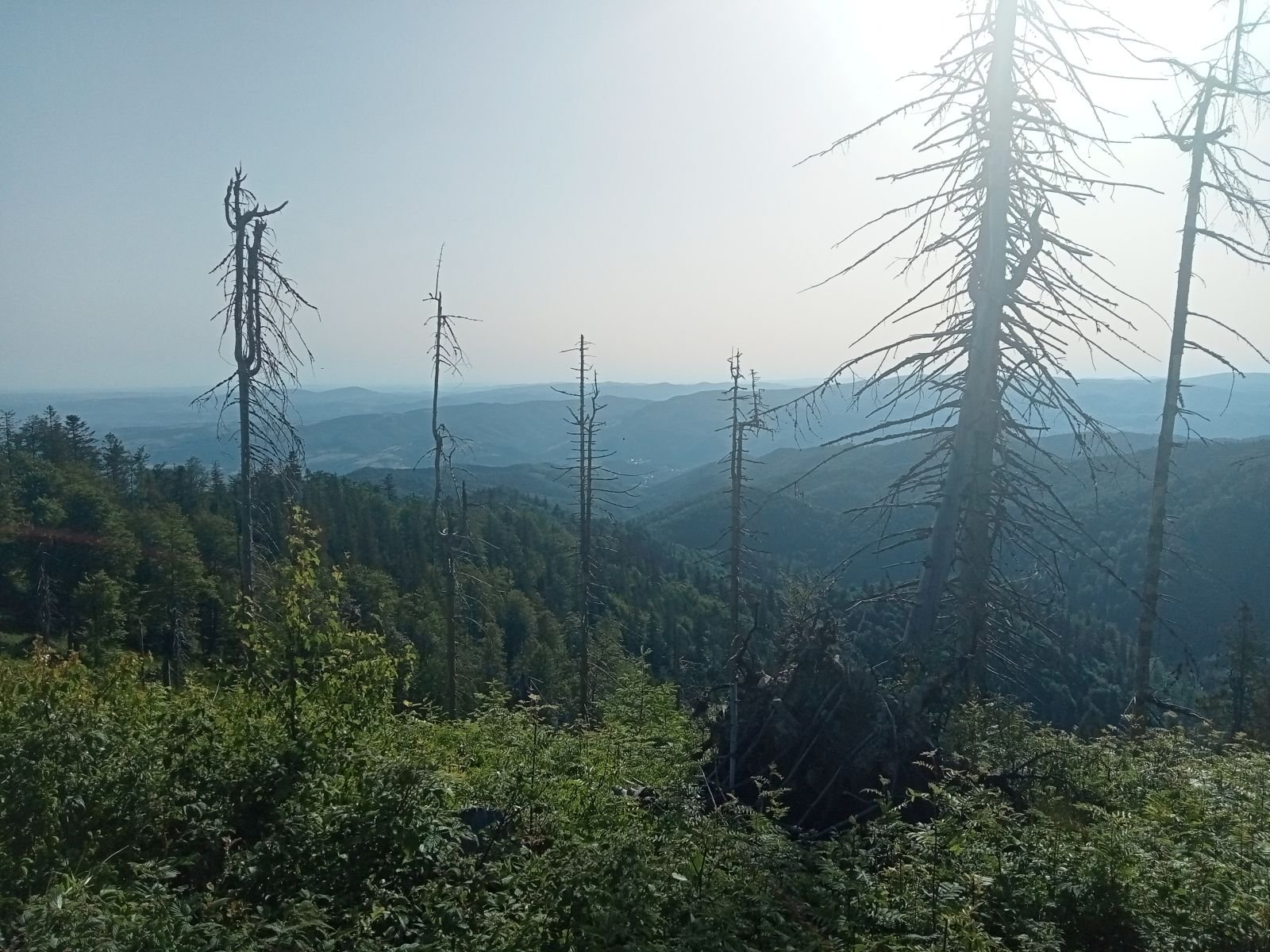 Jedyne miejsce z którego widać nasze strony, nie licząc Bobowej Polany. Jeszcze kilka lat i to też zarośnie. Na odcinku Łazy - Przehyba nie spotkałem ani jednej żywej duszy. Zielona trasa niedoceniana a naprawdę bardzo przyjemna i dość wymagająca.