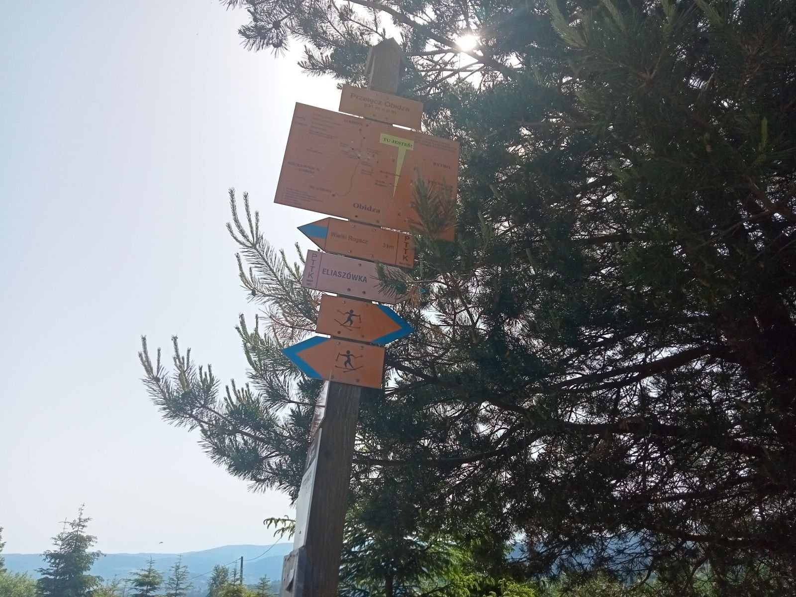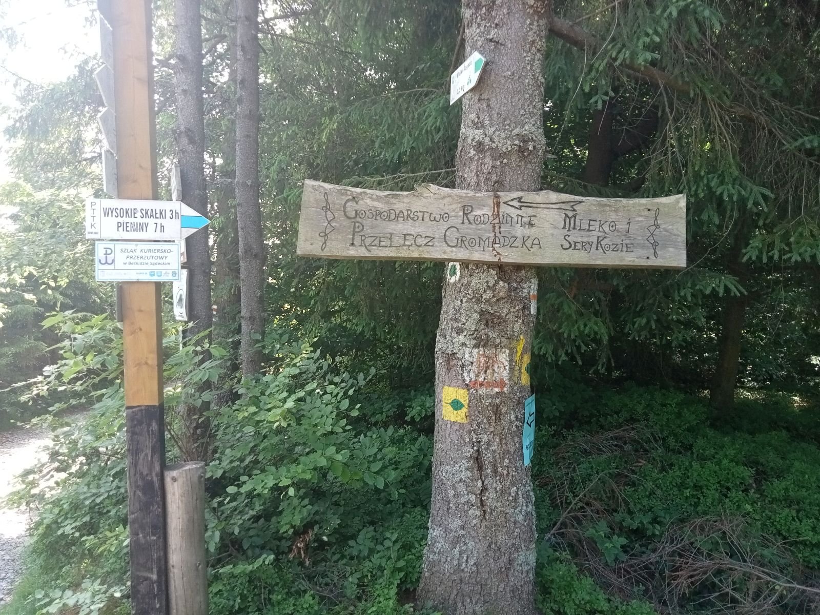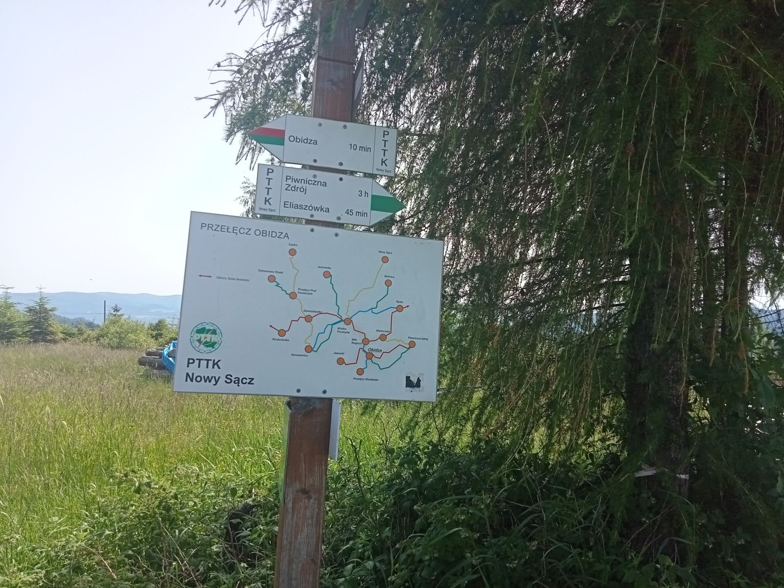 Przełęcz Gromadzka odbijam zielonym szlakiem na Eliaszówkę. Jest gdzie pochodzić z tego miejsca, nieopodal znajduję się Bacówka w Obidzy i chyba najwyżej położony parking w kraju. Jest tłoczno, sporo osób wybiera Pieniny.