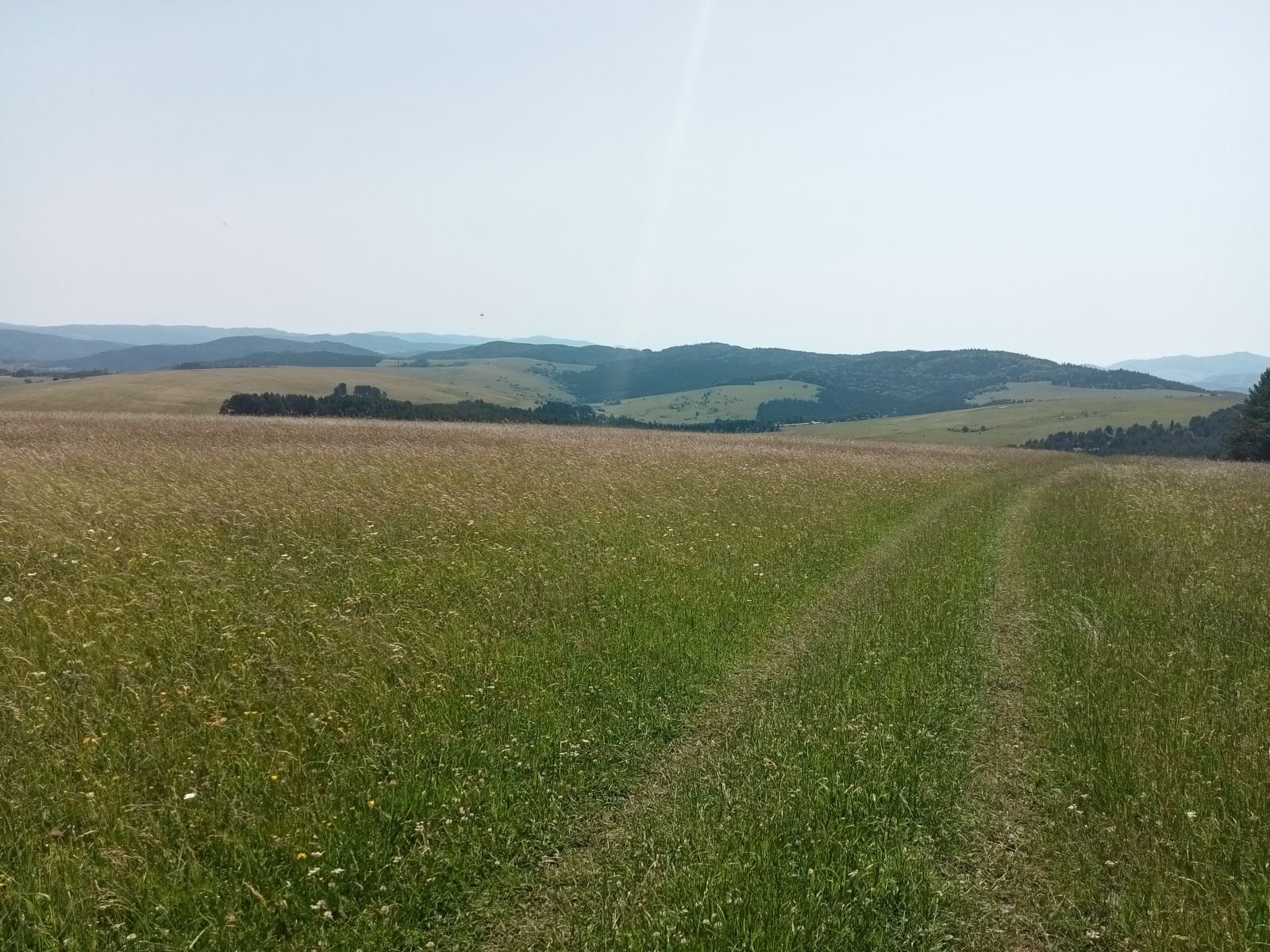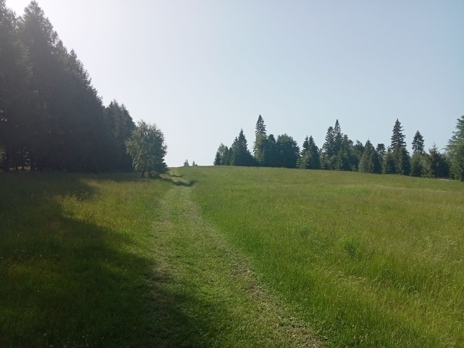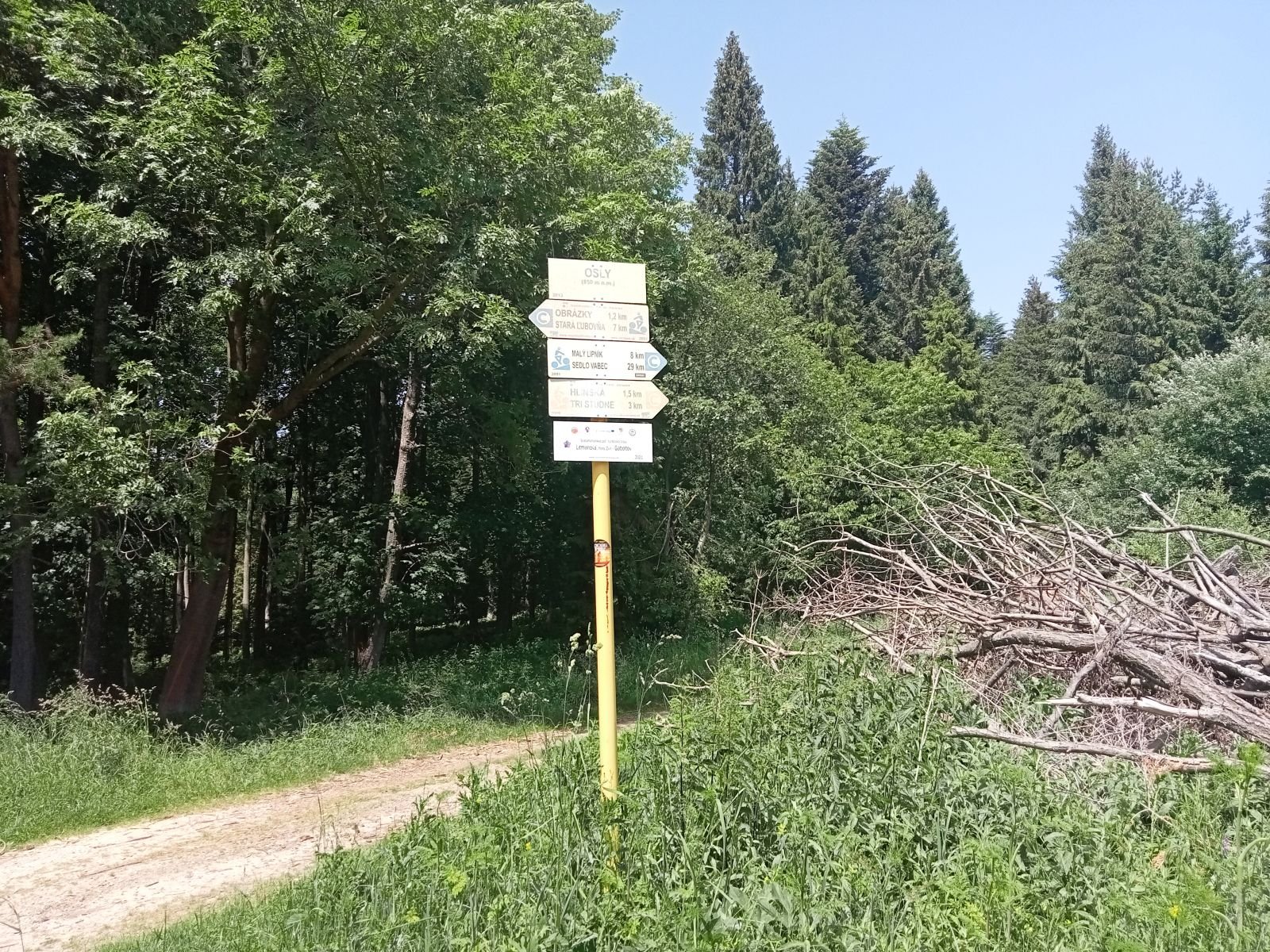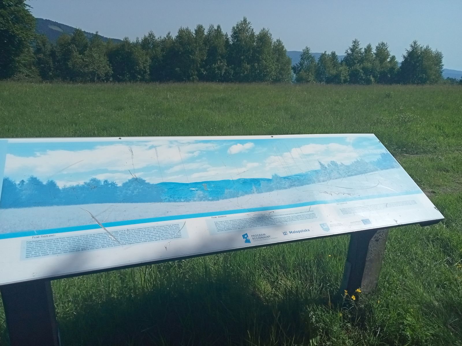 Ośli Wierch - zadbane miejsce, trawa wydeptana czy też skoszona. Tutaj można spotkać sporo więcej osób. Od Eliaszówki do tego miejsca spotkałem około 6 osób, dwie z nich na rowerze. Od tego miejsca musiałem pół kilometra wrócić, by w kierunku Starej Lubowni poruszać się czerwonym edukacyjnym szlakiem. Ponoć Trasa od Oślego Wierchu do Mniszka nad Popradem należy do najbardziej widokowych tras Gór Lubowelskich, kto wie może kiedyś... Wygrzebałem trochę informacji o tym miejscu, w wielu źródłach podobne zapisy.
