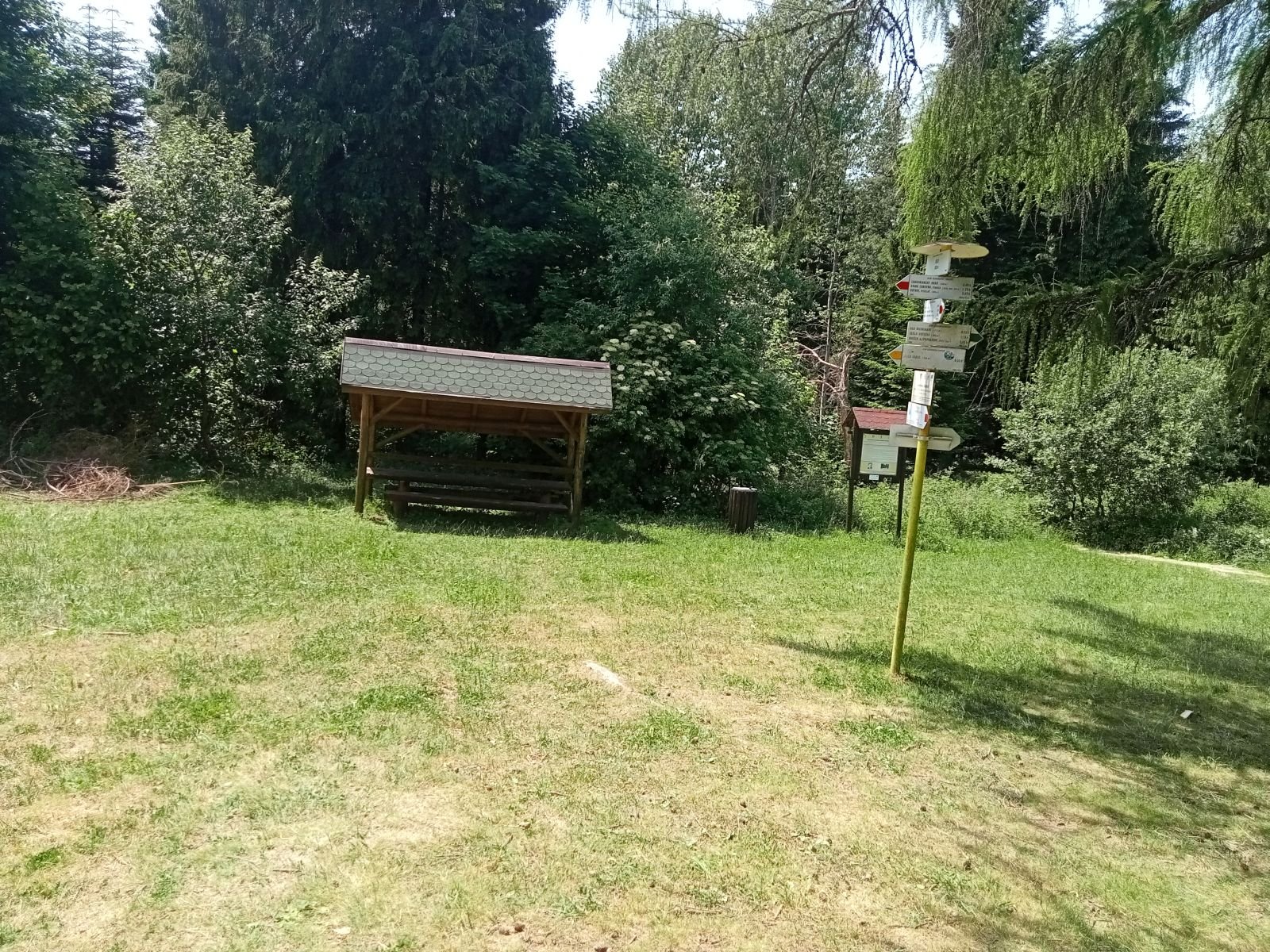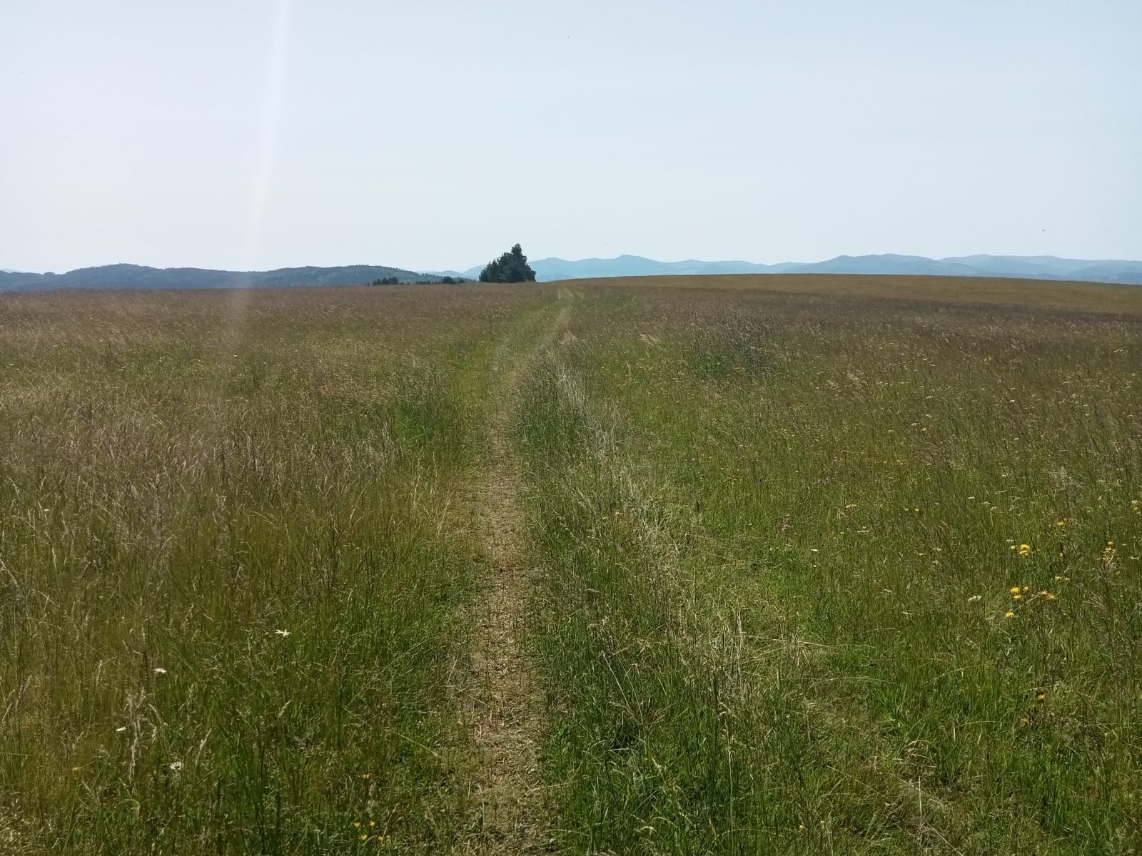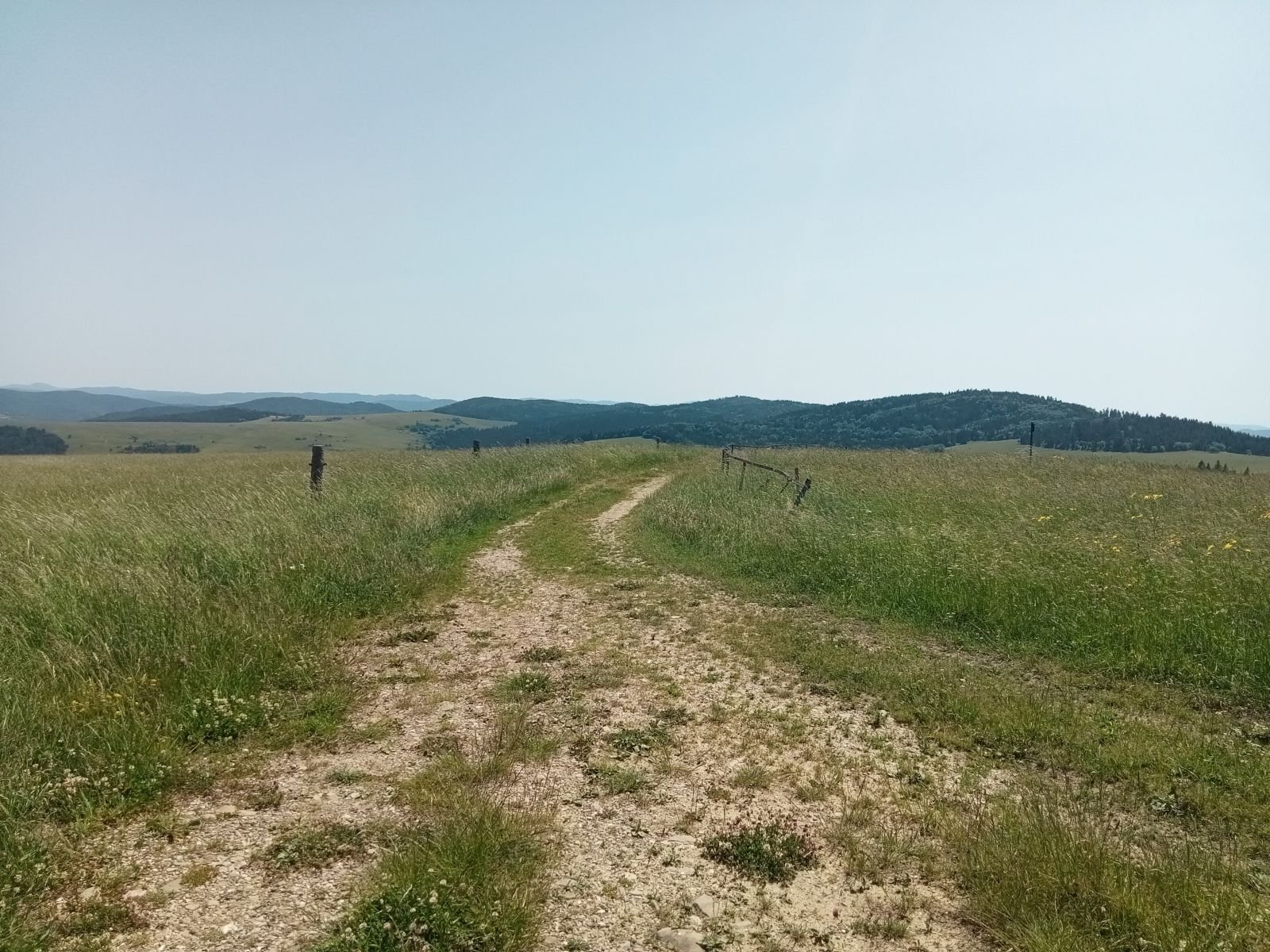 Ośli Wierch - zadbane miejsce, trawa wydeptana czy też skoszona. Tutaj można spotkać sporo więcej osób. Od Eliaszówki do tego miejsca spotkałem około 6 osób, dwie z nich na rowerze. Od tego miejsca musiałem pół kilometra wrócić, by w kierunku Starej Lubowni poruszać się czerwonym edukacyjnym szlakiem. Ponoć Trasa od Oślego Wierchu do Mniszka nad Popradem należy do najbardziej widokowych tras Gór Lubowelskich, kto wie może kiedyś... Wygrzebałem trochę informacji o tym miejscu, w wielu źródłach podobne zapisy.