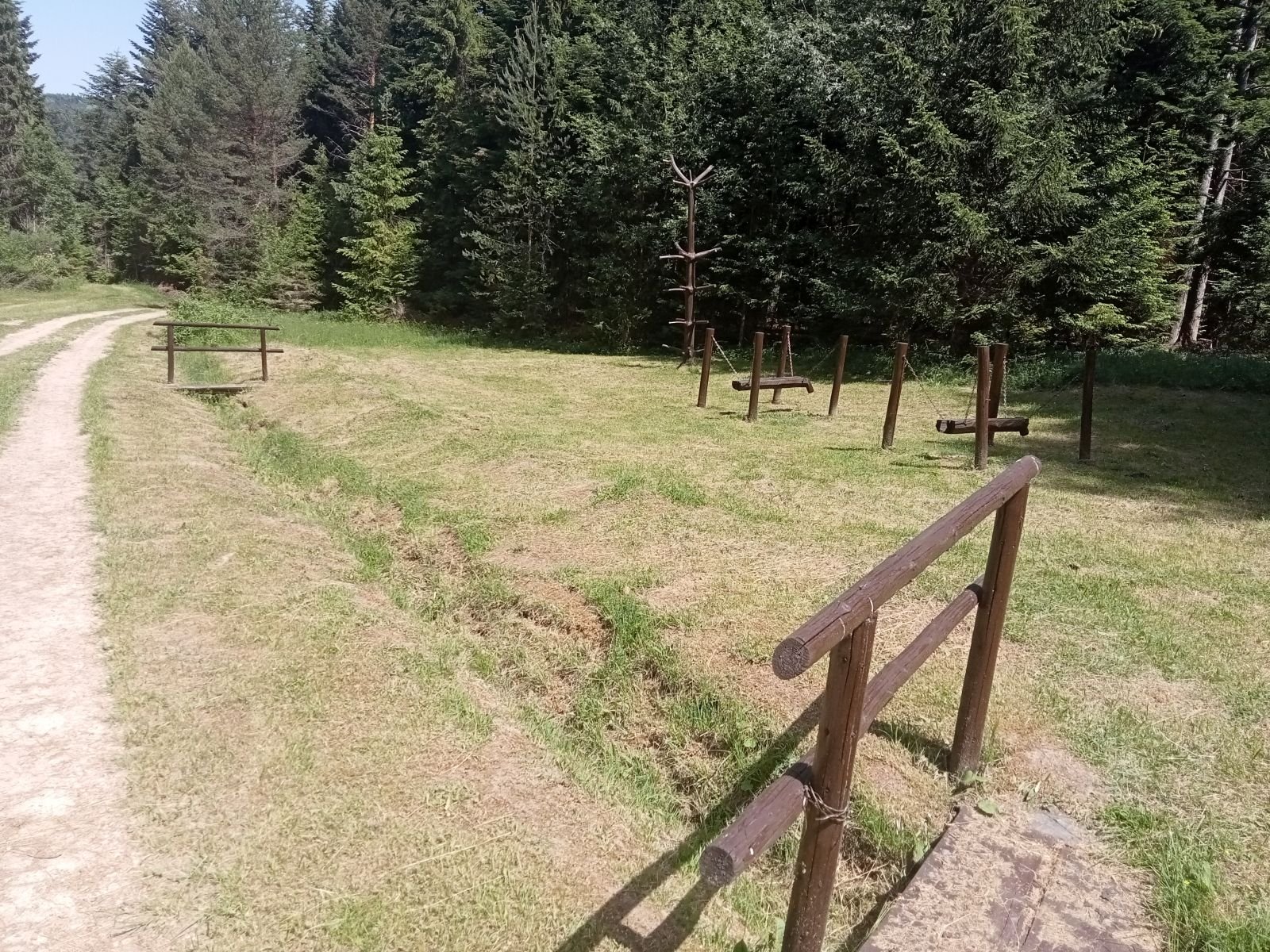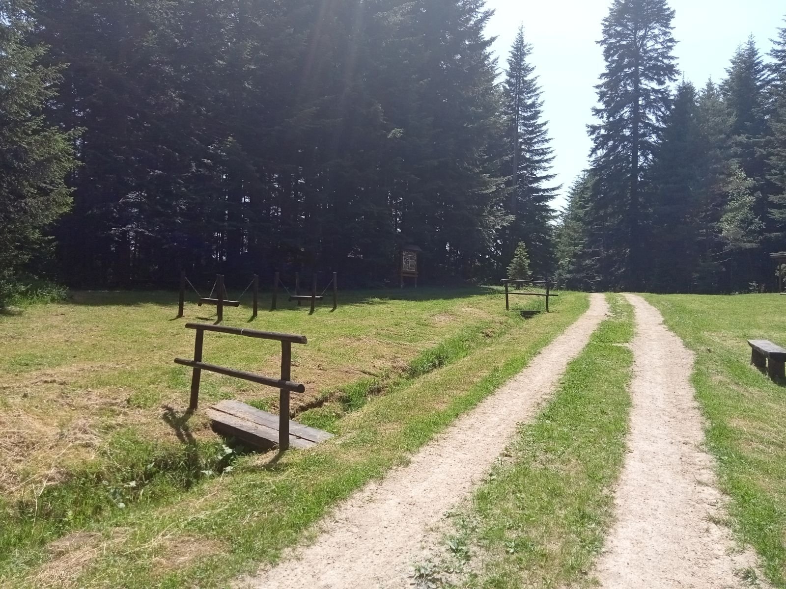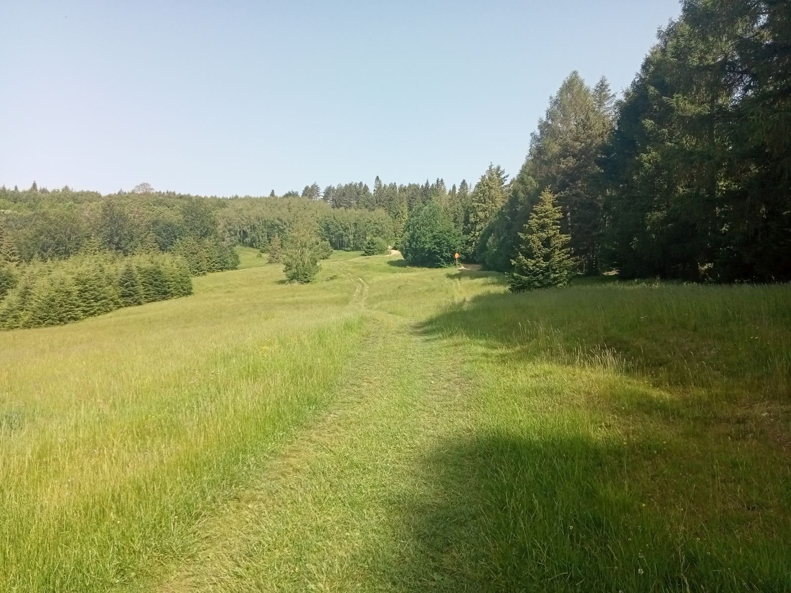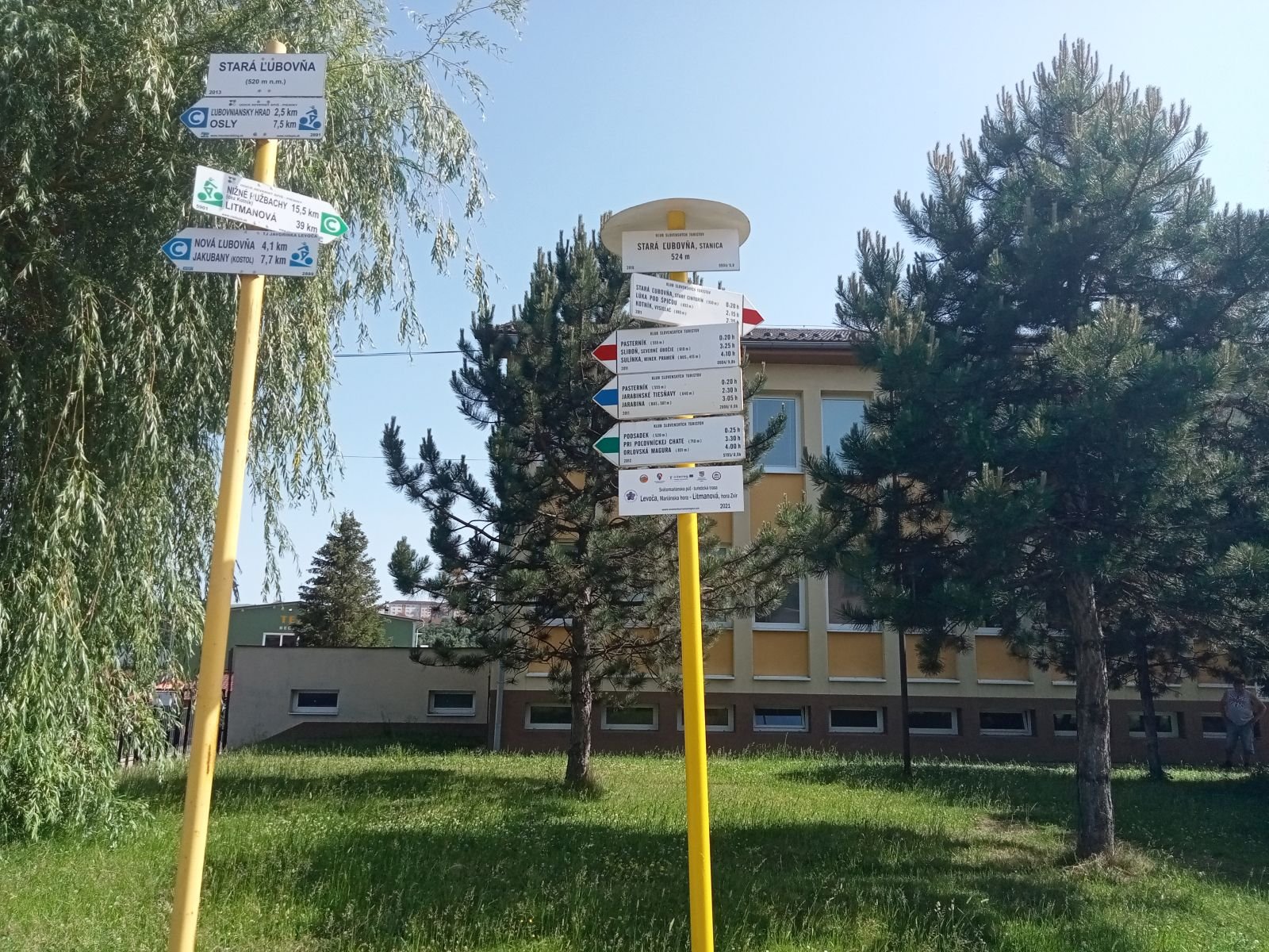 Ośli Wierch - zadbane miejsce, trawa wydeptana czy też skoszona. Tutaj można spotkać sporo więcej osób. Od Eliaszówki do tego miejsca spotkałem około 6 osób, dwie z nich na rowerze. Od tego miejsca musiałem pół kilometra wrócić, by w kierunku Starej Lubowni poruszać się czerwonym edukacyjnym szlakiem. Ponoć Trasa od Oślego Wierchu do Mniszka nad Popradem należy do najbardziej widokowych tras Gór Lubowelskich, kto wie może kiedyś... Wygrzebałem trochę informacji o tym miejscu, w wielu źródłach podobne zapisy.