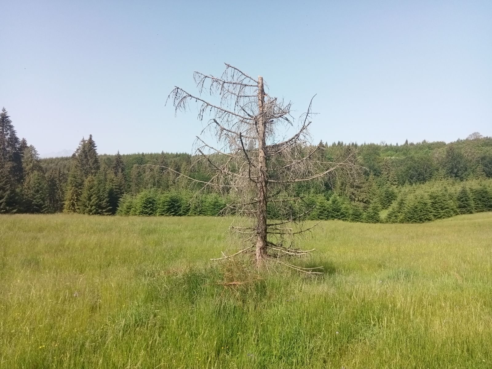 Szeroka polana, w niektórych miejscach widać Tatry, widzę, że są osoby, które po prostu piknikują tu.
