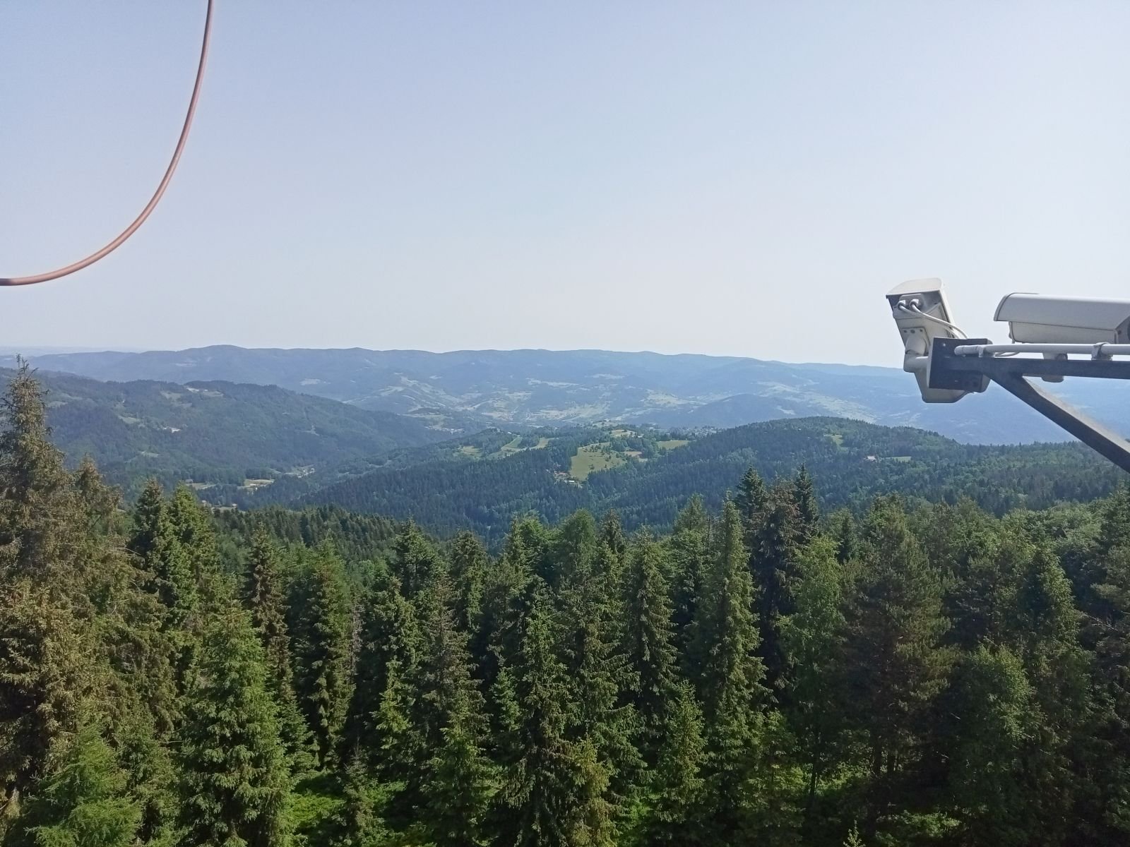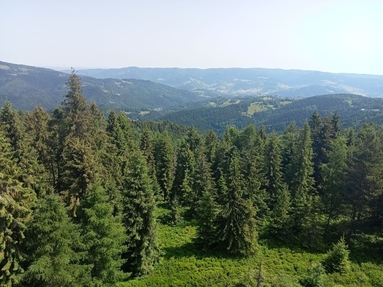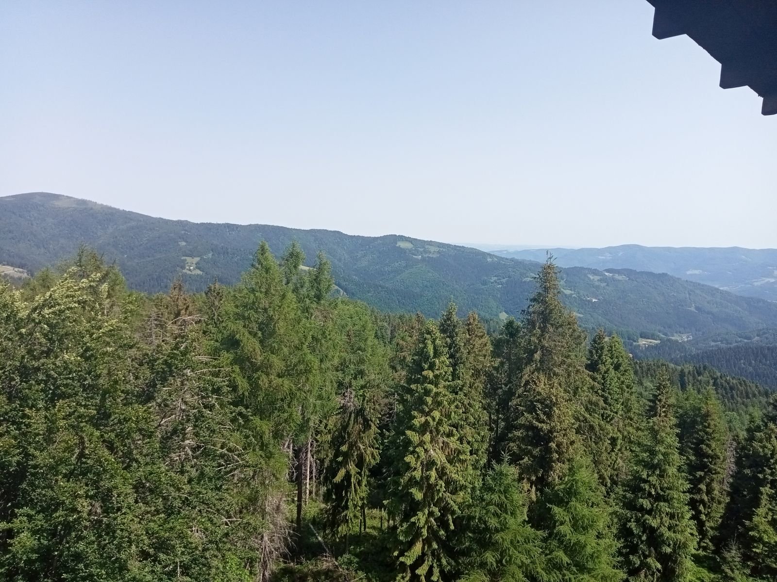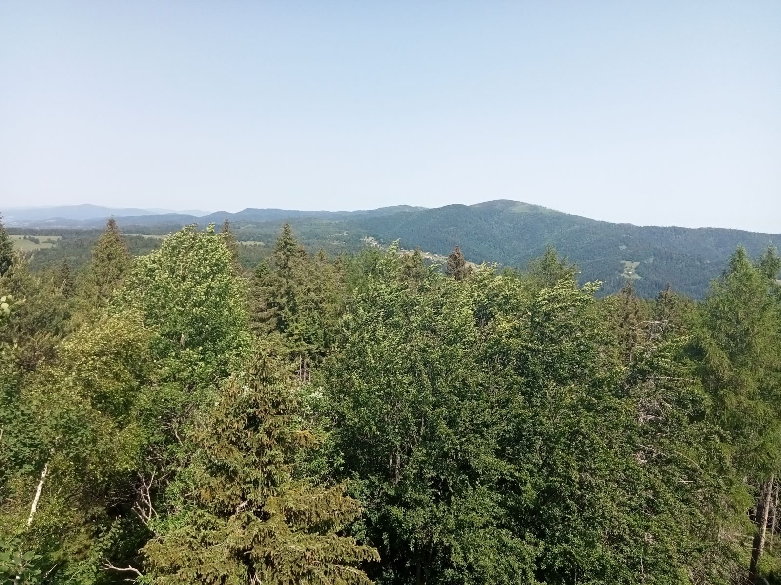 Eliaszówka to najwyższy szczyt Gór Lubowelskich w Beskidzie Sądeckim 1023 m n.p.m. Na szczycie góry możemy wejść na 20 metrową wieże widokową. Wieża z której nie ma efektownych widoków. Na powyższym zdjęciu drzewa od strony południowej widziane z samej góry wieży. Internet przy granicy działa jak działa, położenie dobrze wskazuję taką dostaję informację od osób, które śledziły moje położenie. Nieopodal znajduję się Chata Magóry czyli Schronisko górskie i ośrodek jazdy konnej w Piwnicznej-Zdrój, po prostu schronisko z klimatem kliknij Ze względu na ograniczony czas nie zawitałem tam, chodź od wieży widokowej na Eliaszówce nie jest to aż tak daleko. Po chwili jestem na terytorium Słowacji. Trochę zwolniłem tempo widząc, że bez najmniejszego problemu zdążę nie tylko na pociąg ale i pozwiedzać miasto.