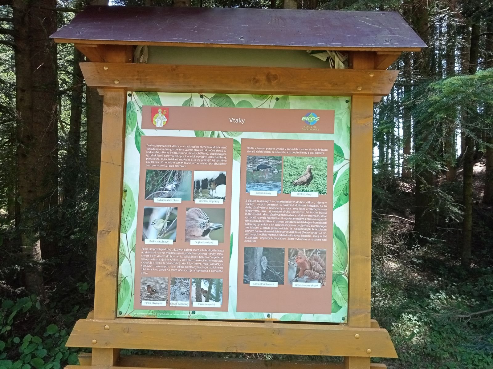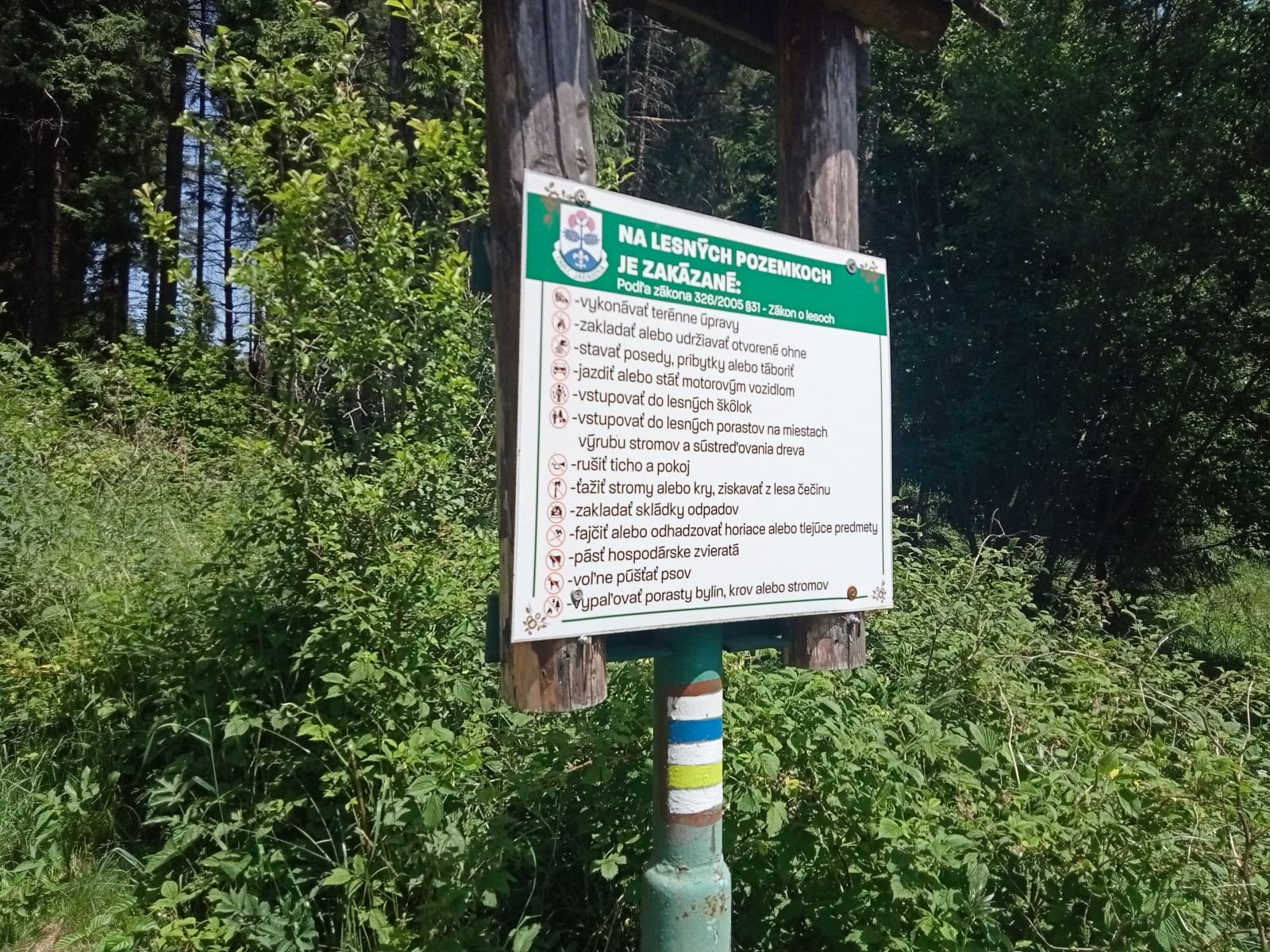 Tablica informacyjna, można się dowiedzieć kto jest gospodarzem tych lasów.