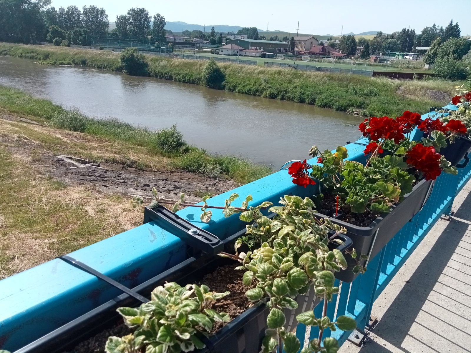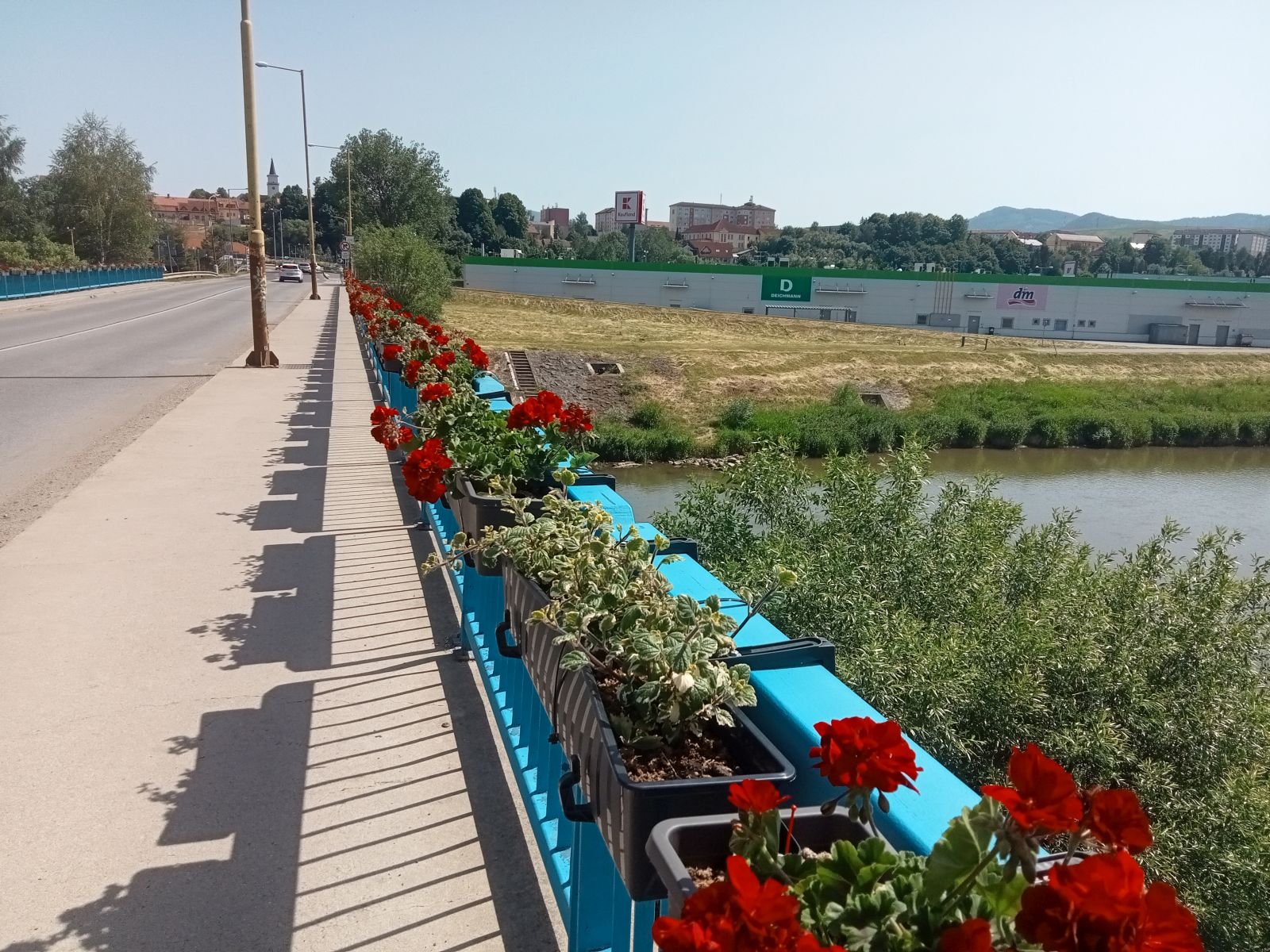 Przechodzę przez most nad Popradem, fajne kwiatki, chyba krakowiaki. Po prawej stronie otwarte w niedzielę placówki handlowe, bardzo dużo Polaków, co widać po rejestracjach.