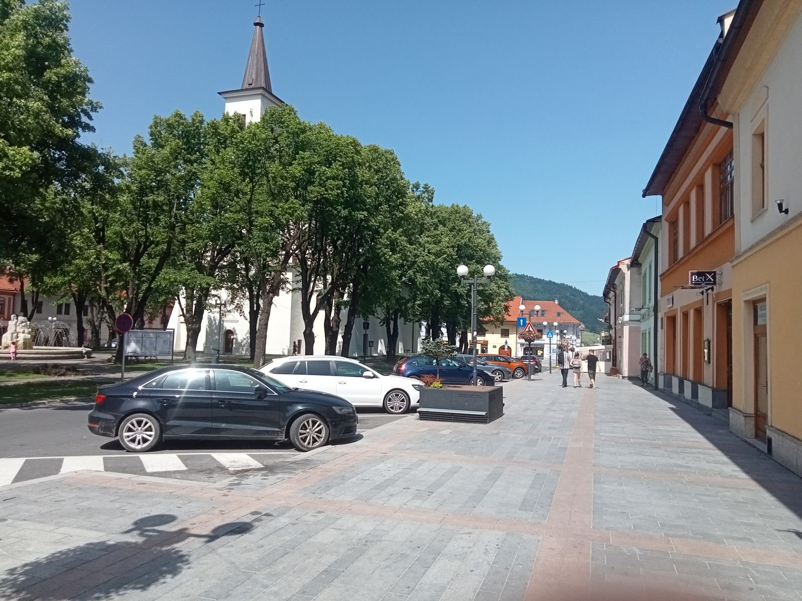 Polakom nie opłaca się robić zakupów na Słowacji przeliczając Euro na złotówki jest naprawdę drogo. Szukam gdzie można cosik na ząbek kupić, nie jest to tak jak u nas, że wszędzie kebaby itd. w pobliskim sklepie przy rynku pytam o studencką słynną czekoladę no i nie jest tak łatwo ją znaleźć. Pani tak zaczęła tłumaczyć gdzie ją dostać, że darowałem sobie ten temat kupując u niej i w Lidlu to co dostępne. Przy rynku udało się kupić kebaba, zdrowa żywność:) Jest w miarę pusto i spokojnie na rynku. W porównaniu ze Starym Sączem, gdzie w niedzielę nie ma gdzie stanąć autem tutaj jest naprawdę spokojnie.