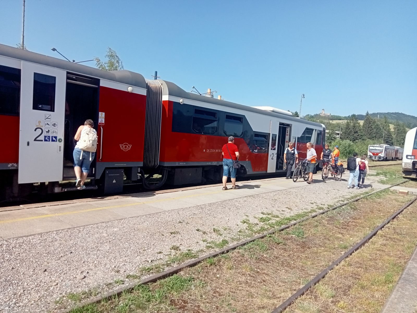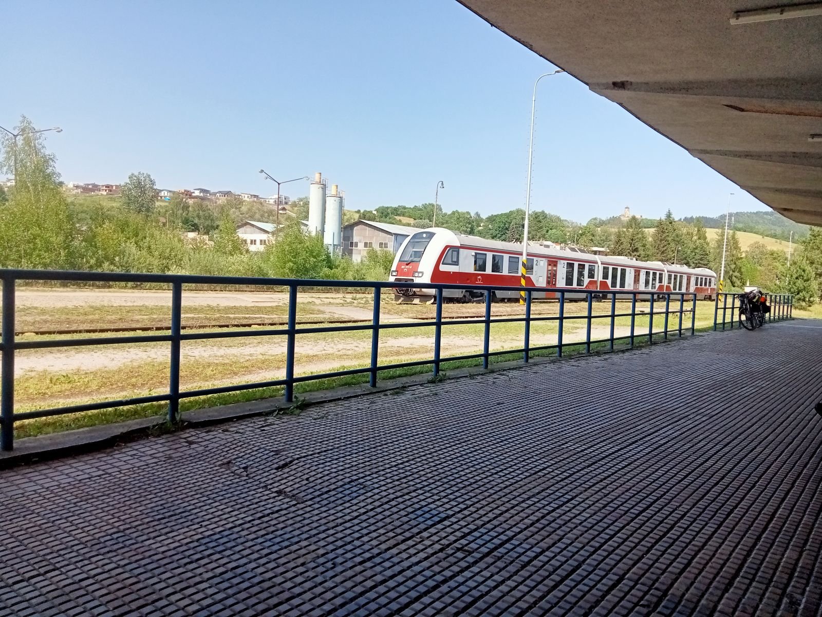 Stacja Kolejowa. Wygląda jak wygląda, czas zatrzymał się tu wiele lat temu.. bez trakcji elektrycznej nad torami, jest trochę osób z Polski. Przed stacją znajduję się dworzec autobusowy i co ciekawe widać, że nawet w niedzielę kursują autobusy do lokalnych miejscowości, czego u nas brakuję. Pociąg przyjeżdża przed czasem, koszt biletu do Muszyny to 3 euro, nie można płacić w polskiej walucie. Czas podróży około 15 kilometrowego odcinka to około 35 minut. W Muszynie jestem tuż po 17:00 do 20 minut pojawia się pociąg z Krynicy w kierunku Starego Sącza. Ten także już z niewielką liczbą wolnych miejsc siedzących. Droga do Starego Sącza zajmuję około godzinki koszt biletu coś około 7 złotych co przy cenie paliwa naprawdę się opłaca a dystans to ponad 40 kilometrów.