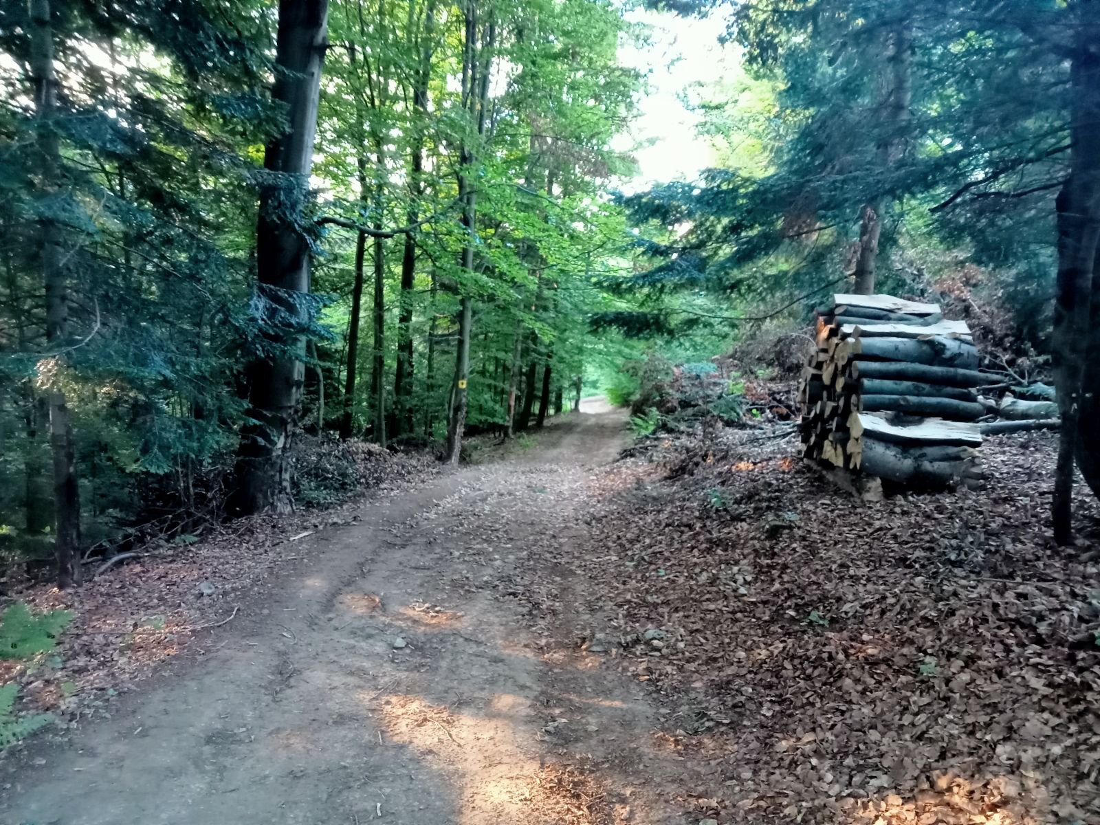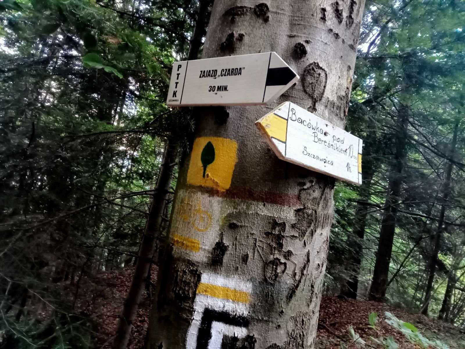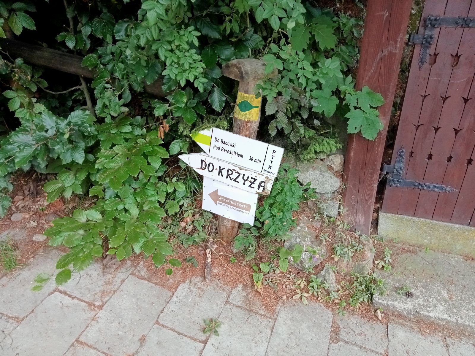 Przechodzę przez szczyt Dzwonkówka i kieruję się ku Szczawnicy żółtym szlakiem. Na zdjęciu nierzadki widok - zapasy na zimę. Rzuca się w oczy kompletny brak grzybów w lesie, nawet tych trujących. Zejście do Szczawnicy jest bardzo przyjemne, widoków spektakularnych tu nie ma.