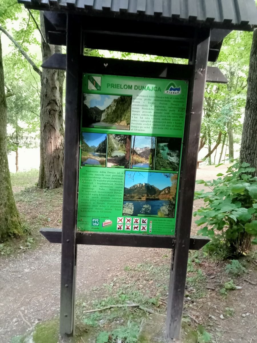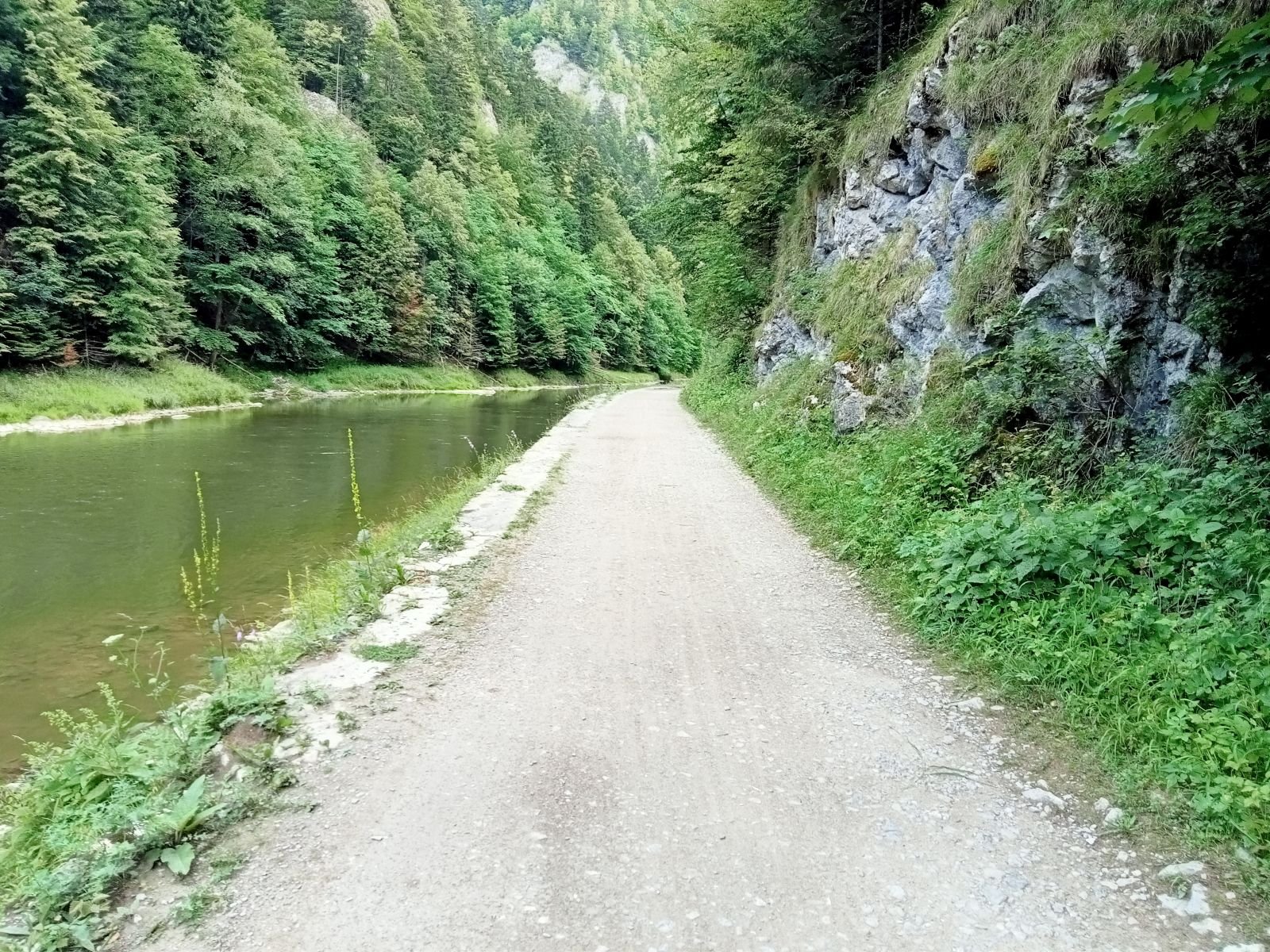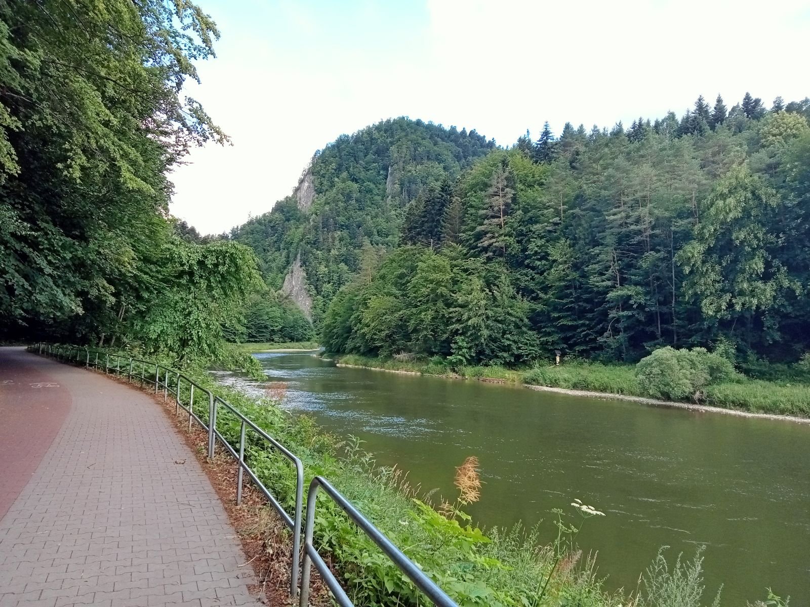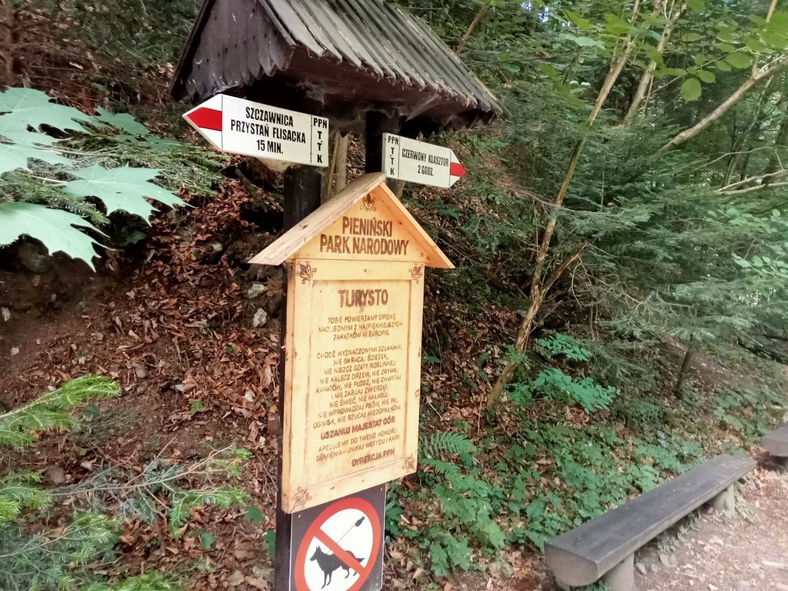 Droga Pienińska to temat rzeka można o jej urokach pisać i pisać...Wiedzie ona ze Szczawnicy do Czerwonego Klasztoru. Rozpoczyna się obok Dunajca, przy Przystani Wodnej, gdzie zatrzymują się tratwy. Po drodze spokojnie znajdziemy nie jeden punkt gastronomiczny. Przy drodze znajdują się liczne tablicę informacyjne - można się zaczytać ;) Odległość 9,7 km, suma podejść 460 m, suma zejść 440 m, czas przejścia według tablic informacyjnych to około 3 godzin w jedną stronę. Tutaj już spotykamy rowerzystów i wędrujących i naprawdę w szczycie dnia musi tu być niemałe zamieszanie. O tej porannej godzinie można spokojnie podziwiać uroki tej trasy.