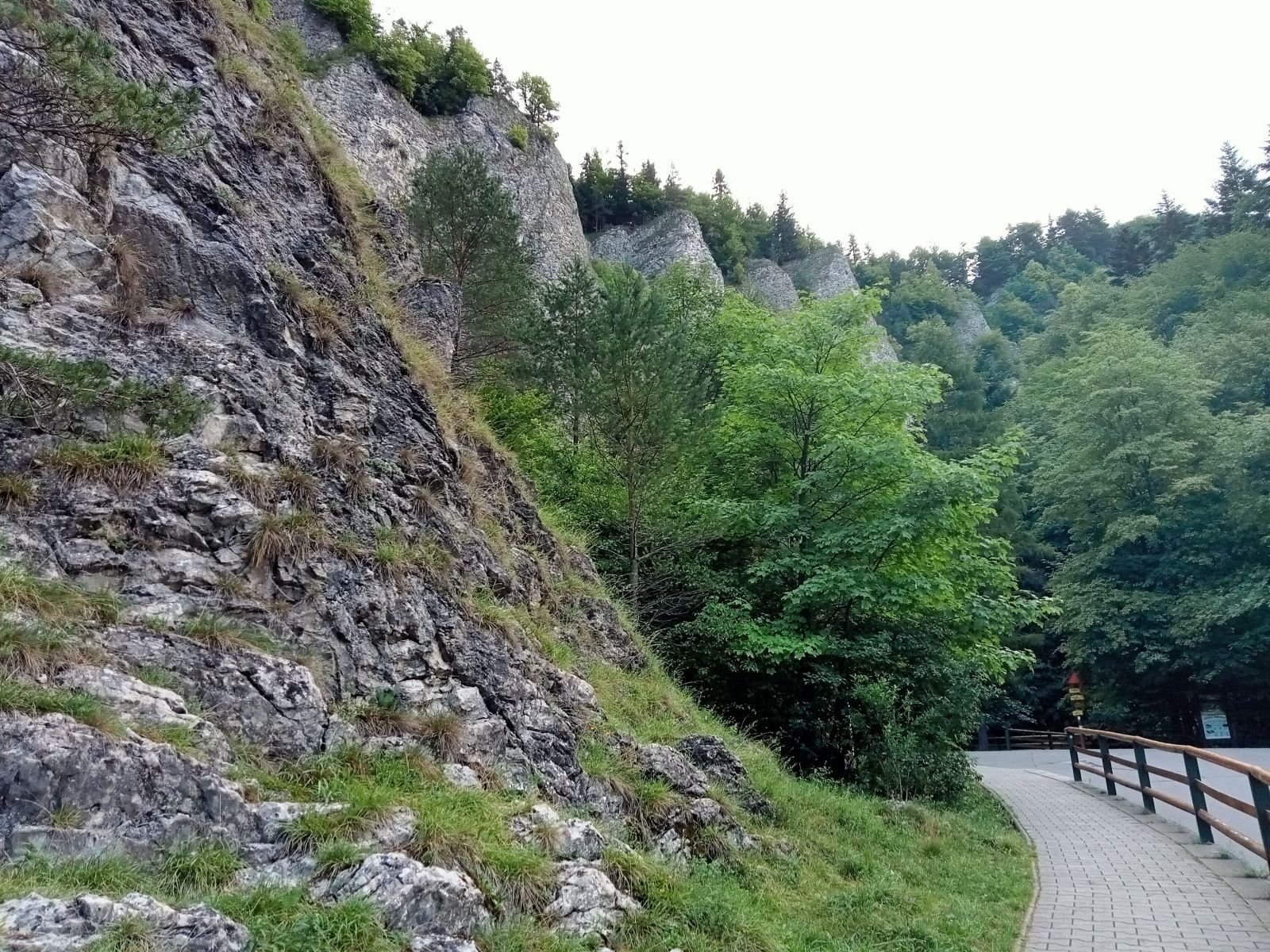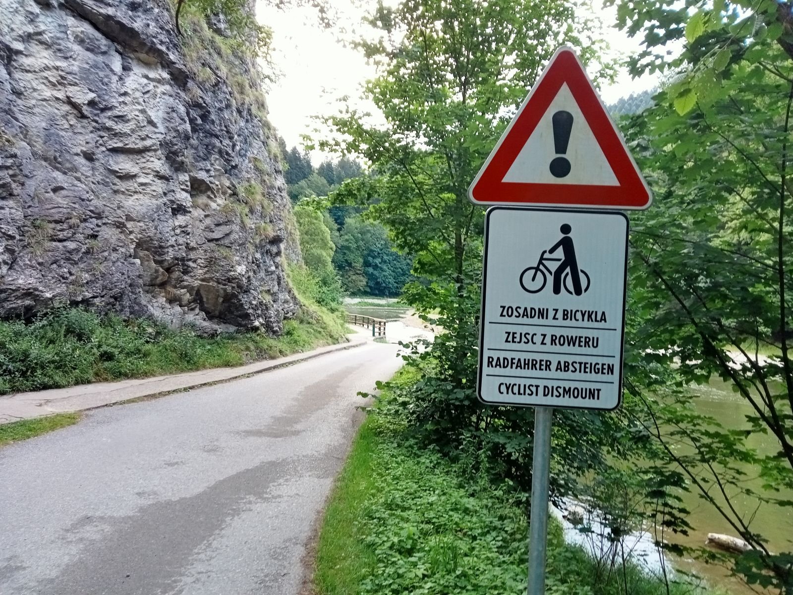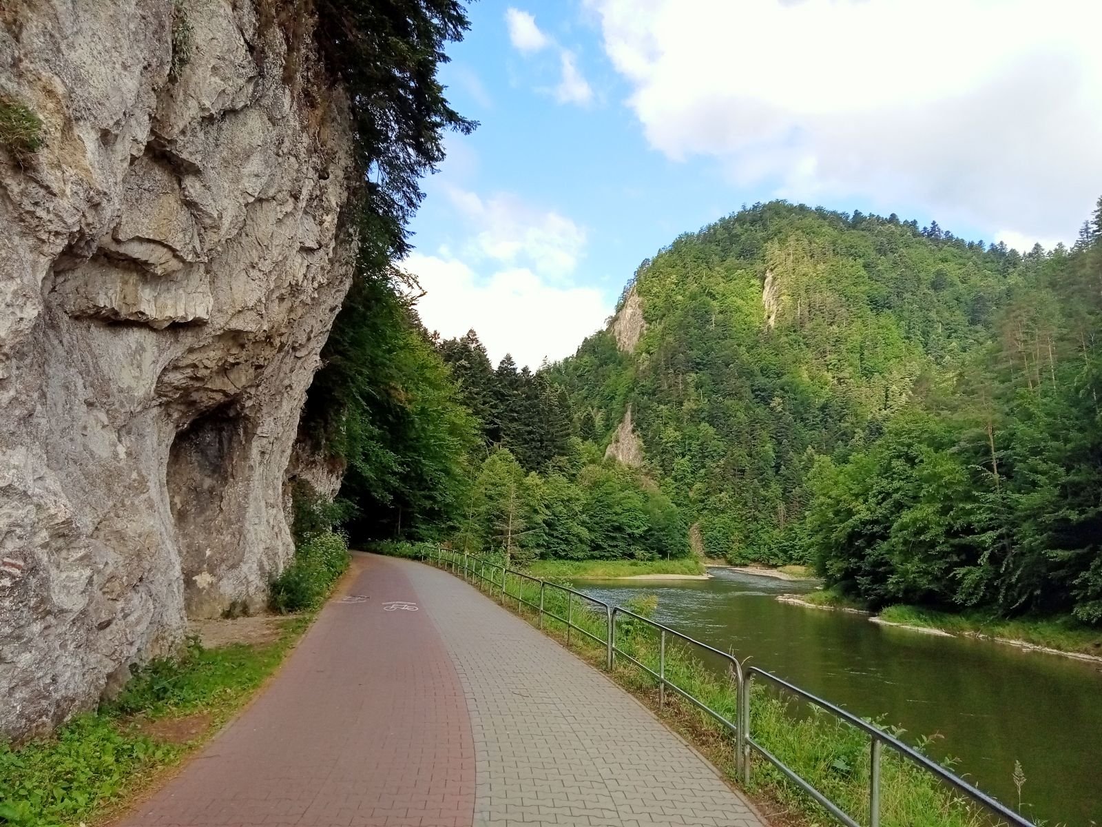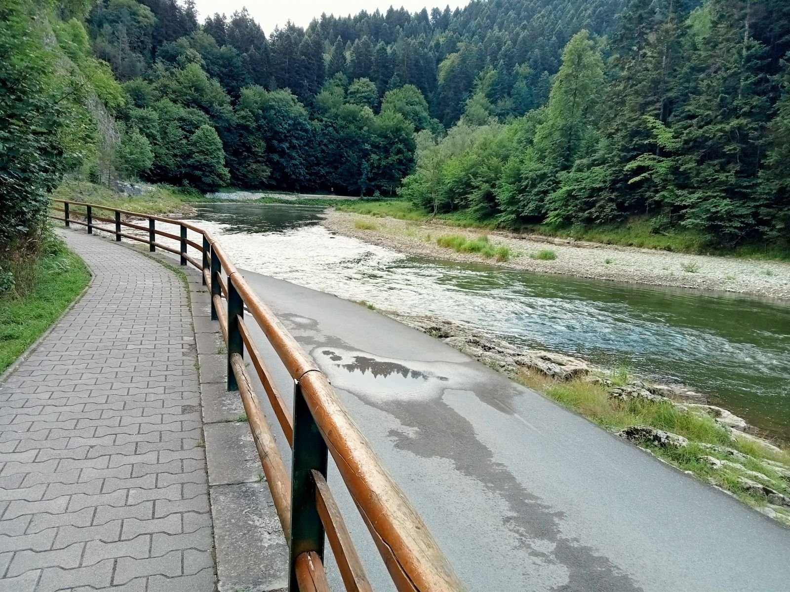 Droga Pienińska to temat rzeka można o jej urokach pisać i pisać...Wiedzie ona ze Szczawnicy do Czerwonego Klasztoru. Rozpoczyna się obok Dunajca, przy Przystani Wodnej, gdzie zatrzymują się tratwy. Po drodze spokojnie znajdziemy nie jeden punkt gastronomiczny. Przy drodze znajdują się liczne tablicę informacyjne - można się zaczytać ;) Odległość 9,7 km, suma podejść 460 m, suma zejść 440 m, czas przejścia według tablic informacyjnych to około 3 godzin w jedną stronę. Tutaj już spotykamy rowerzystów i wędrujących i naprawdę w szczycie dnia musi tu być niemałe zamieszanie. O tej porannej godzinie można spokojnie podziwiać uroki tej trasy.