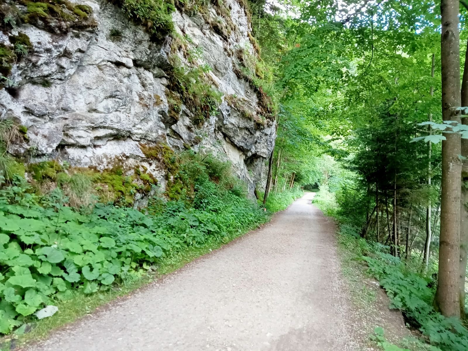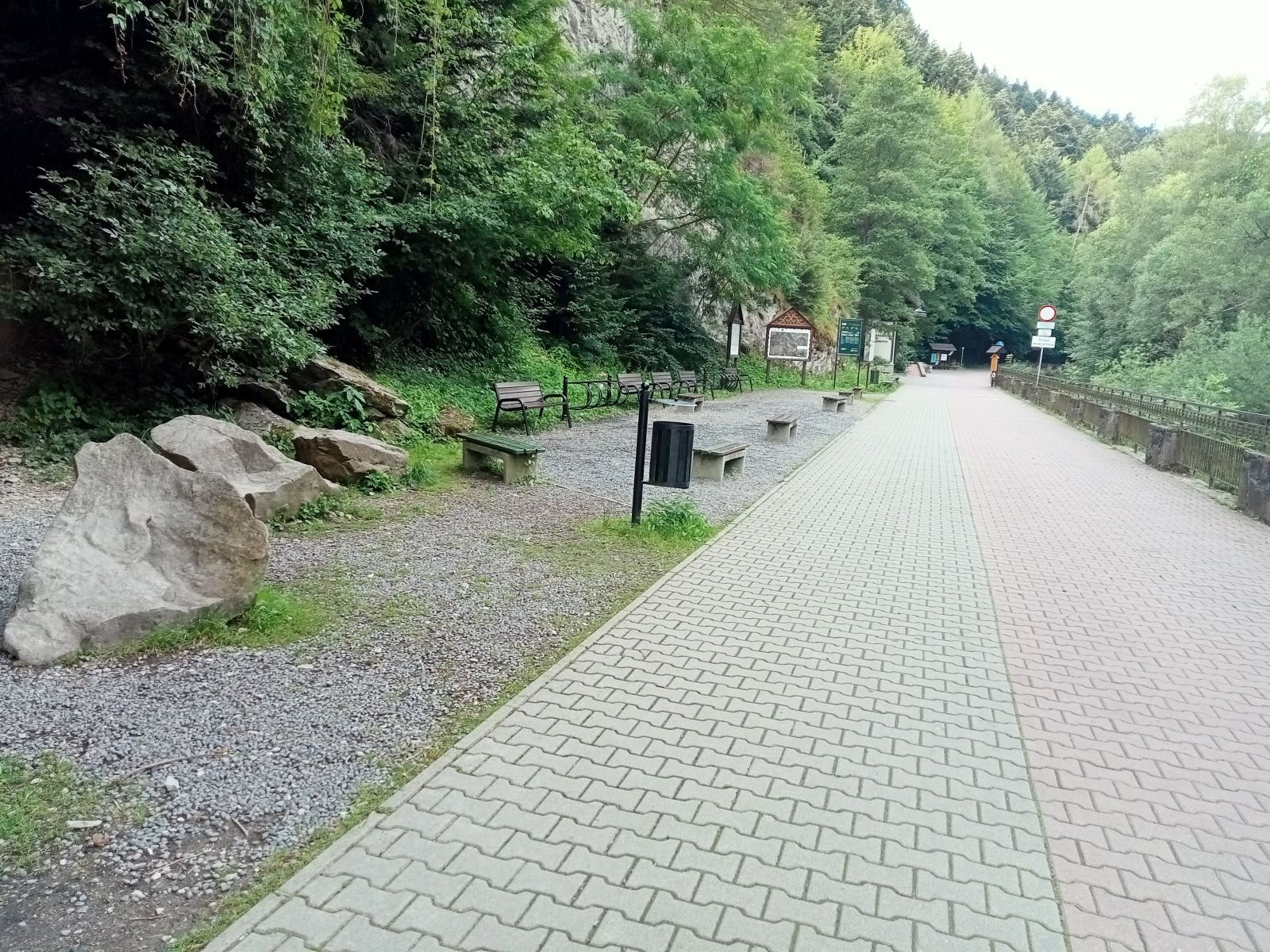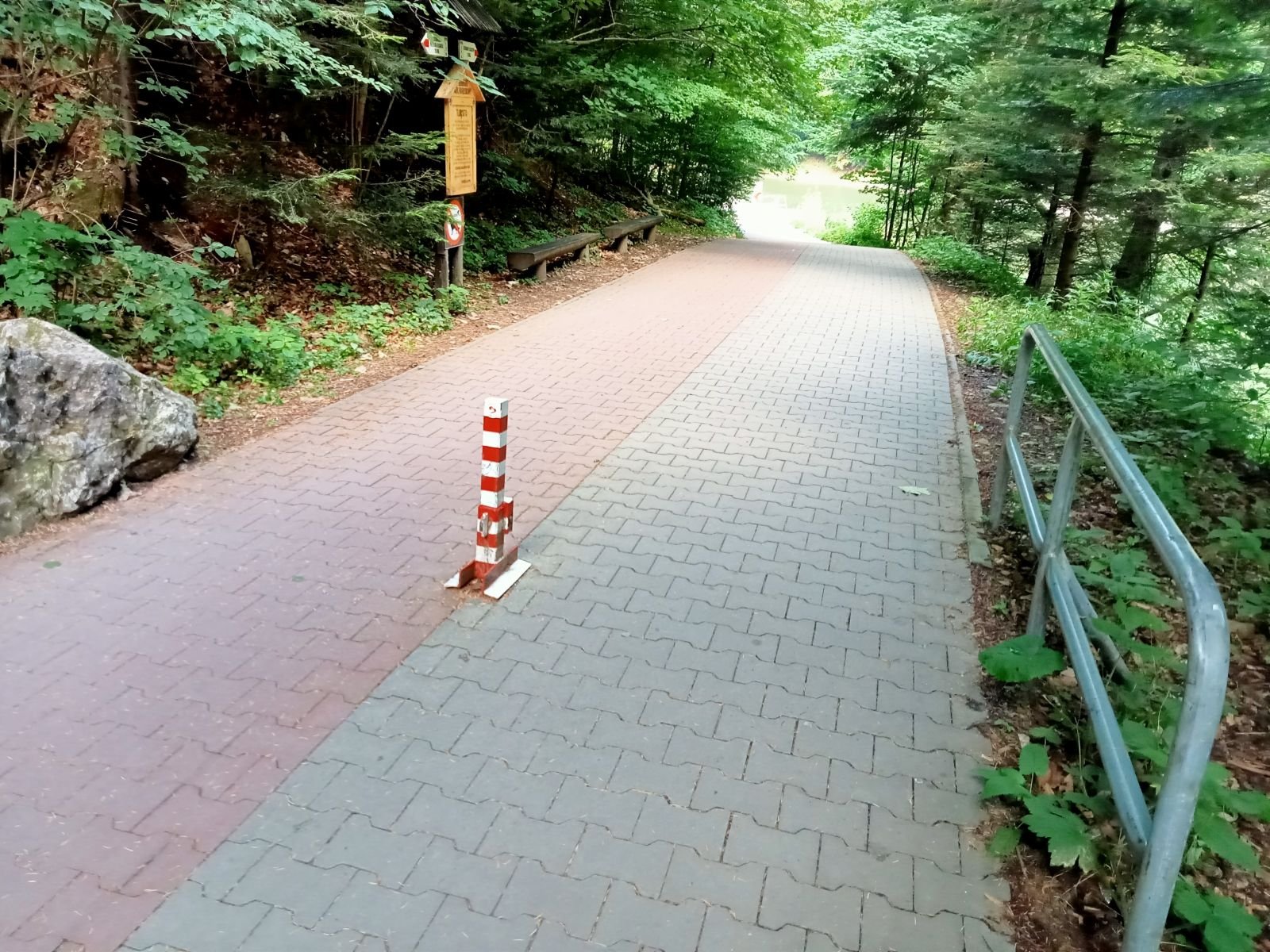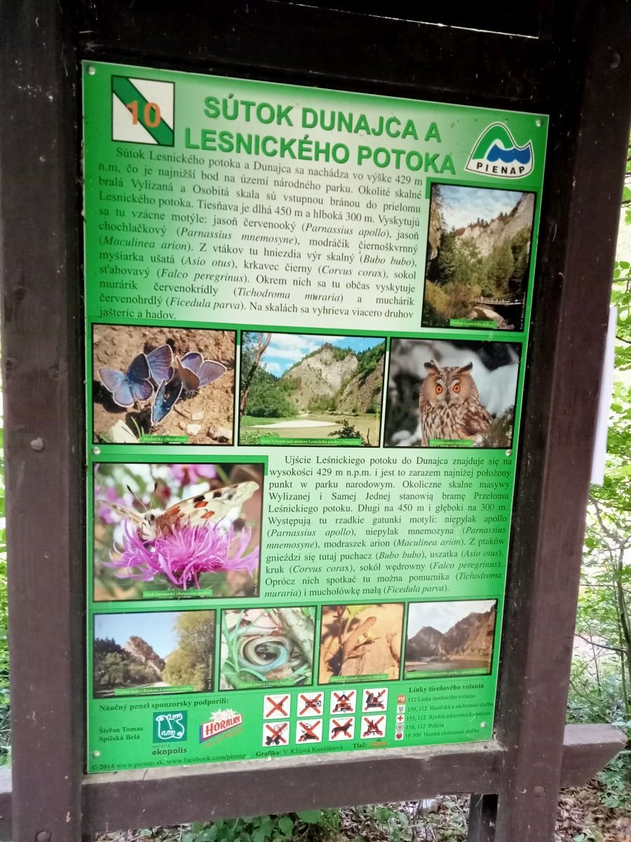 Droga Pienińska to temat rzeka można o jej urokach pisać i pisać...Wiedzie ona ze Szczawnicy do Czerwonego Klasztoru. Rozpoczyna się obok Dunajca, przy Przystani Wodnej, gdzie zatrzymują się tratwy. Po drodze spokojnie znajdziemy nie jeden punkt gastronomiczny. Przy drodze znajdują się liczne tablicę informacyjne - można się zaczytać ;) Odległość 9,7 km, suma podejść 460 m, suma zejść 440 m, czas przejścia według tablic informacyjnych to około 3 godzin w jedną stronę. Tutaj już spotykamy rowerzystów i wędrujących i naprawdę w szczycie dnia musi tu być niemałe zamieszanie. O tej porannej godzinie można spokojnie podziwiać uroki tej trasy.