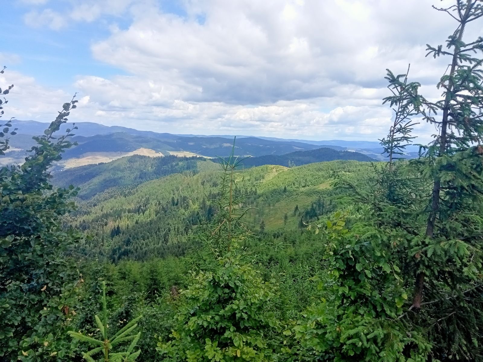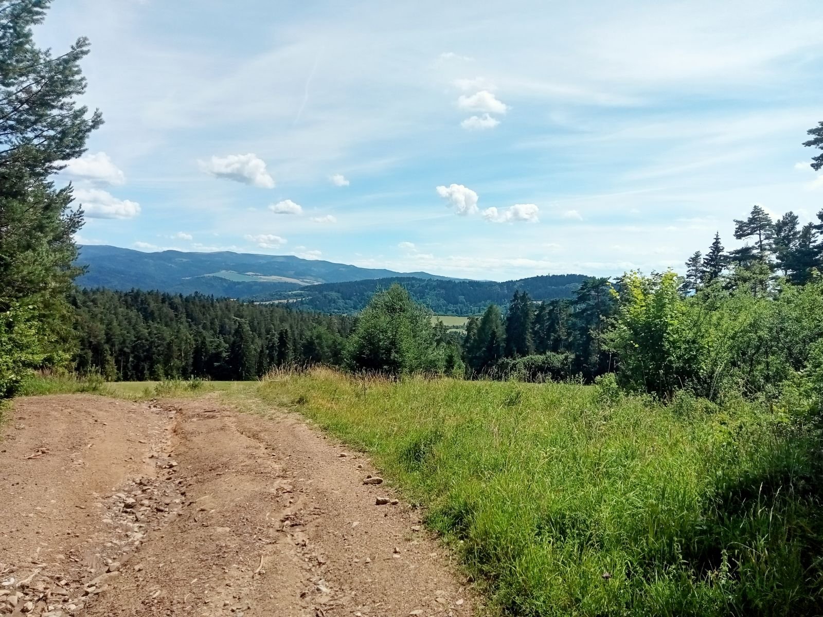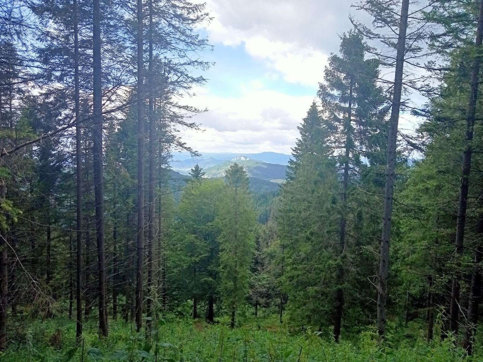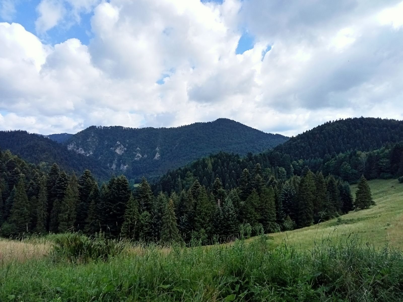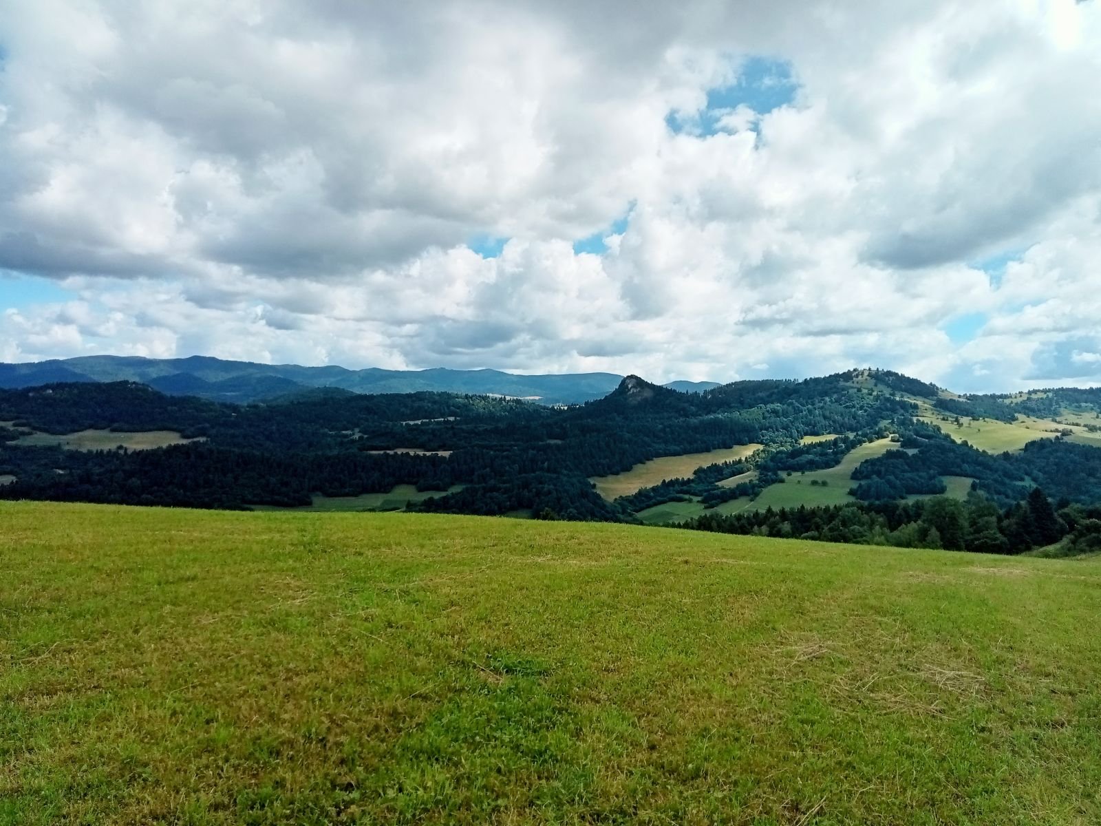 Przełęcz pod Klasztorną Górą z widokiem na Pieniny - Trzy Korony. Bardzo fajne miejsce widokowe.